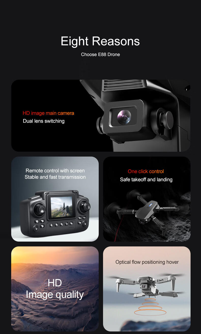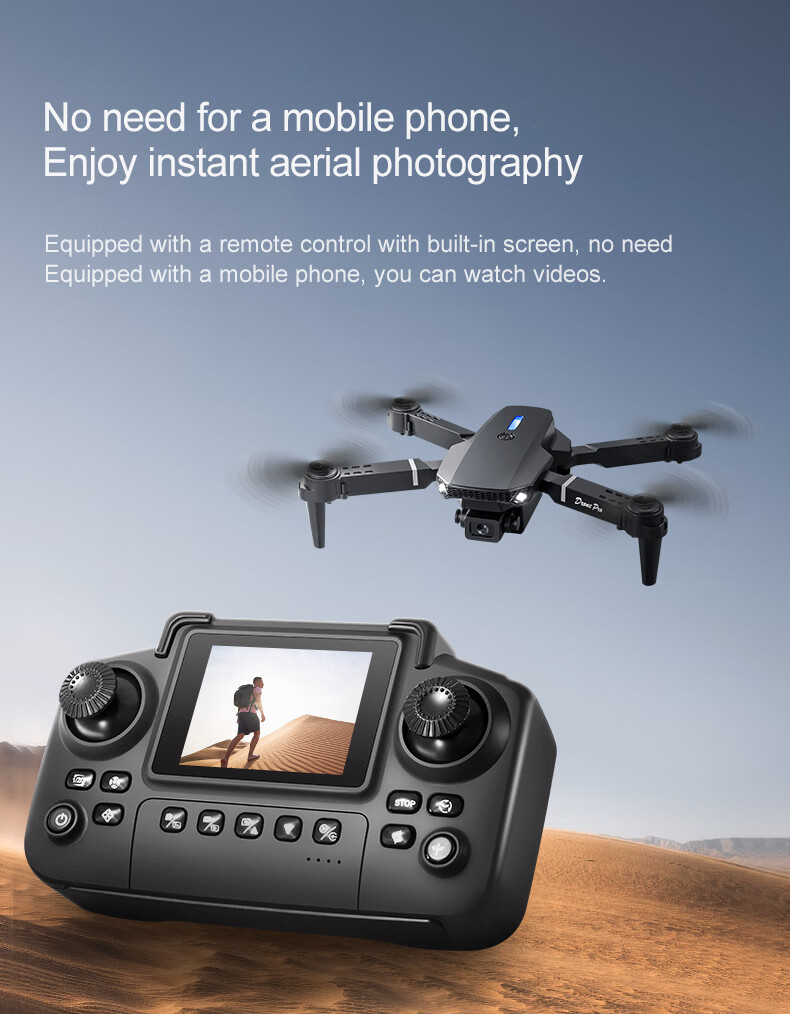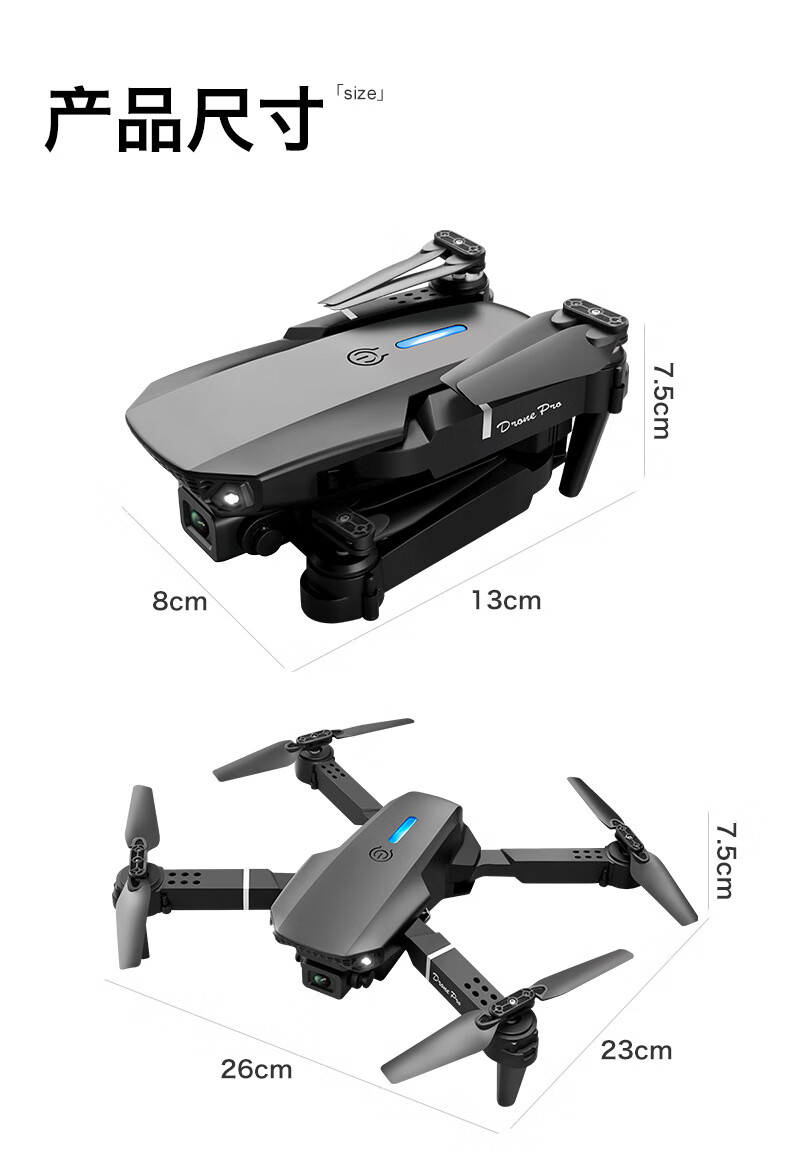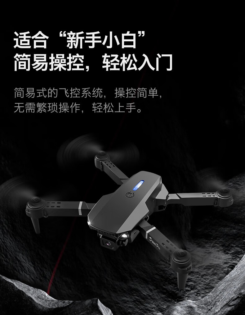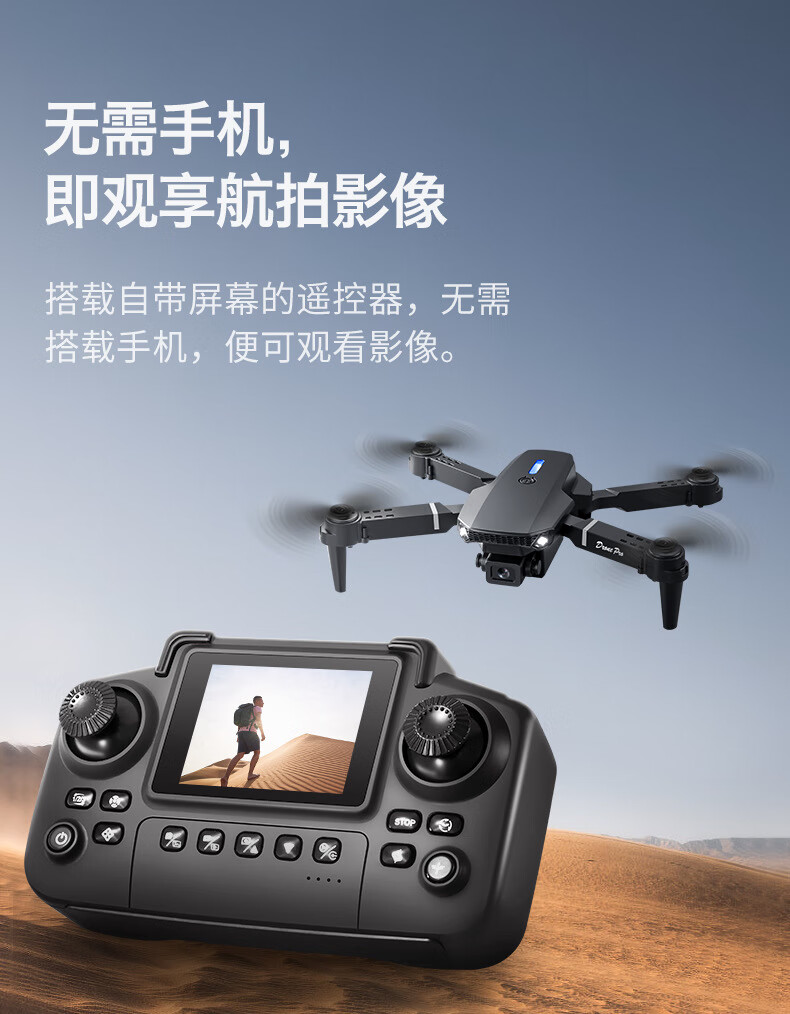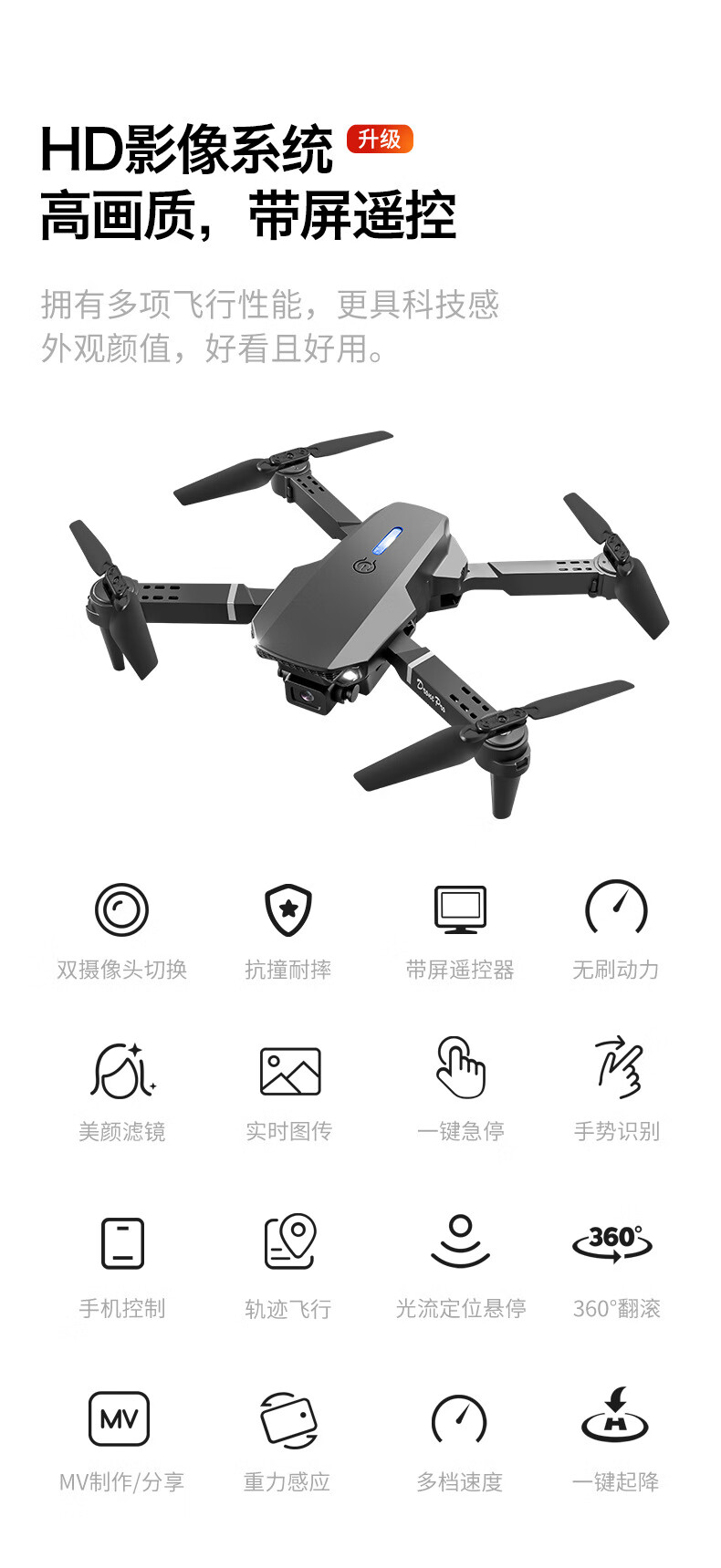 遥控飞机自带屏幕航拍四轴飞行器儿童玩具新款drone新款无人机 e88黑色/6键普通遥控/双摄像头 一电池(收纳包
