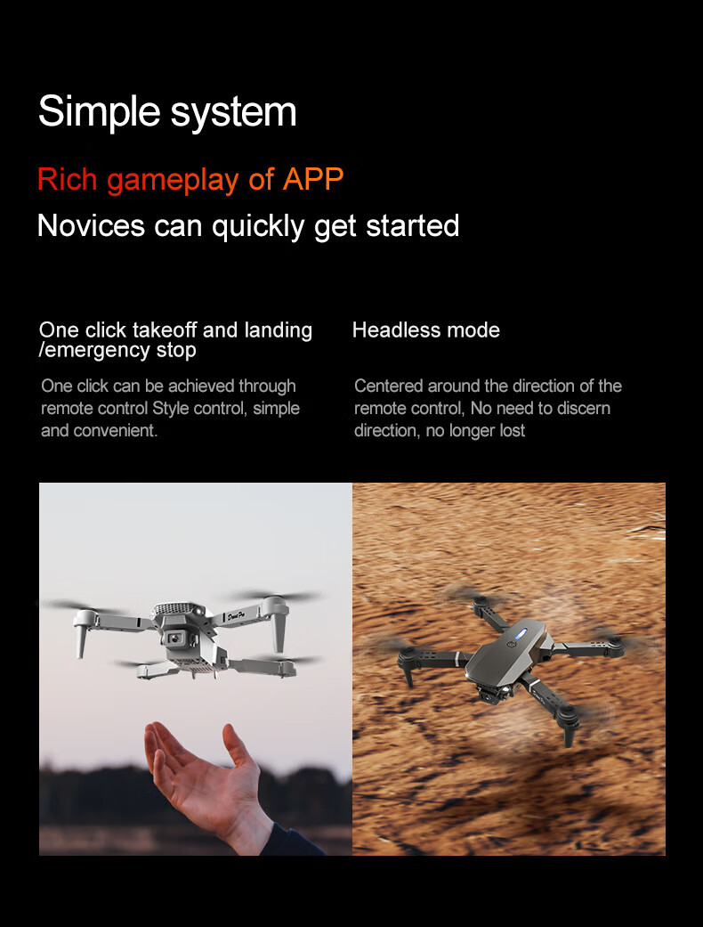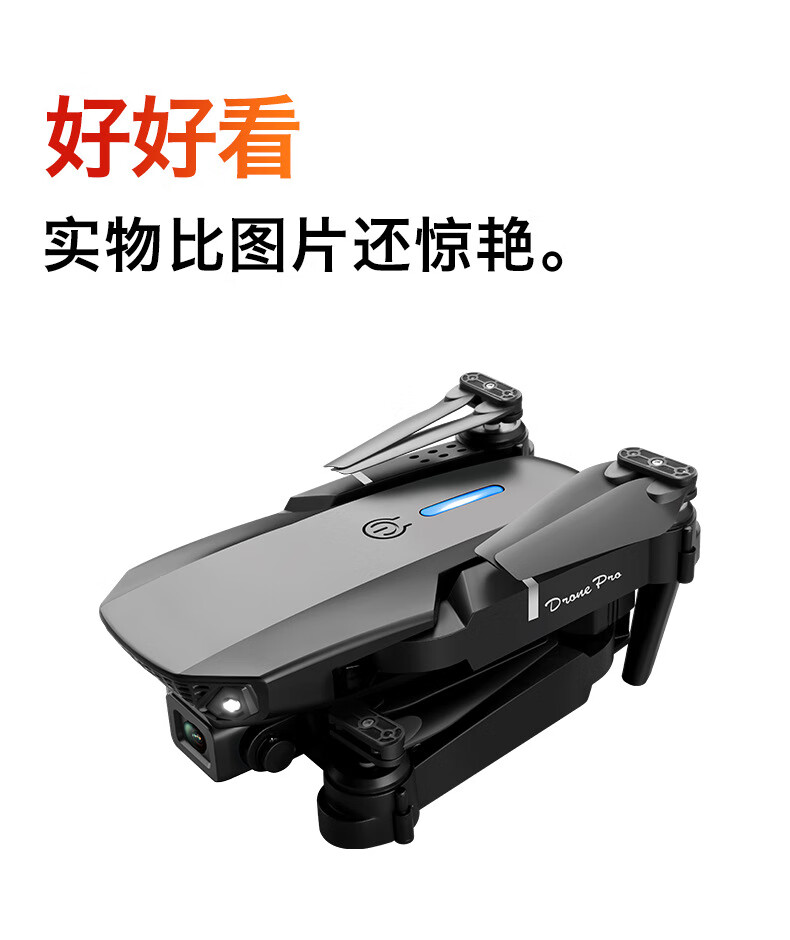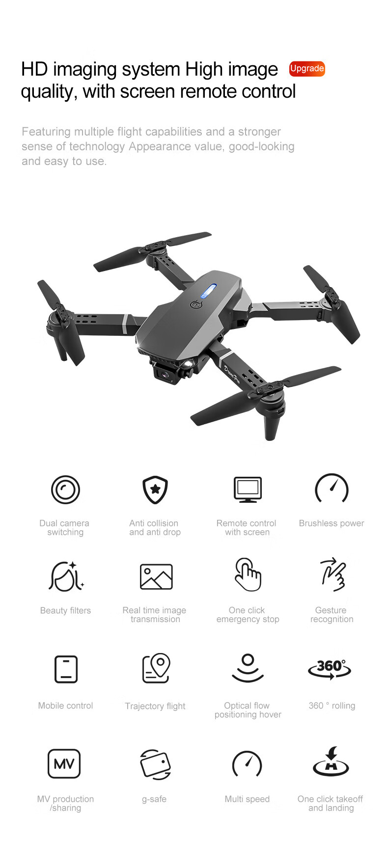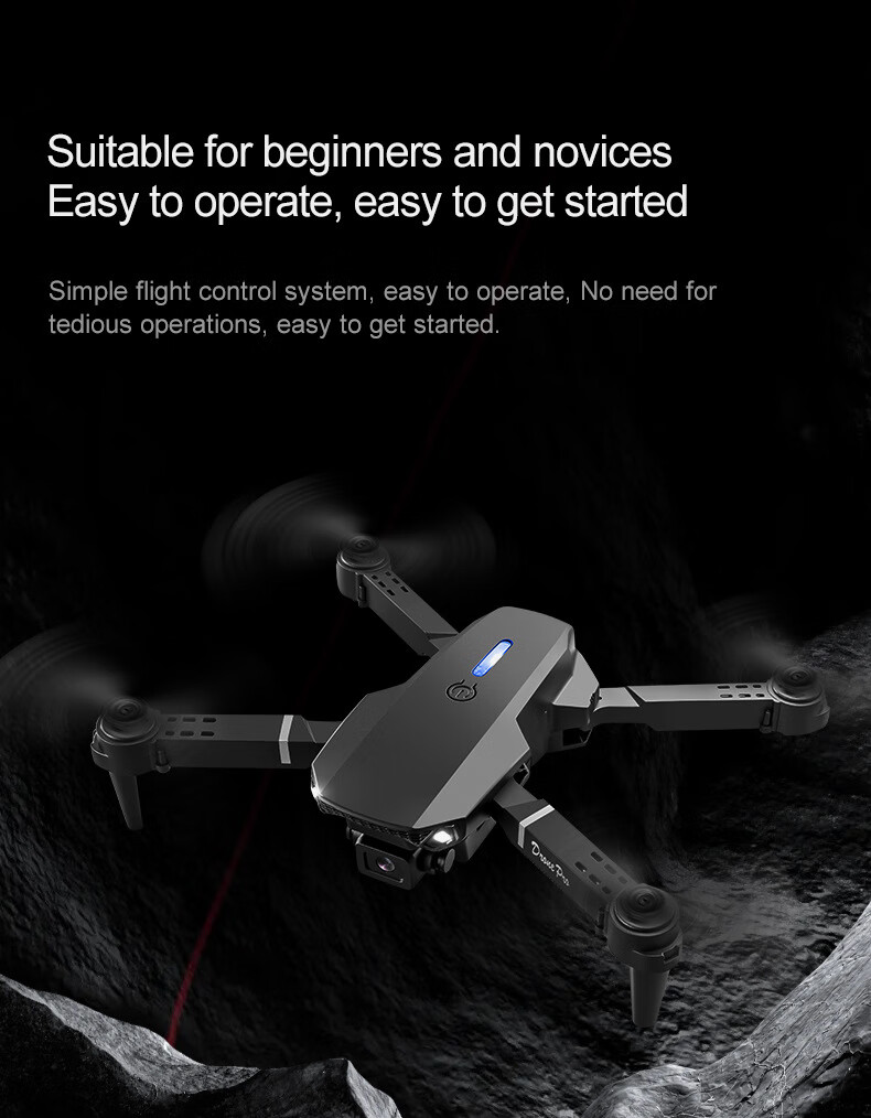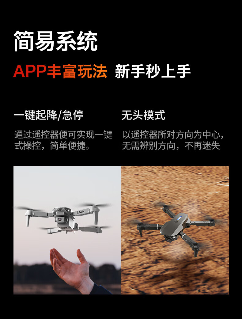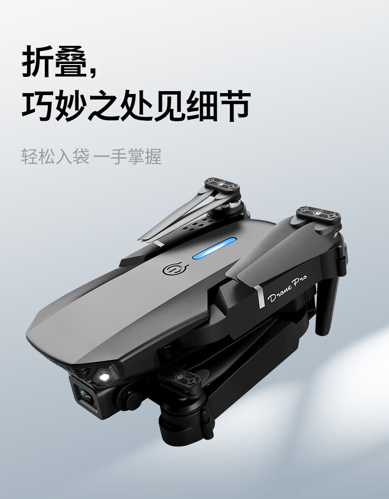 遥控飞机自带屏幕航拍四轴飞行器儿童玩具新款drone新款无人机 e88黑色/6键普通遥控/双摄像头 一电池(收纳包