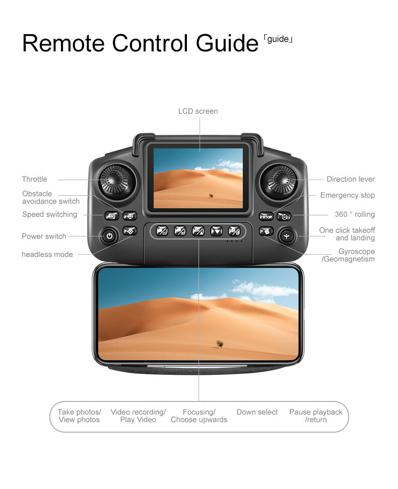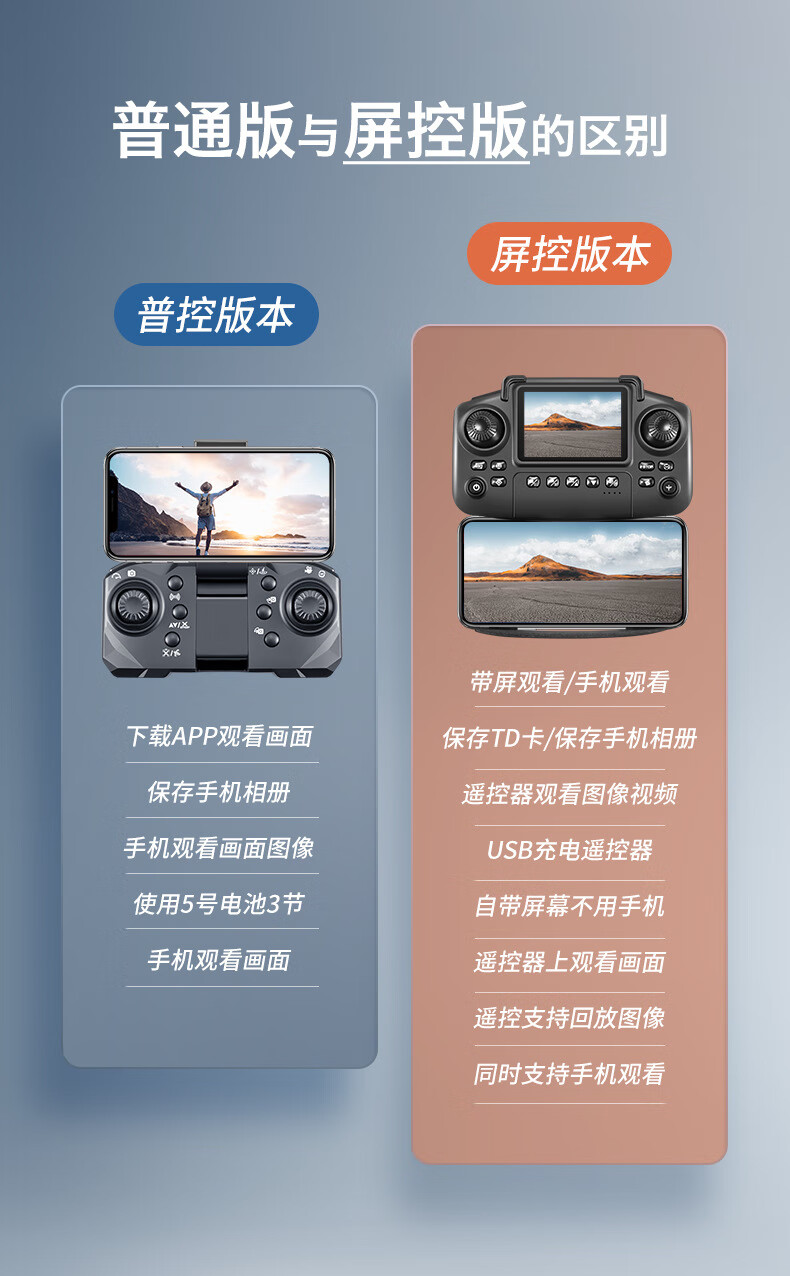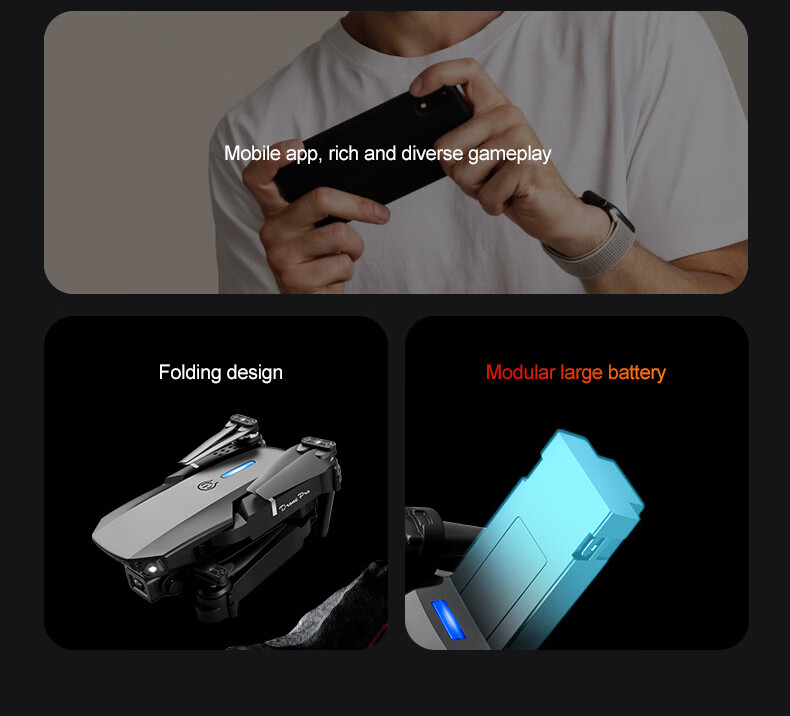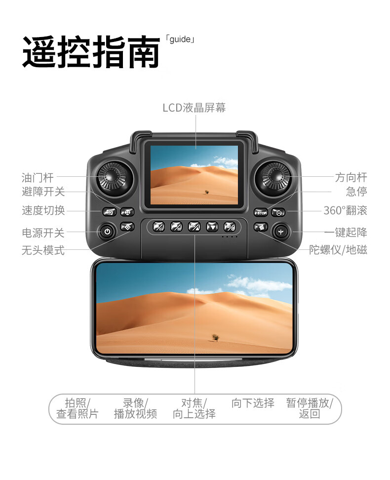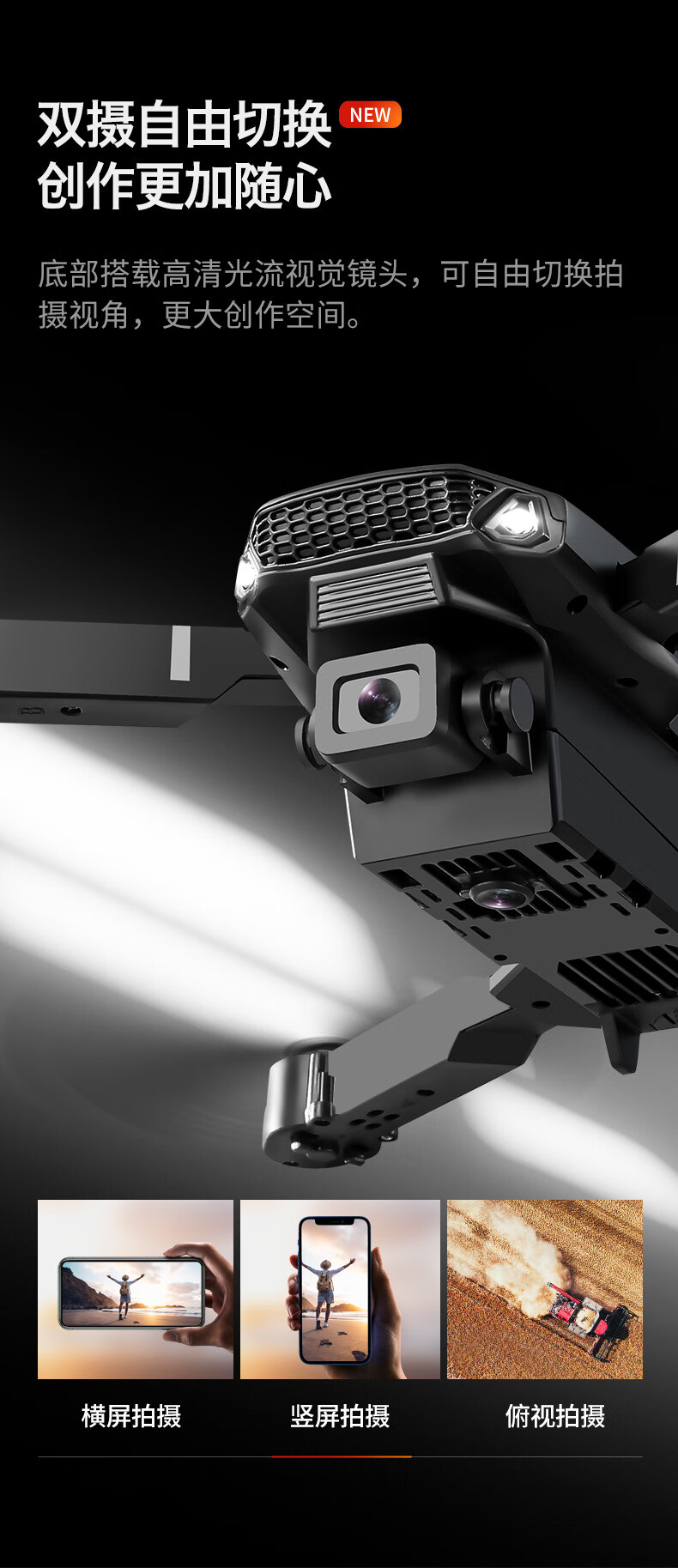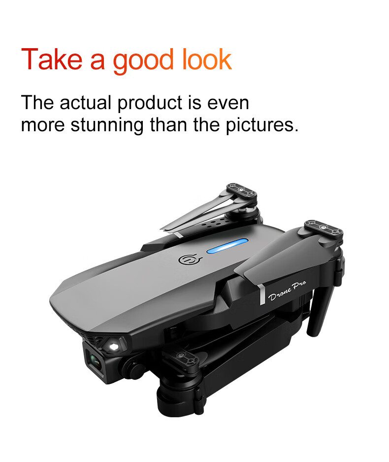 遥控飞机自带屏幕航拍四轴飞行器儿童玩具新款drone新款无人机 e88黑色/6键普通遥控/双摄像头 一电池(收纳包