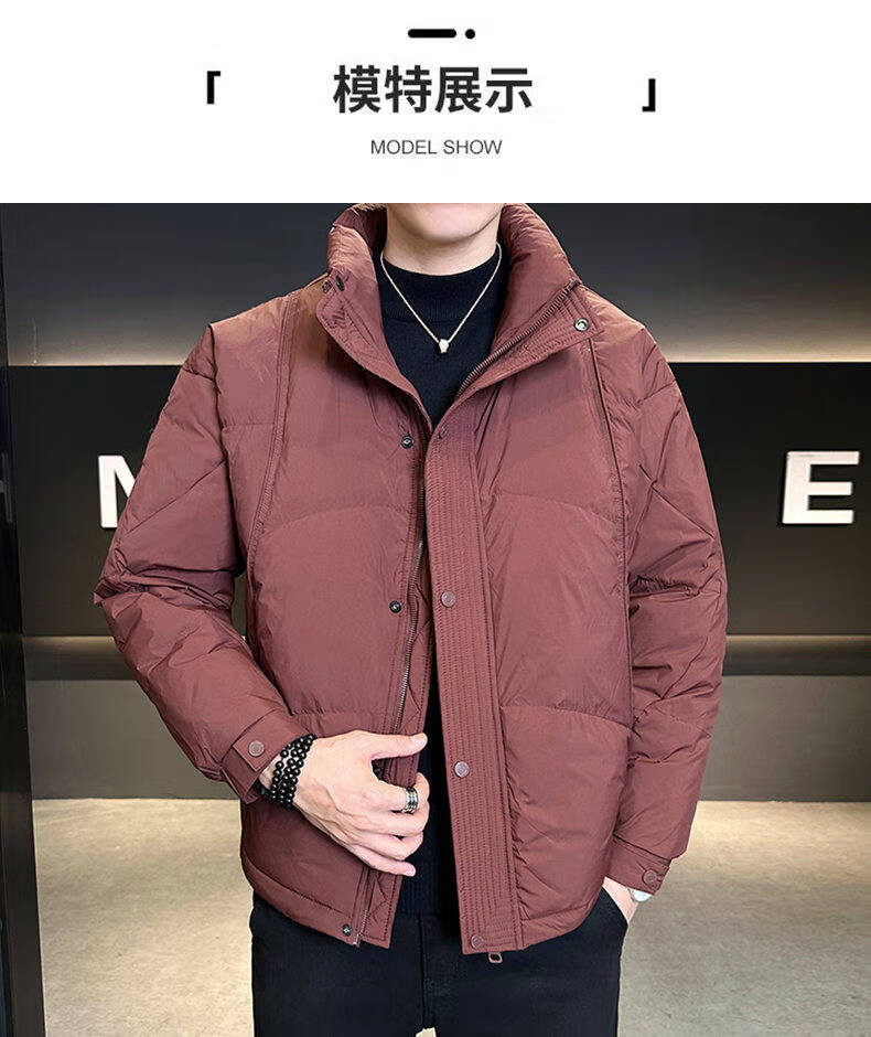 Hengyuanxiang Пуховик мужской зимний 2026 Новая утолщенная куртка с капюшоном Premium Sense Очень холодная короткая куртка большого размера с высоким наполнением Бордовый 4XL