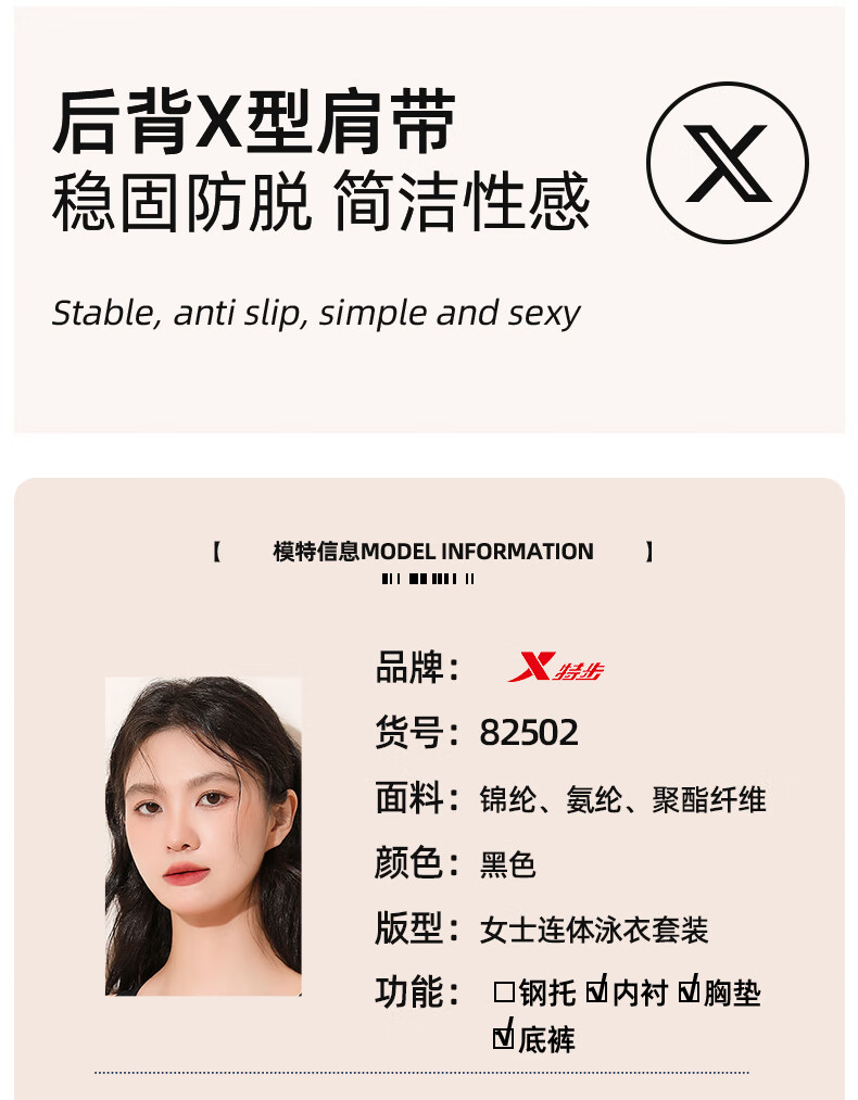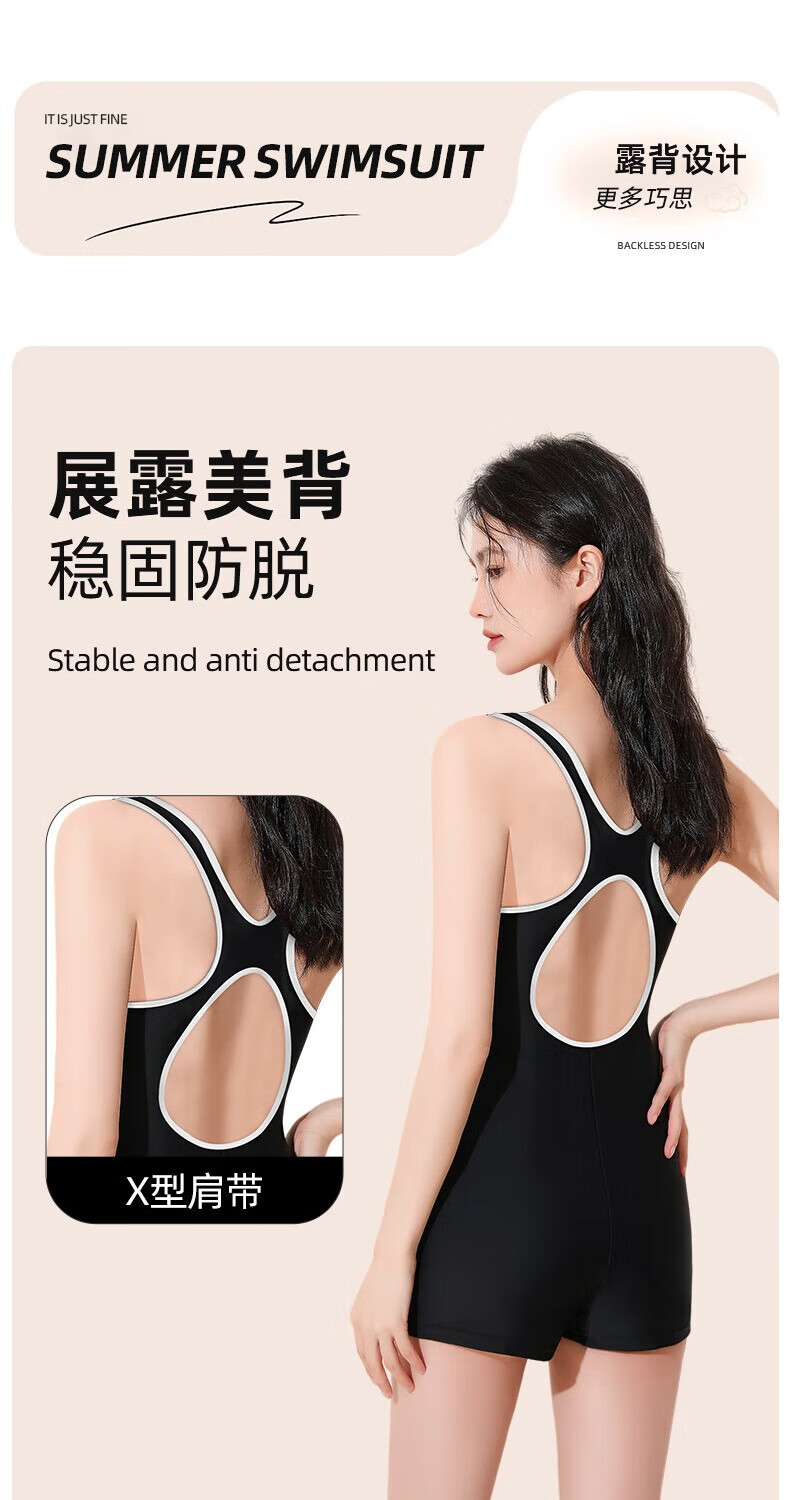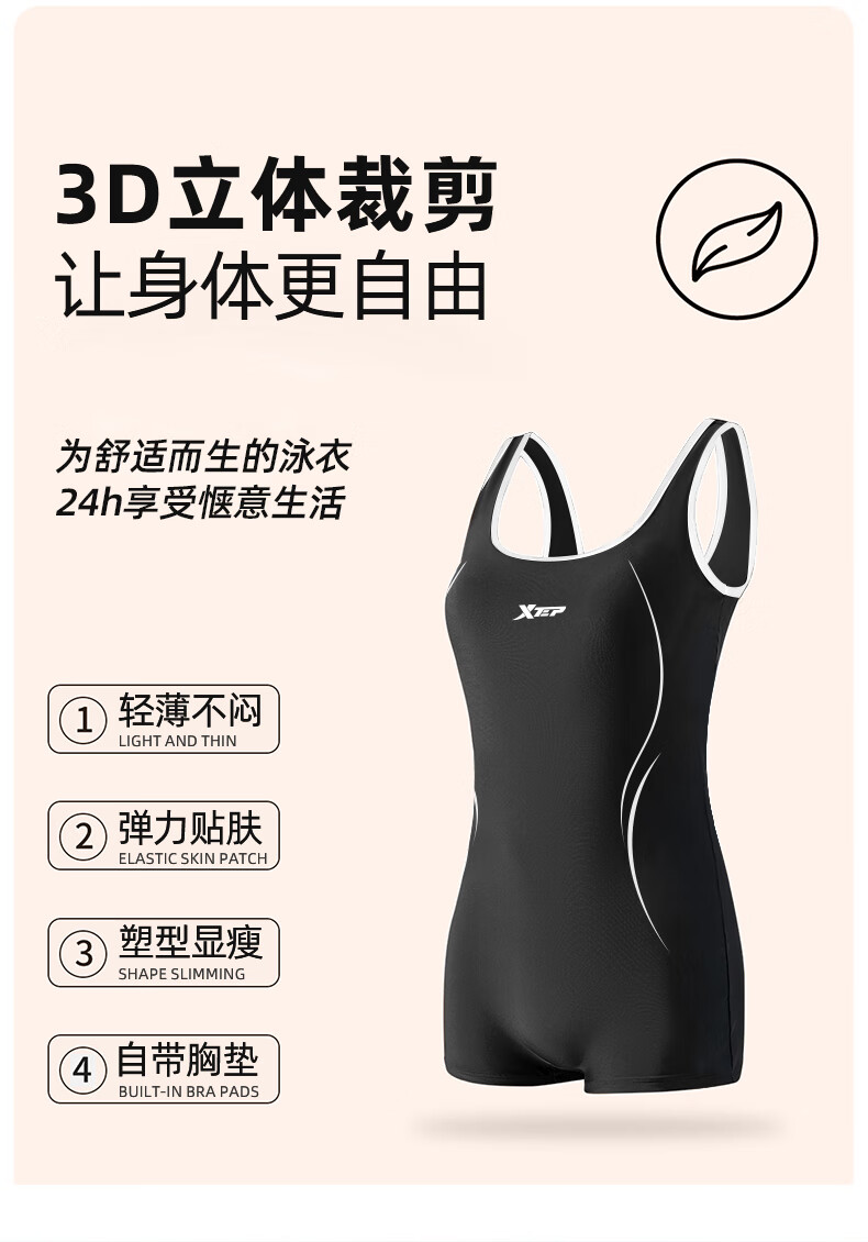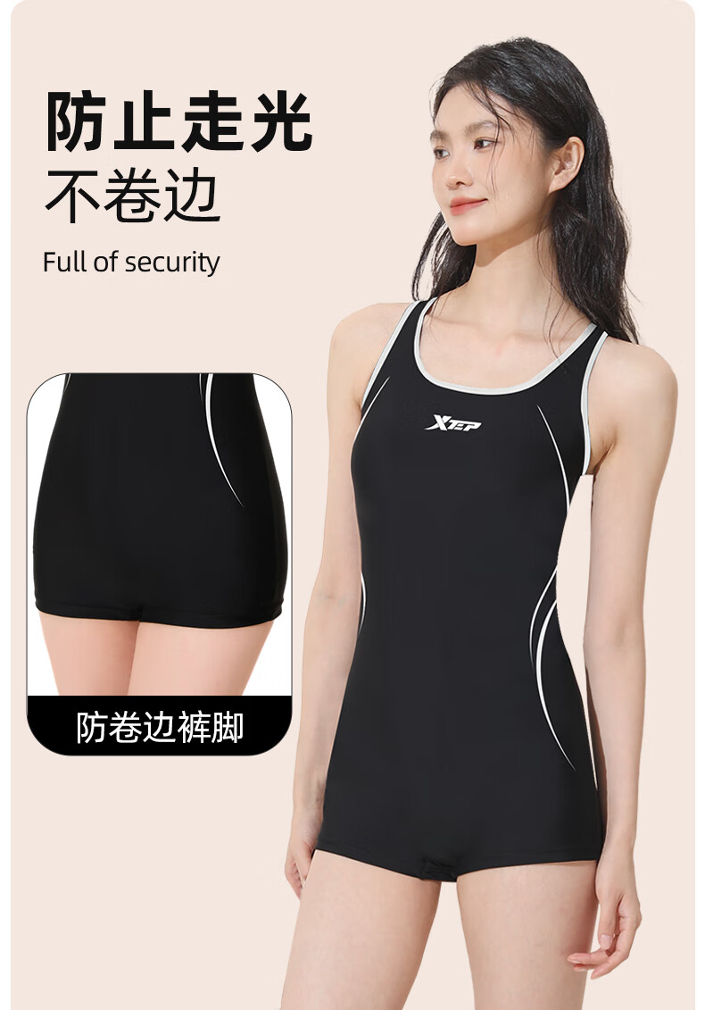 Xtep Swimsuit Women's 2025 New Swimming Pool Special One-piece Boxer Racing Swimsuit Conservative Large Size Hot Spring Swimsuit One-piece Boxer + Smoke Green Black Swimming Goggles M Build Height 155-160cm/Weight 40-49kg