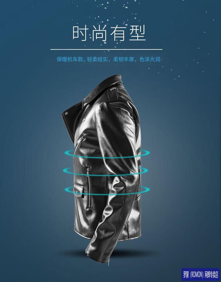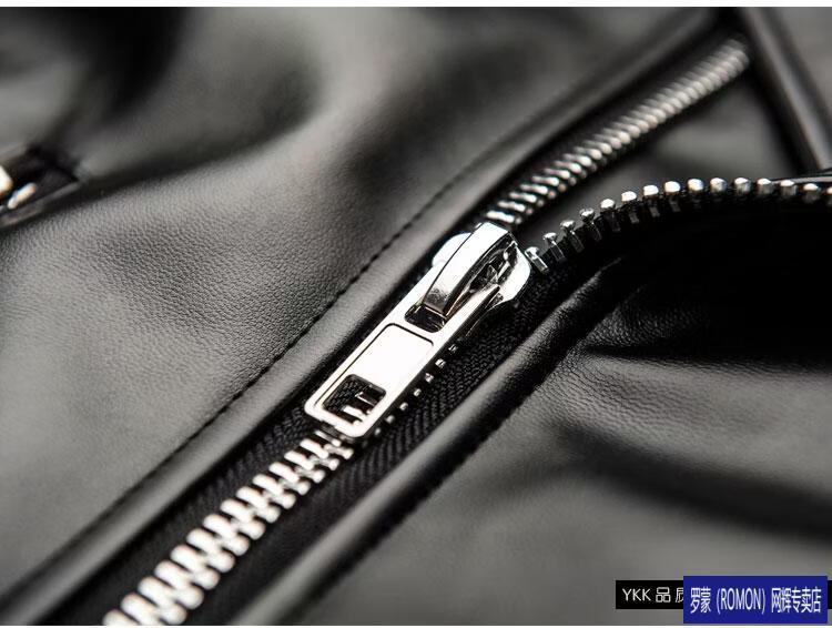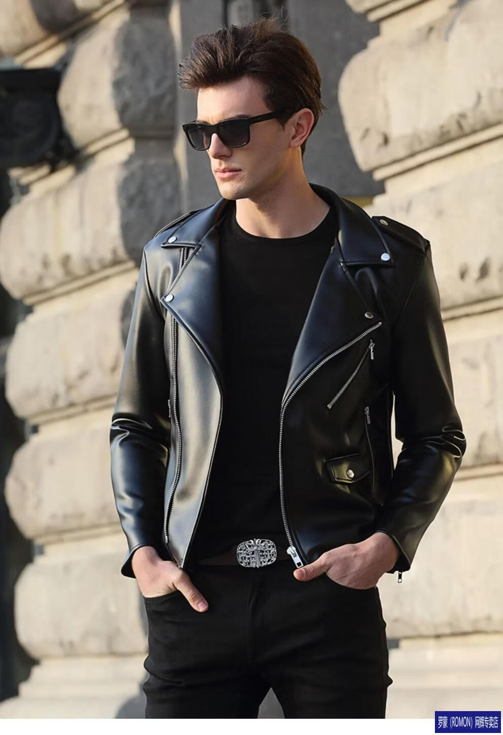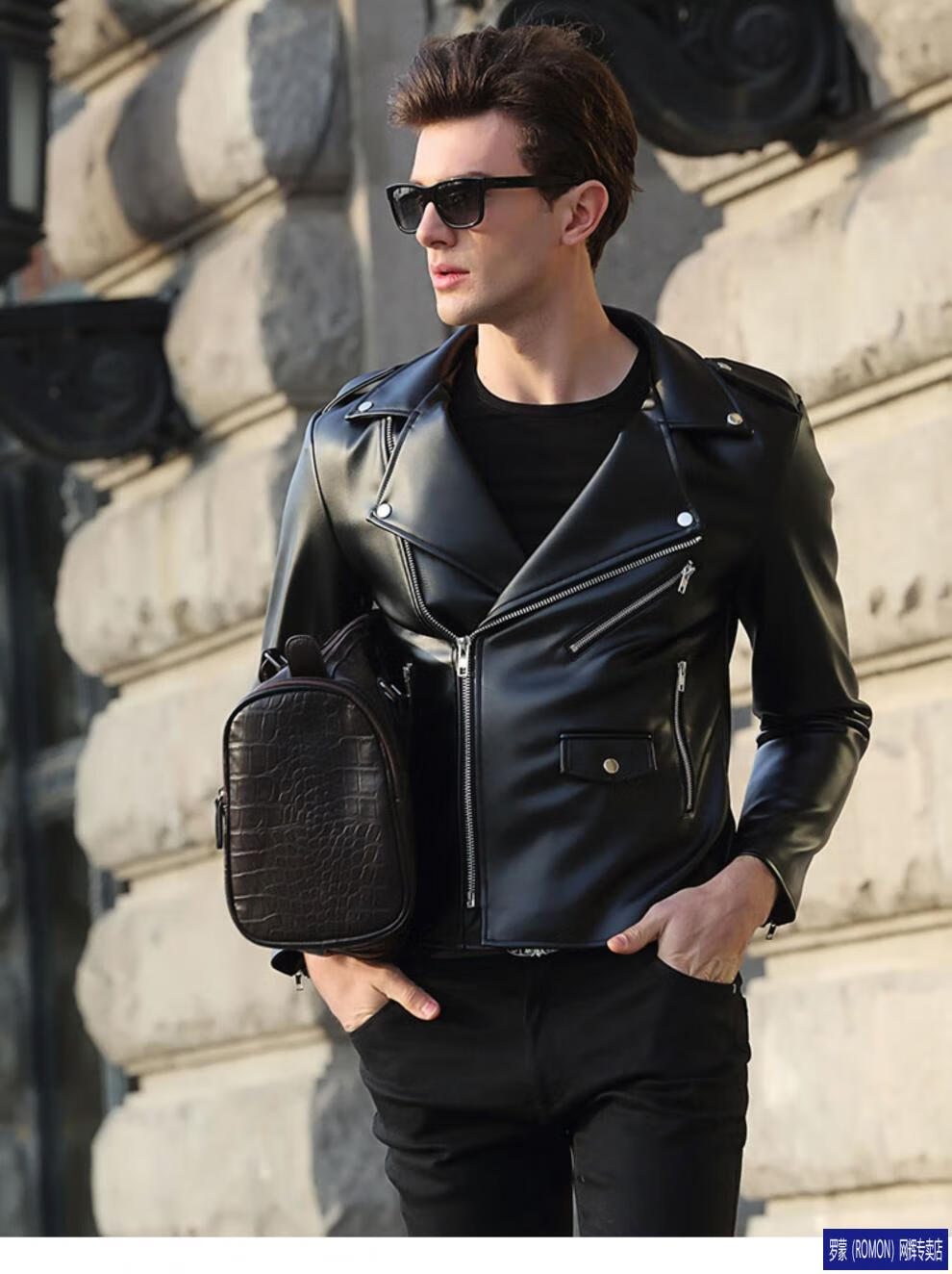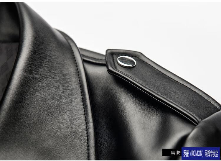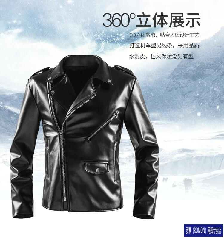 罗蒙(ROMON)修身皮衣男韩版帅气2025新款青年潮流翻领外套加绒加厚机车皮夹克 黑色 M