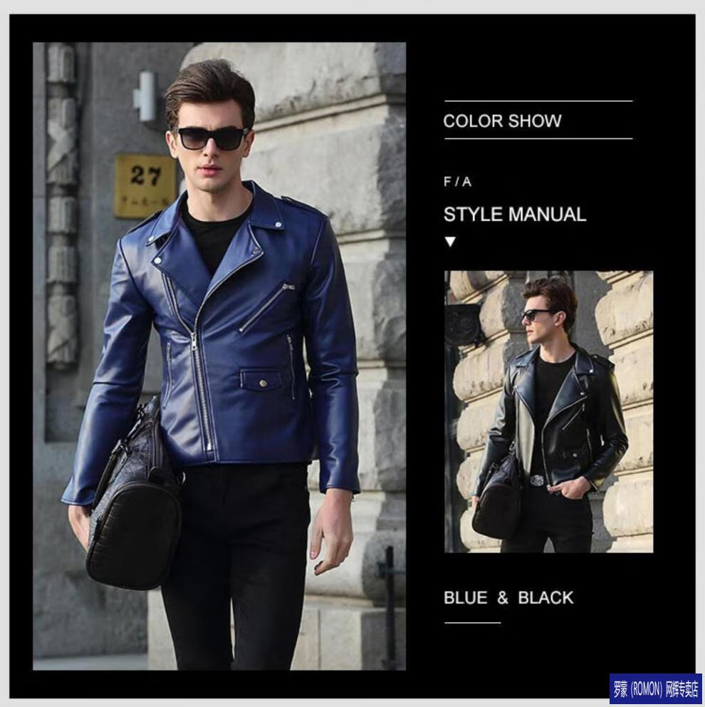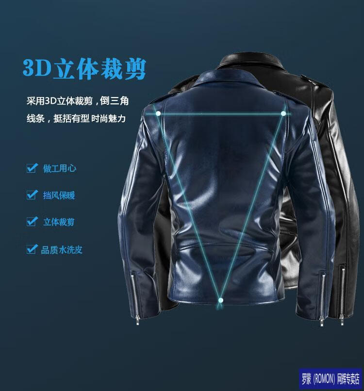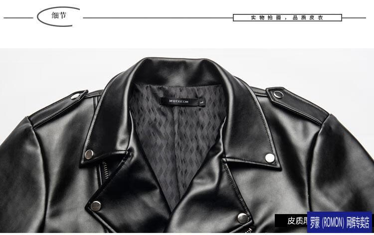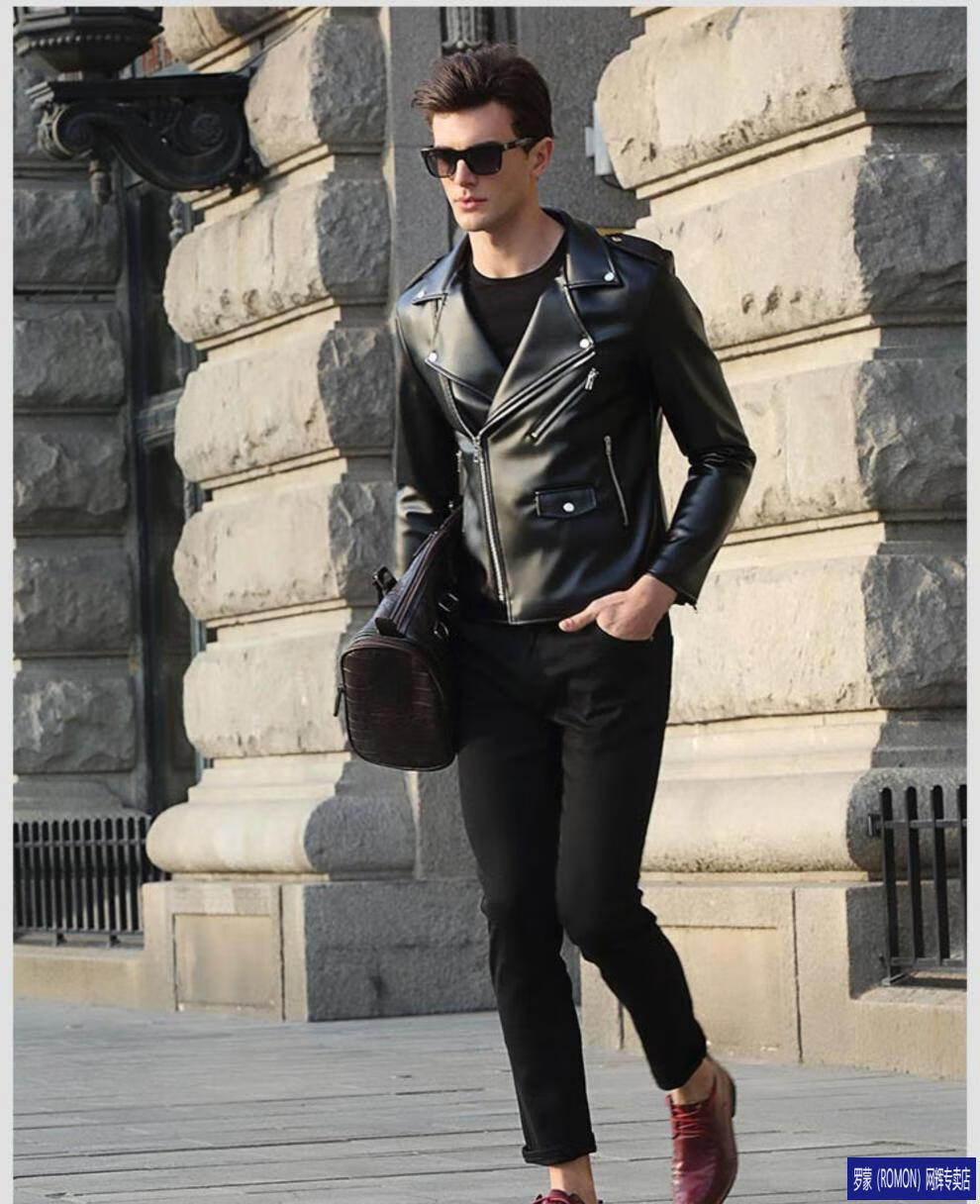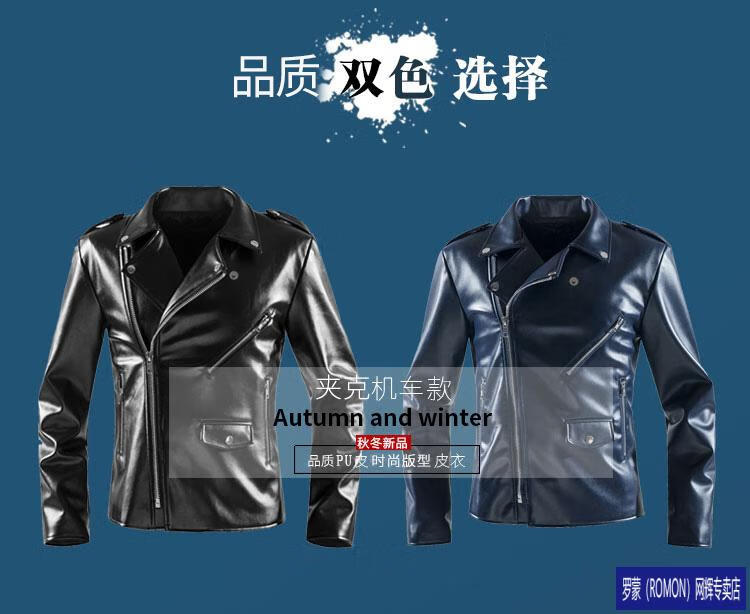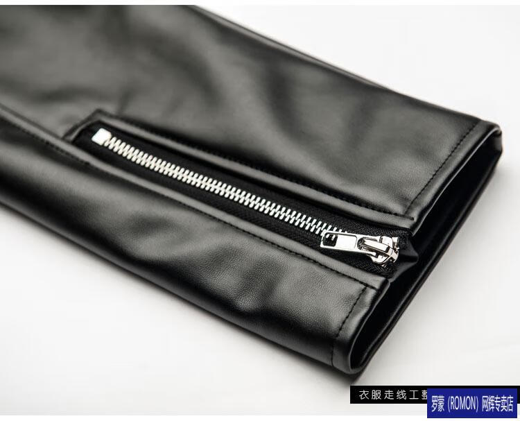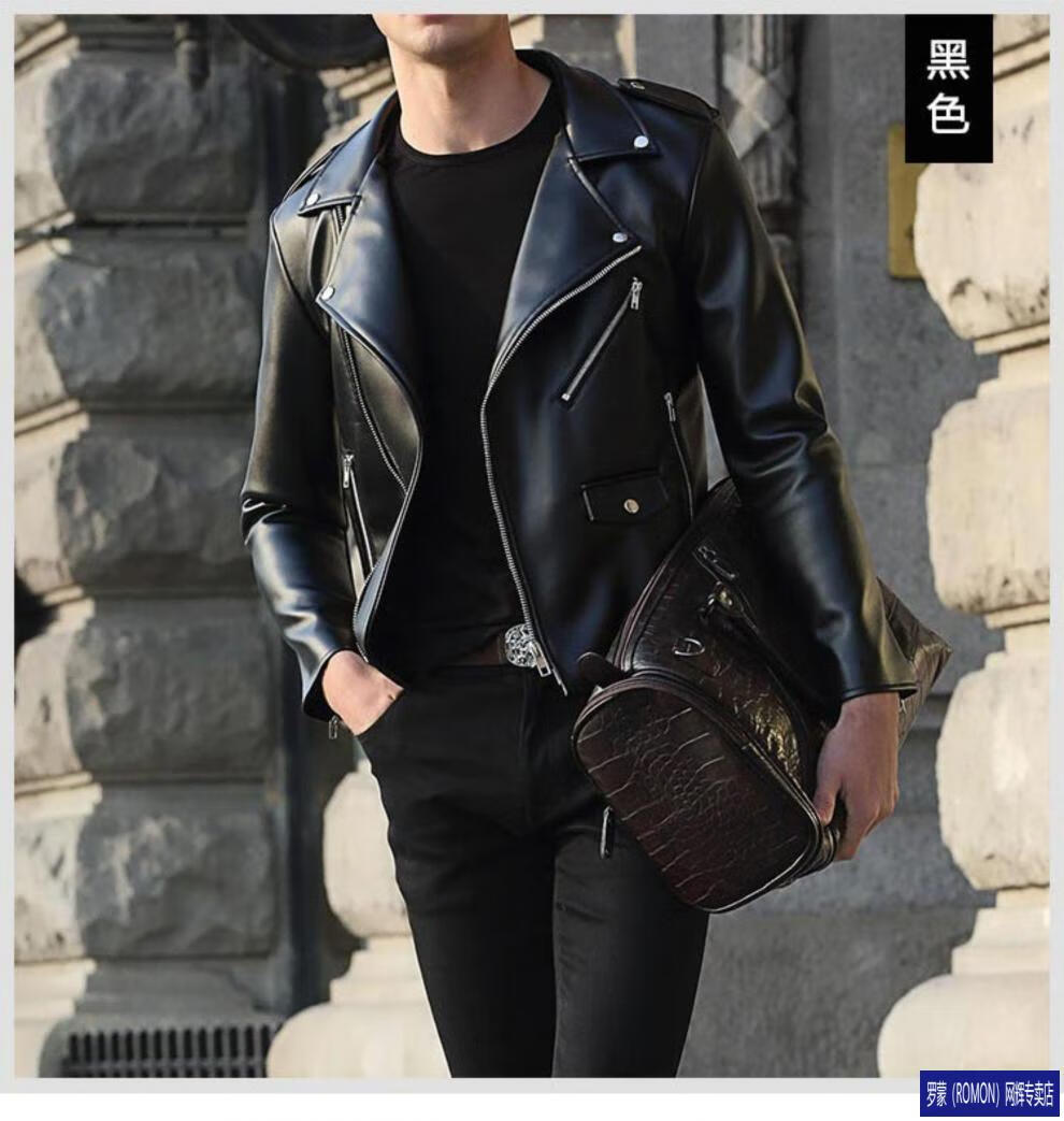 罗蒙(ROMON)修身皮衣男韩版帅气2025新款青年潮流翻领外套加绒加厚机车皮夹克 黑色 M