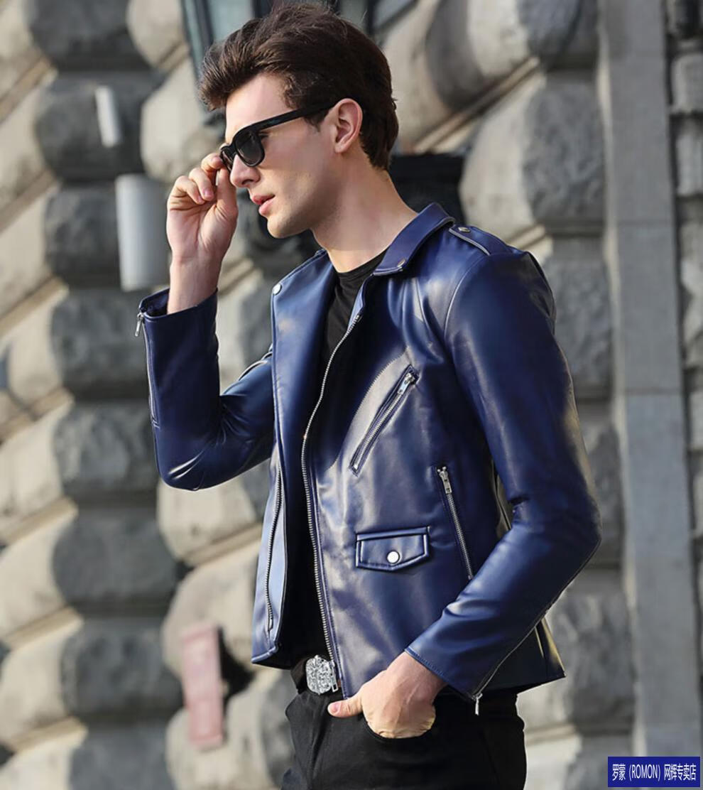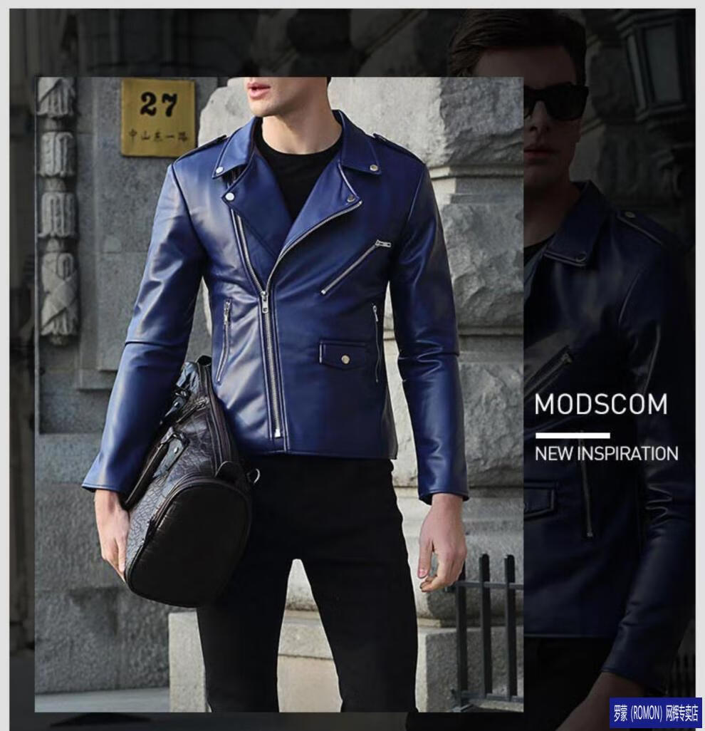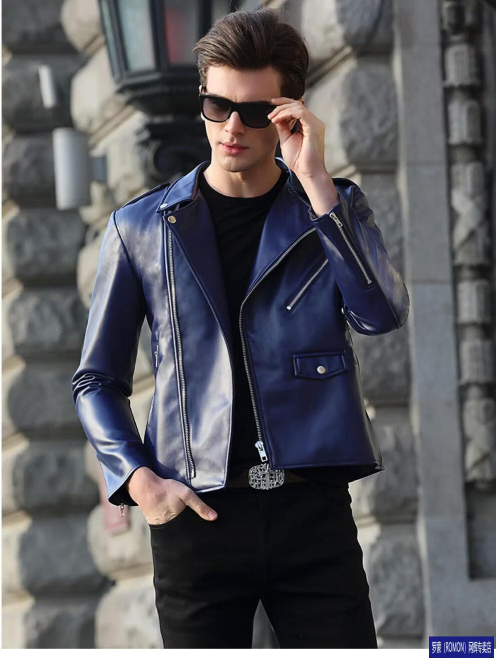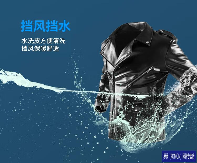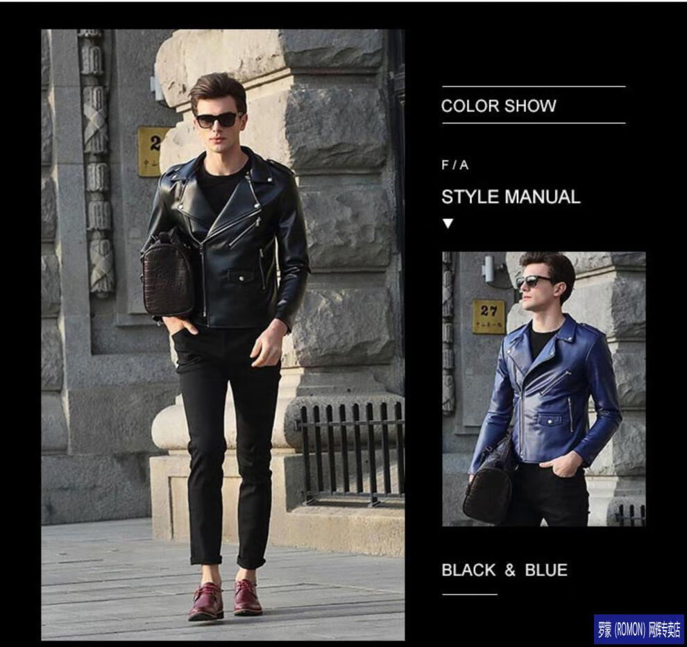 罗蒙(ROMON)修身皮衣男韩版帅气2025新款青年潮流翻领外套加绒加厚机车皮夹克 黑色 M