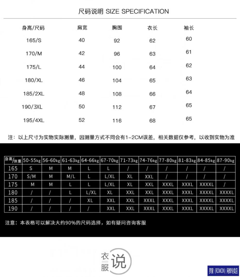 China (cm) 165 / 88-90 170 / 96-98 175 / 108-110 180 / 118-122 185 / 126-130