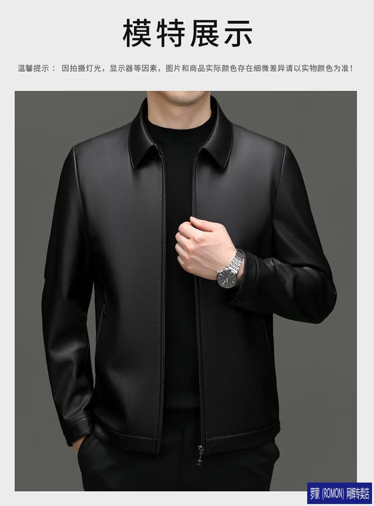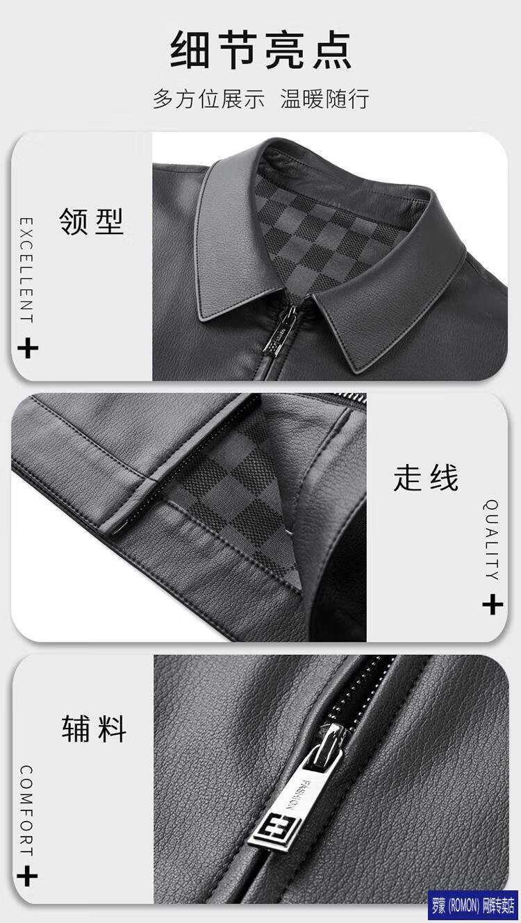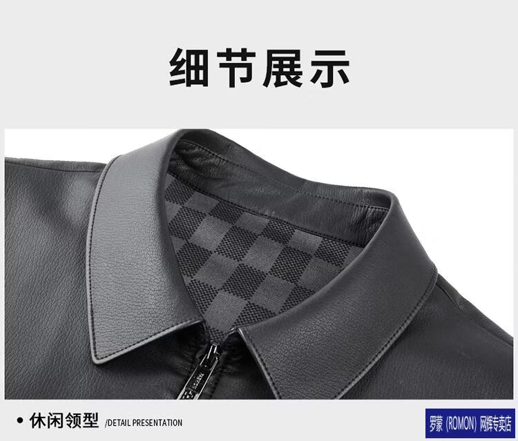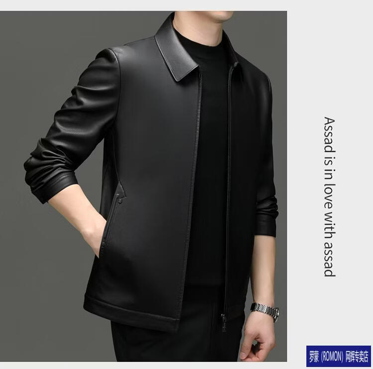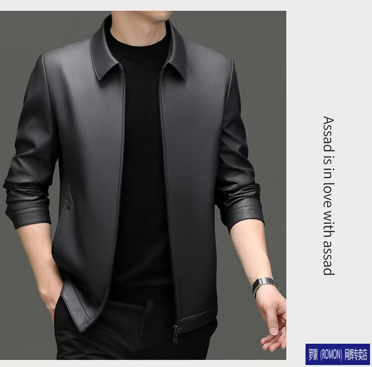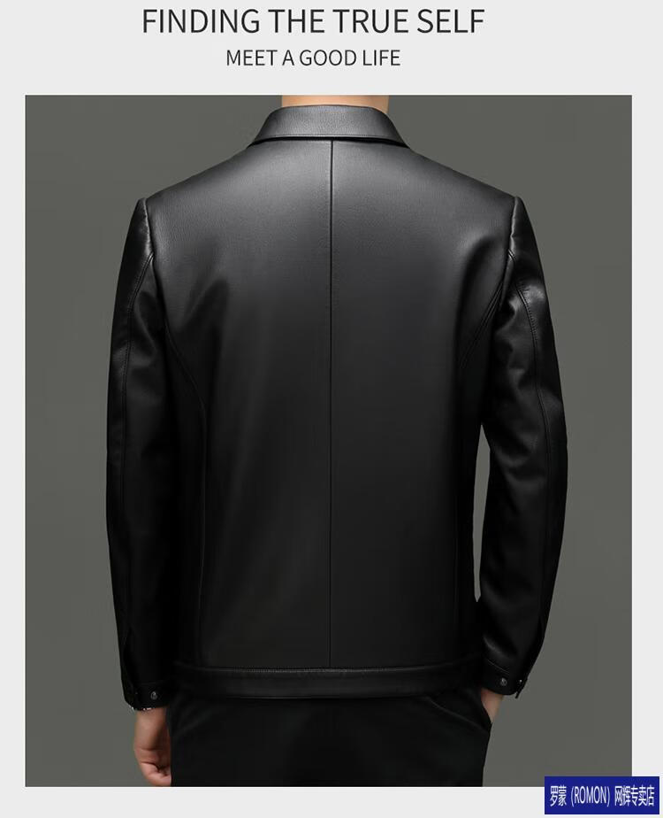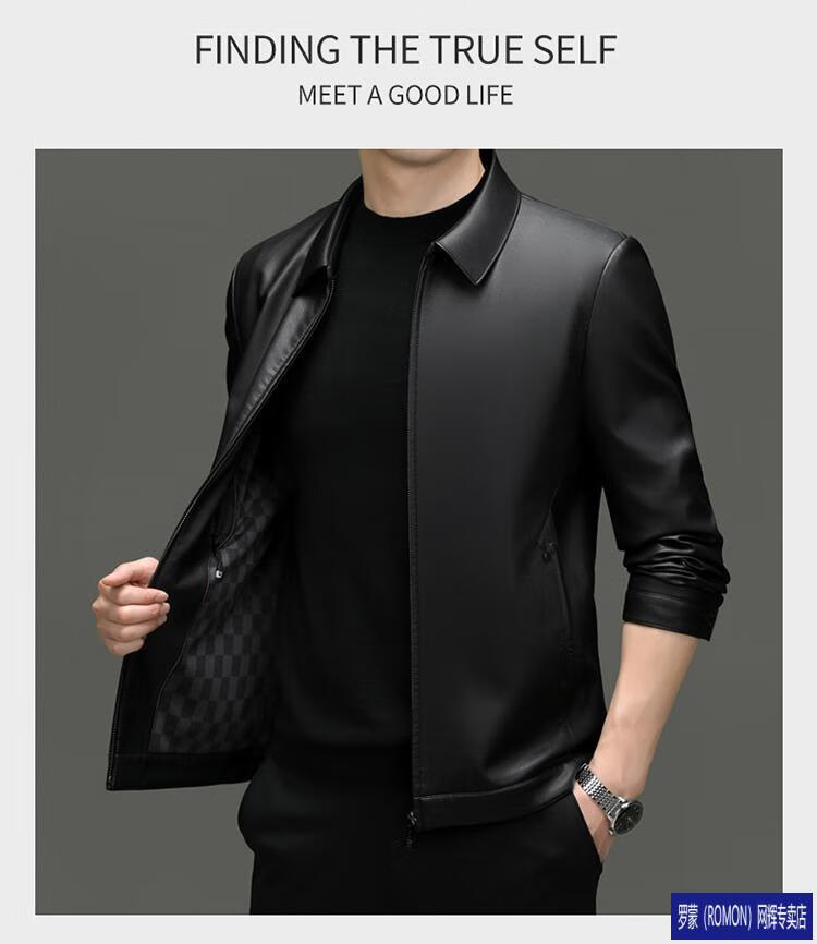 罗蒙(ROMON)皮衣男加绒加厚2026秋冬季机车绵羊皮皮夹克男皮外套爸爸装 单皮翻领黑色 3XL 190 建议175-190斤