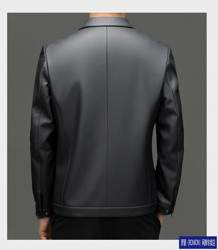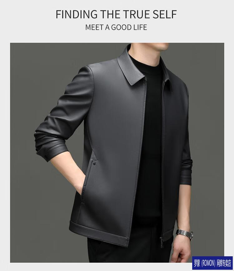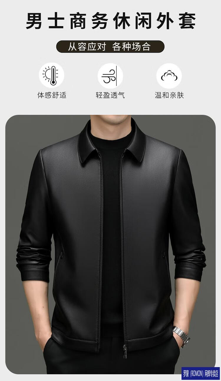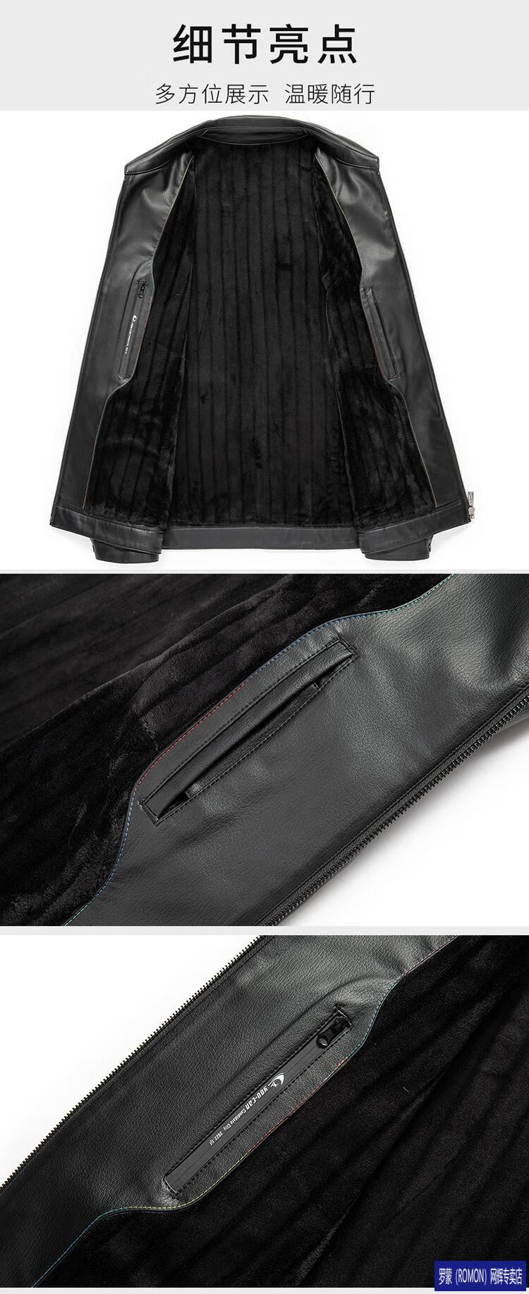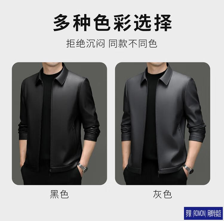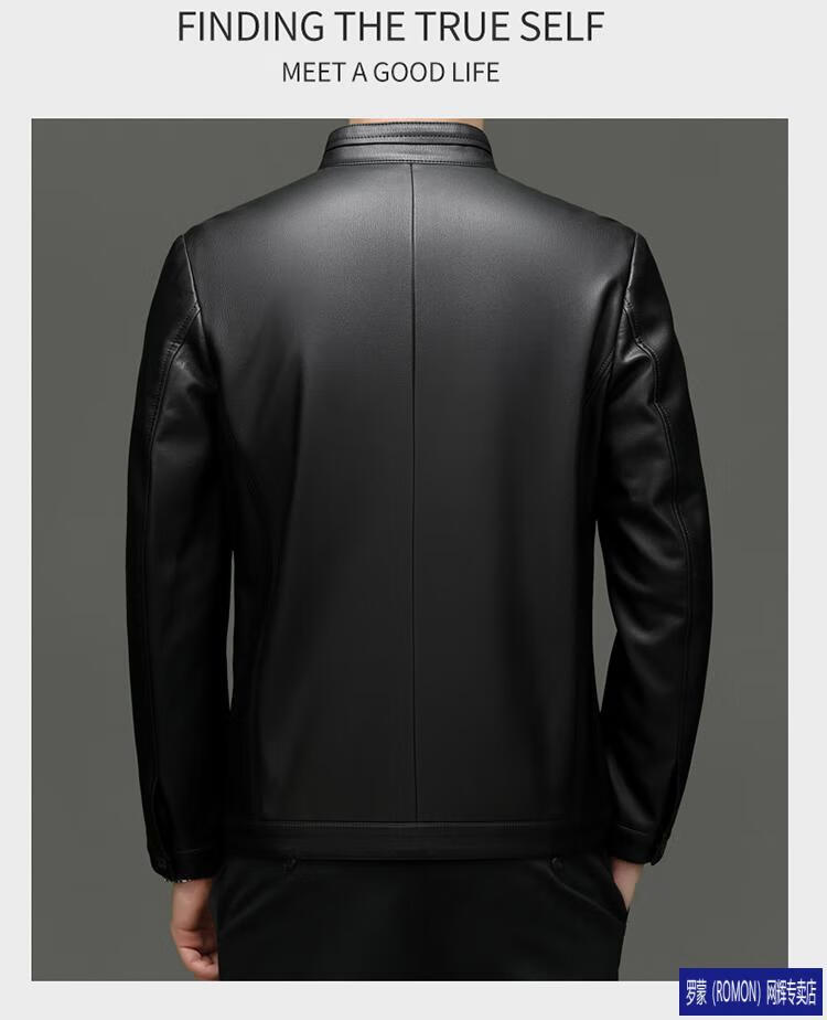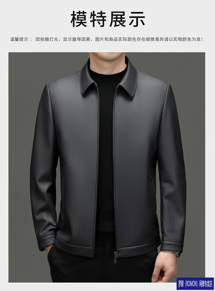 罗蒙(ROMON)皮衣男加绒加厚2026秋冬季机车绵羊皮皮夹克男皮外套爸爸装 单皮翻领黑色 3XL 190 建议175-190斤