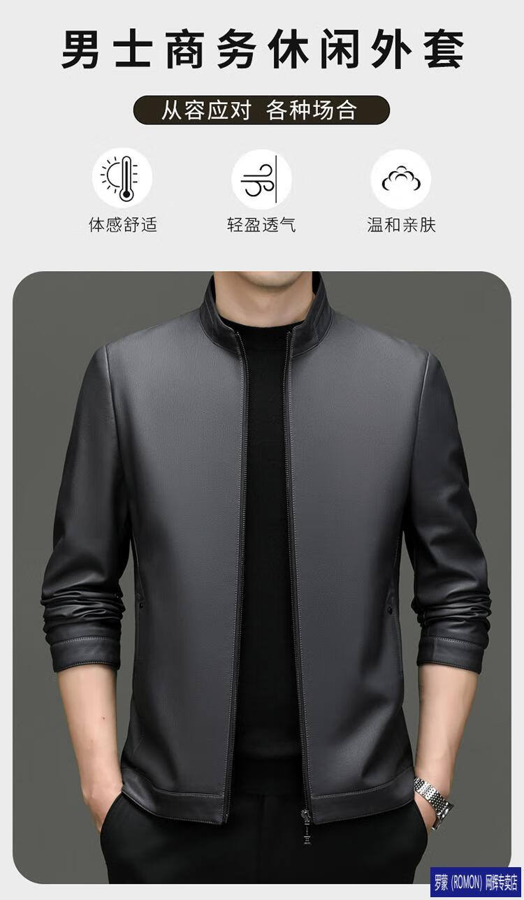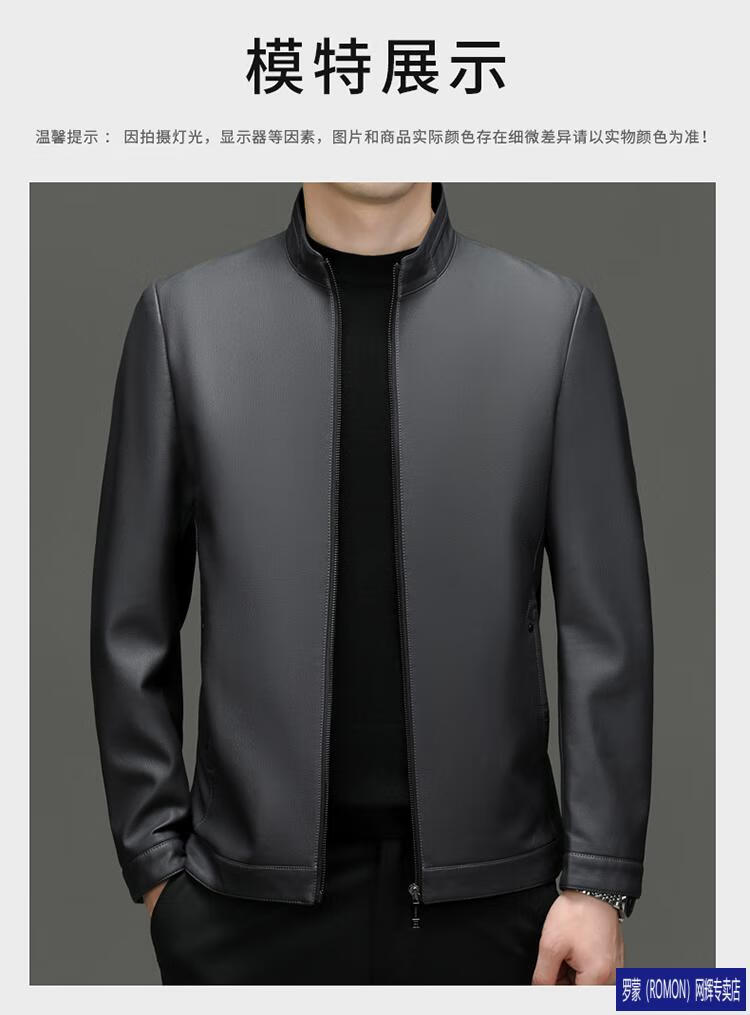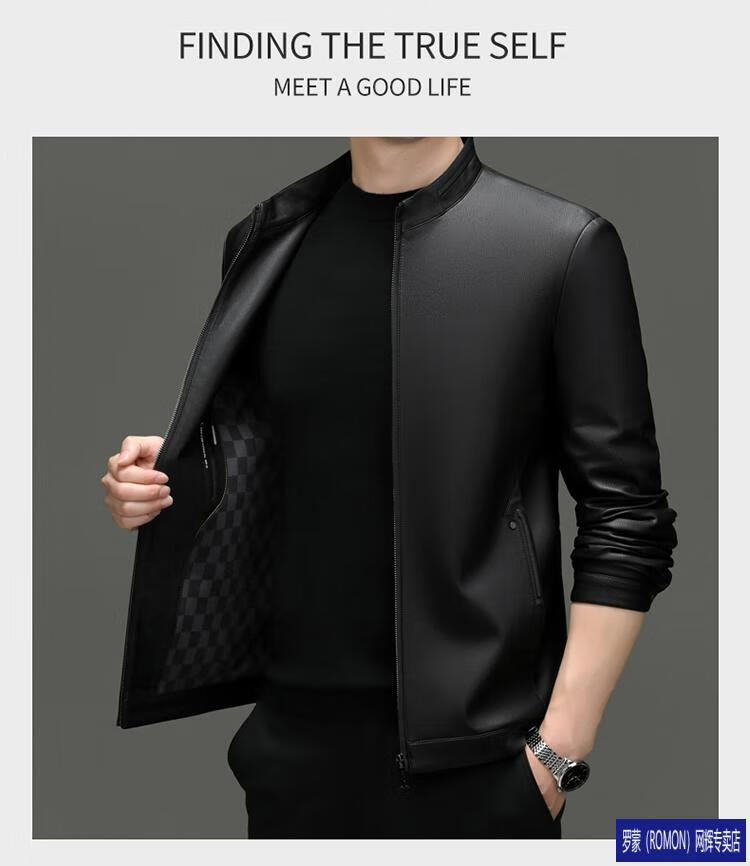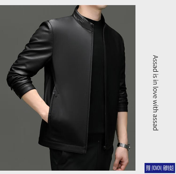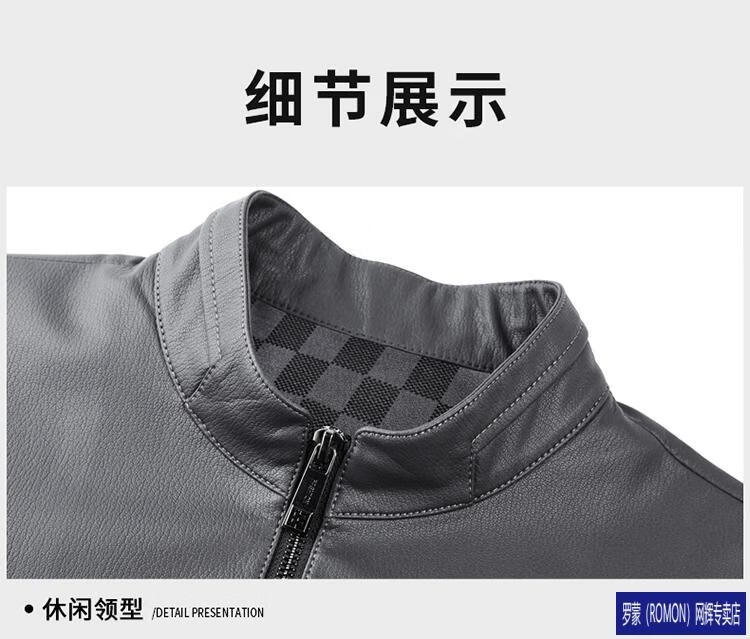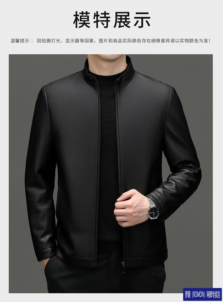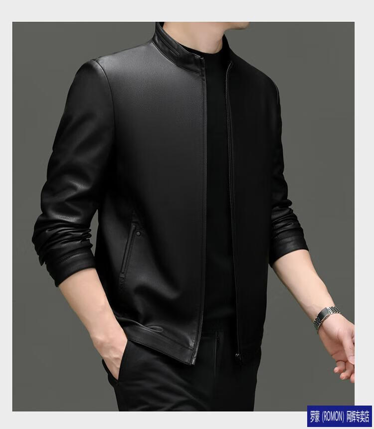 罗蒙(ROMON)皮衣男加绒加厚2026秋冬季机车绵羊皮皮夹克男皮外套爸爸装 单皮翻领黑色 3XL 190 建议175-190斤