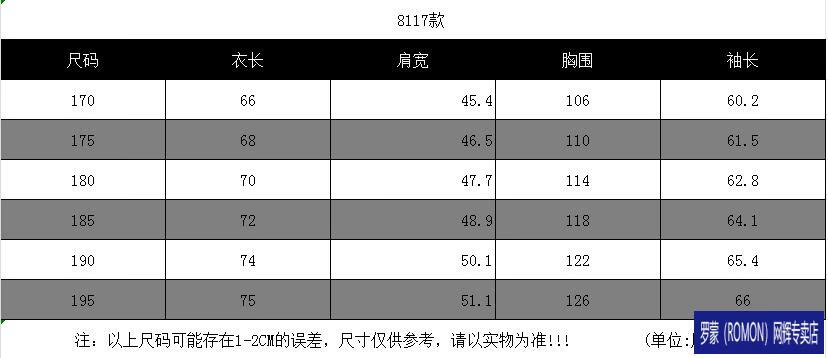China (cm) 160-165/84-86 165-170 / 88-90 167-172 / 92-96 168-173 / 98-102 170-176 / 106-110