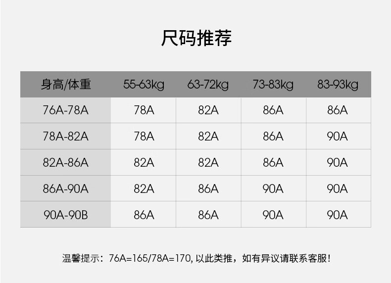China(cm) 72-76 76-81 81-87 87-93 93-98