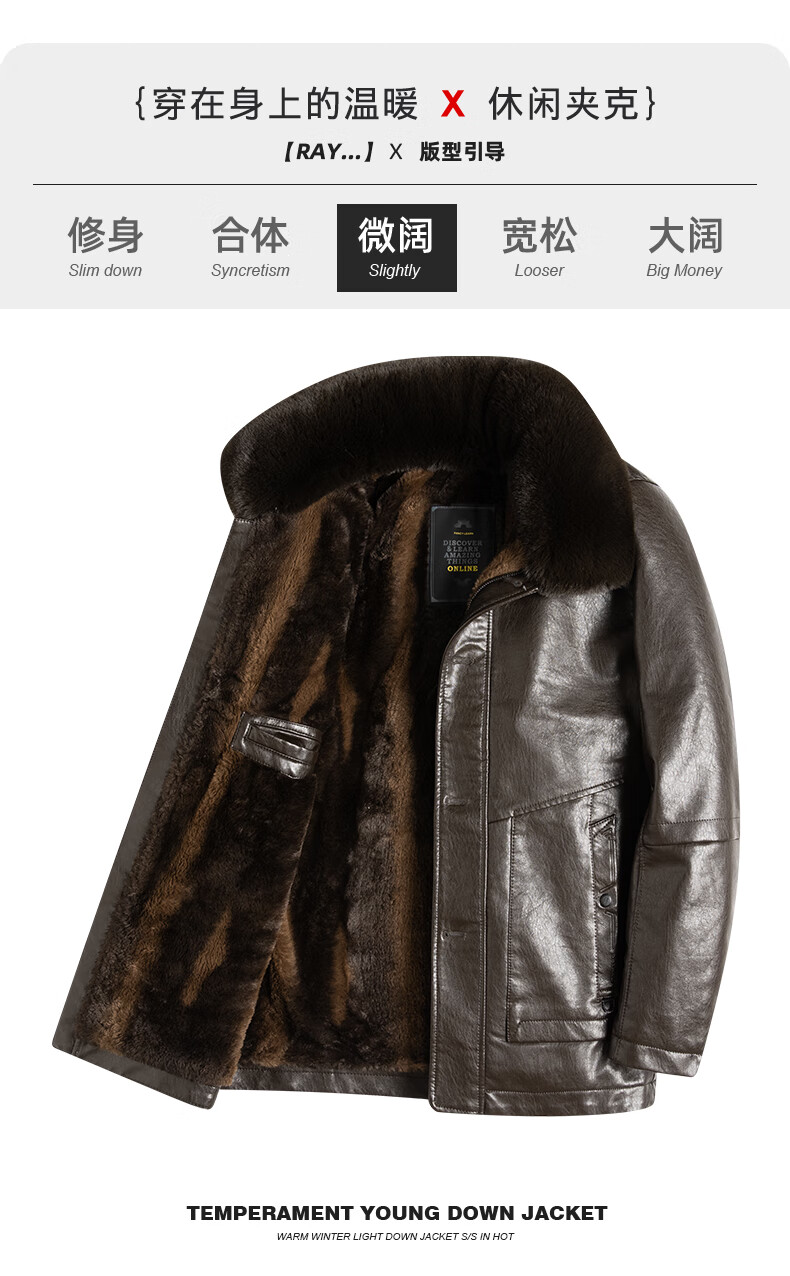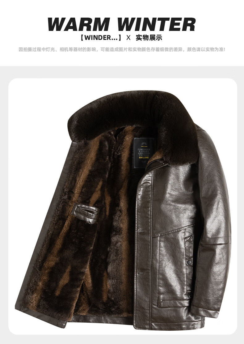 名雅萱冬季皮衣男保暖皮夹克加绒加厚外套中年男士爸爸冬装老爹装 黑色 加厚 XL 180【建议125-140斤】