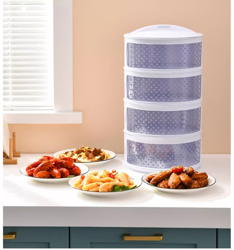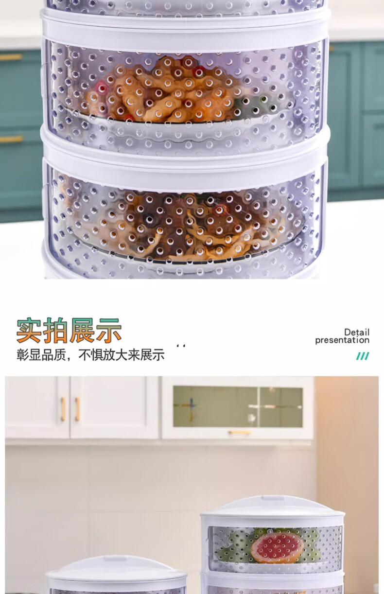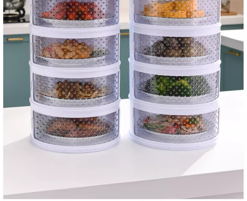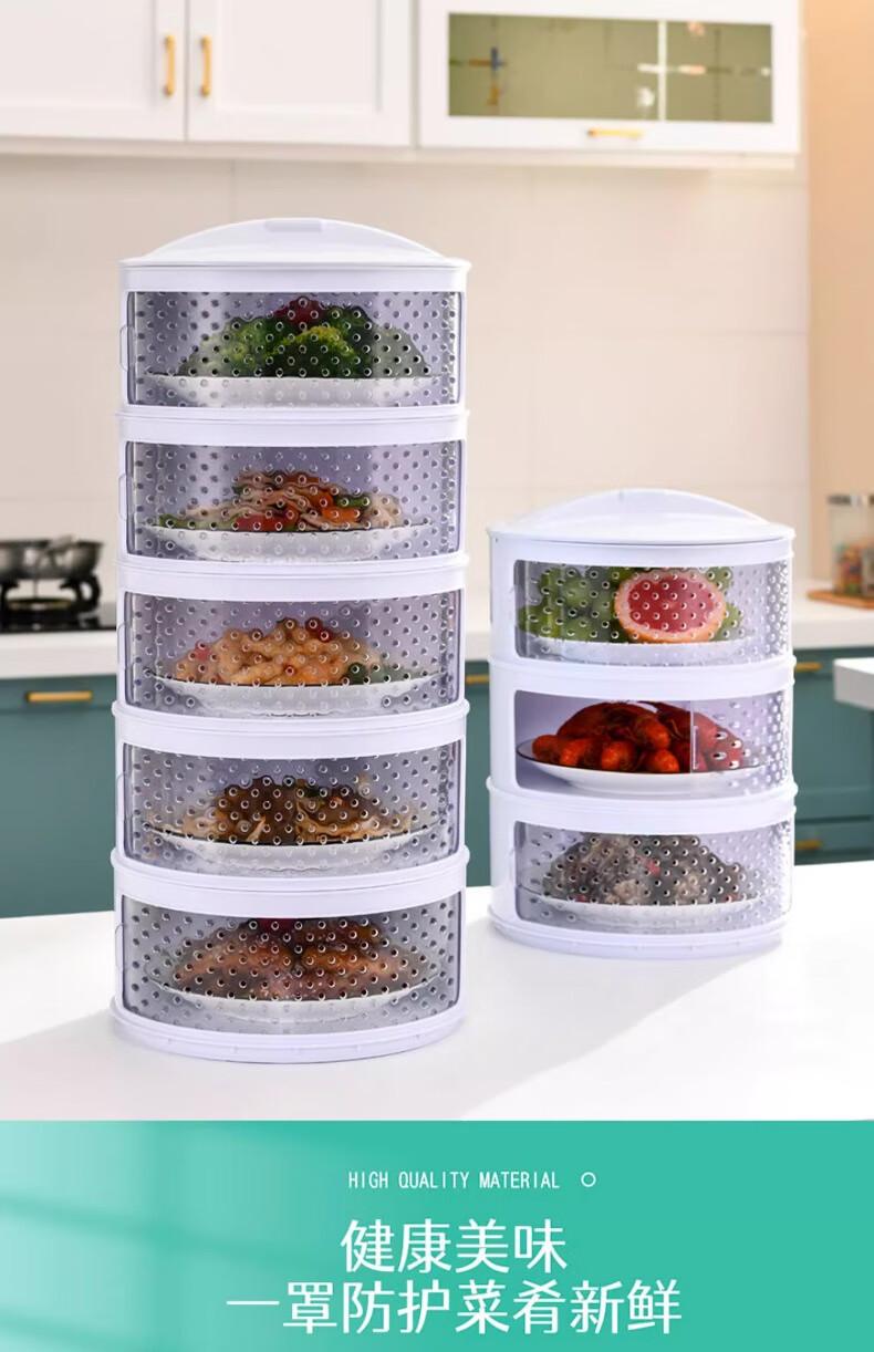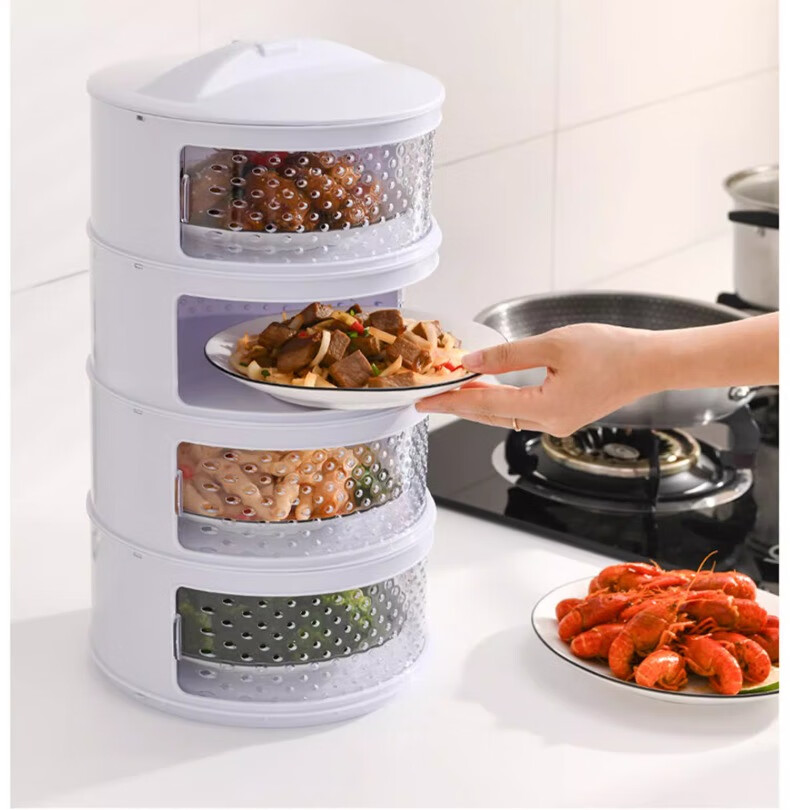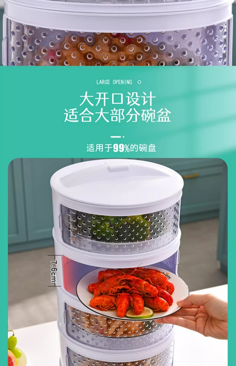 Vegetable cover, multi-layer storage rack for household leftovers, food and meal dust-proof cover, insulated dining table cover, dust cover artifact, 4-layer heightening, breathable and fly-proof style, 1-layer soup bowl + 3-layer bowls and plates