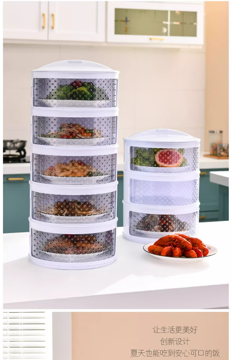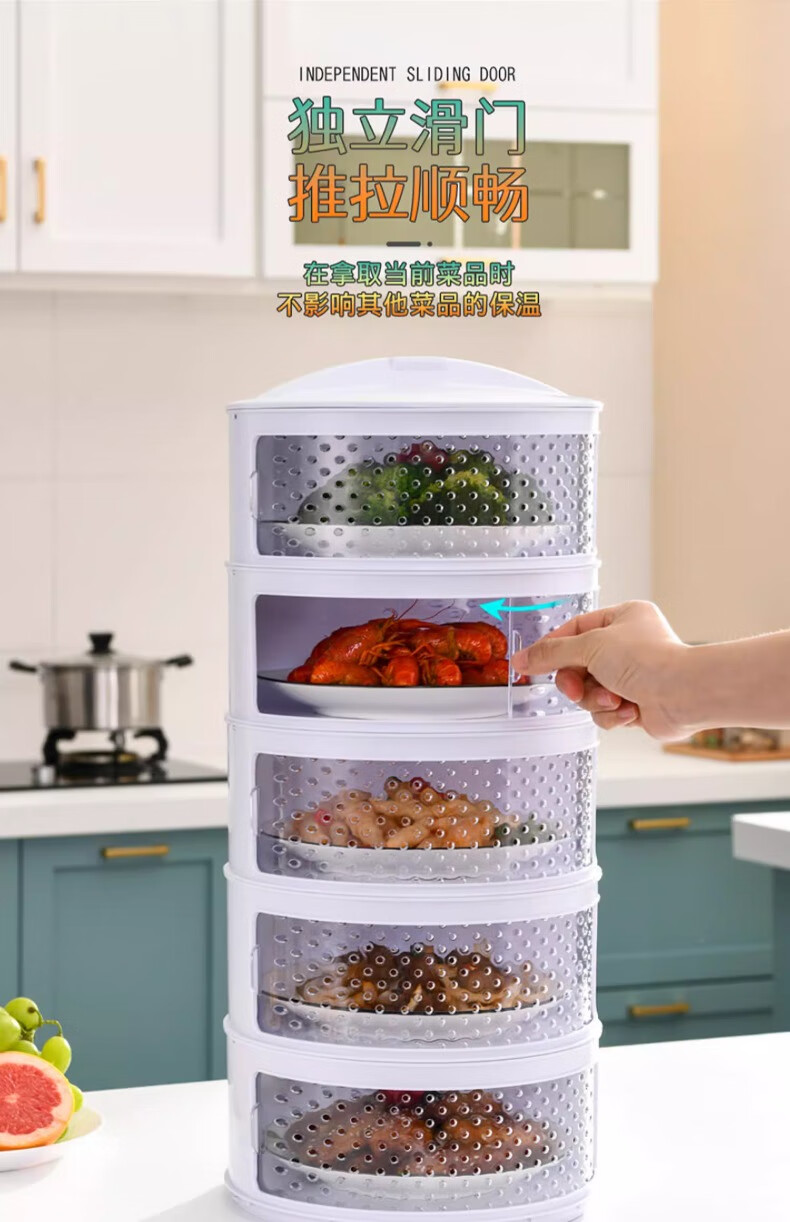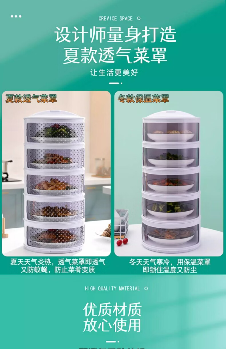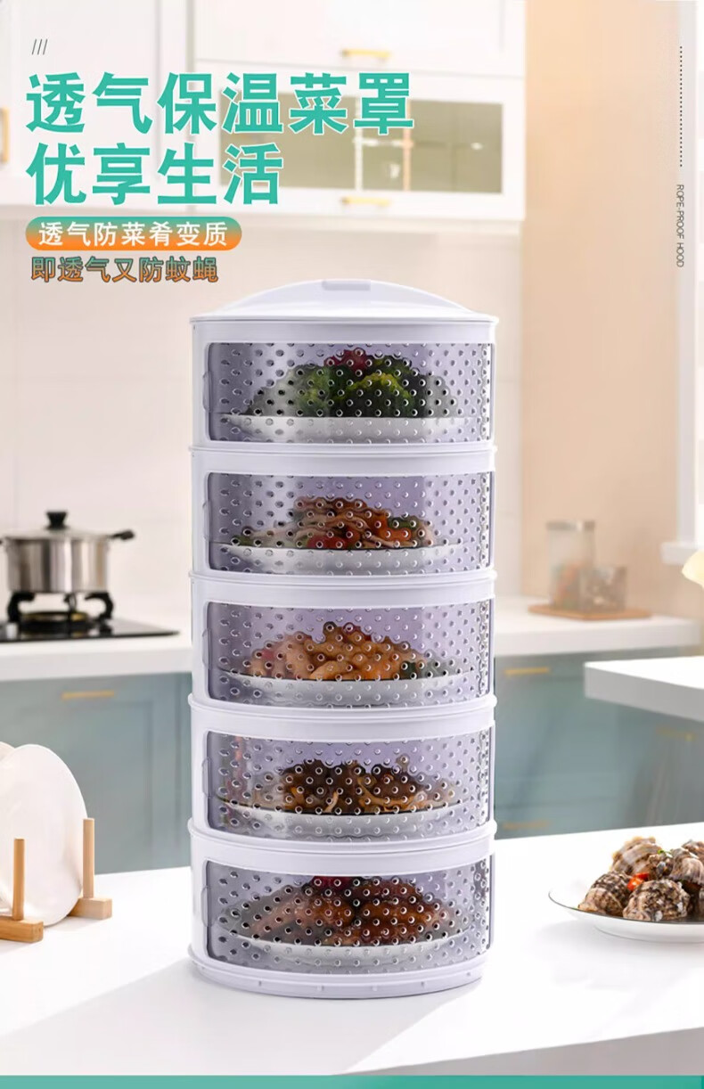 Vegetable cover, multi-layer storage rack for household leftovers, food and meal dust-proof cover, insulated dining table cover, dust cover artifact, 4-layer heightening, breathable and fly-proof style, 1-layer soup bowl + 3-layer bowls and plates