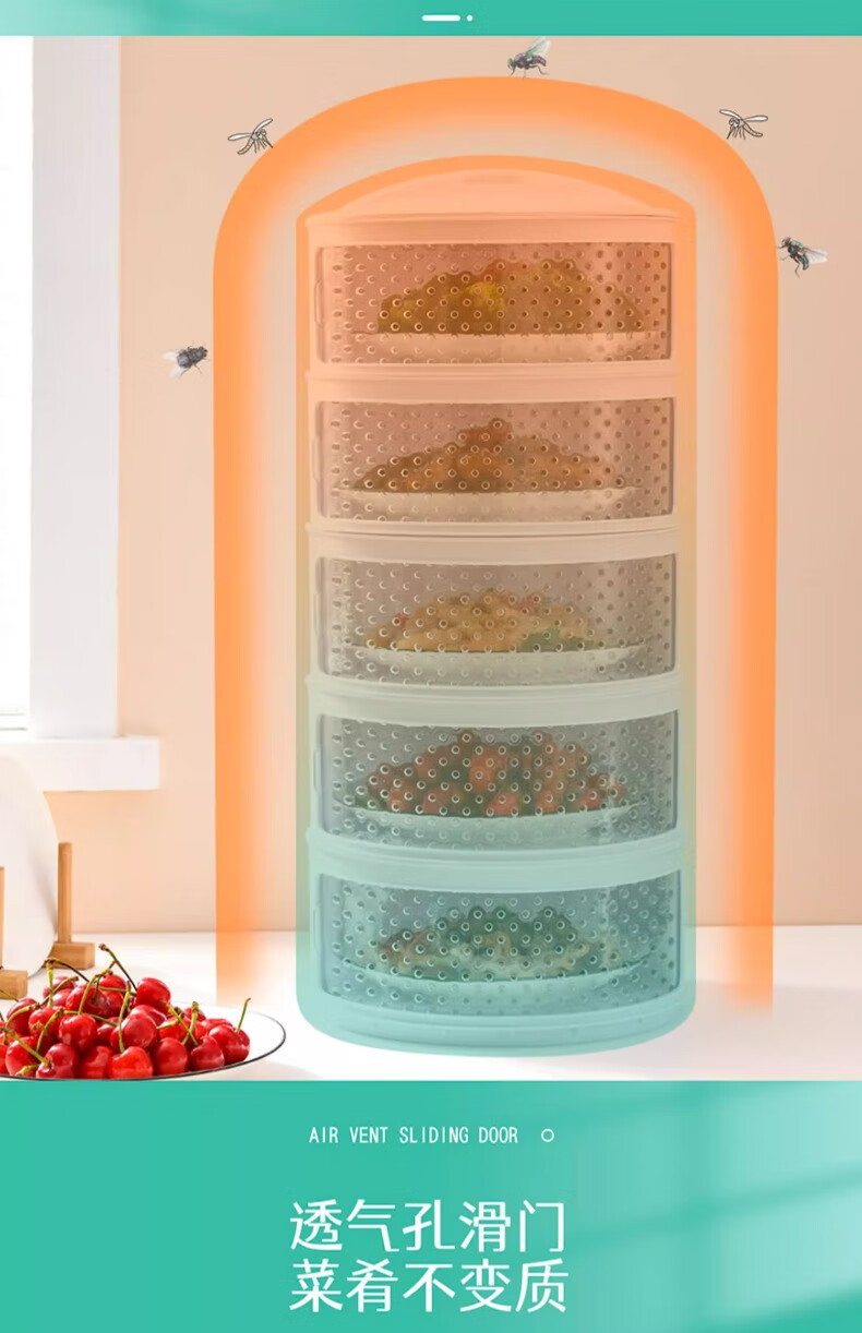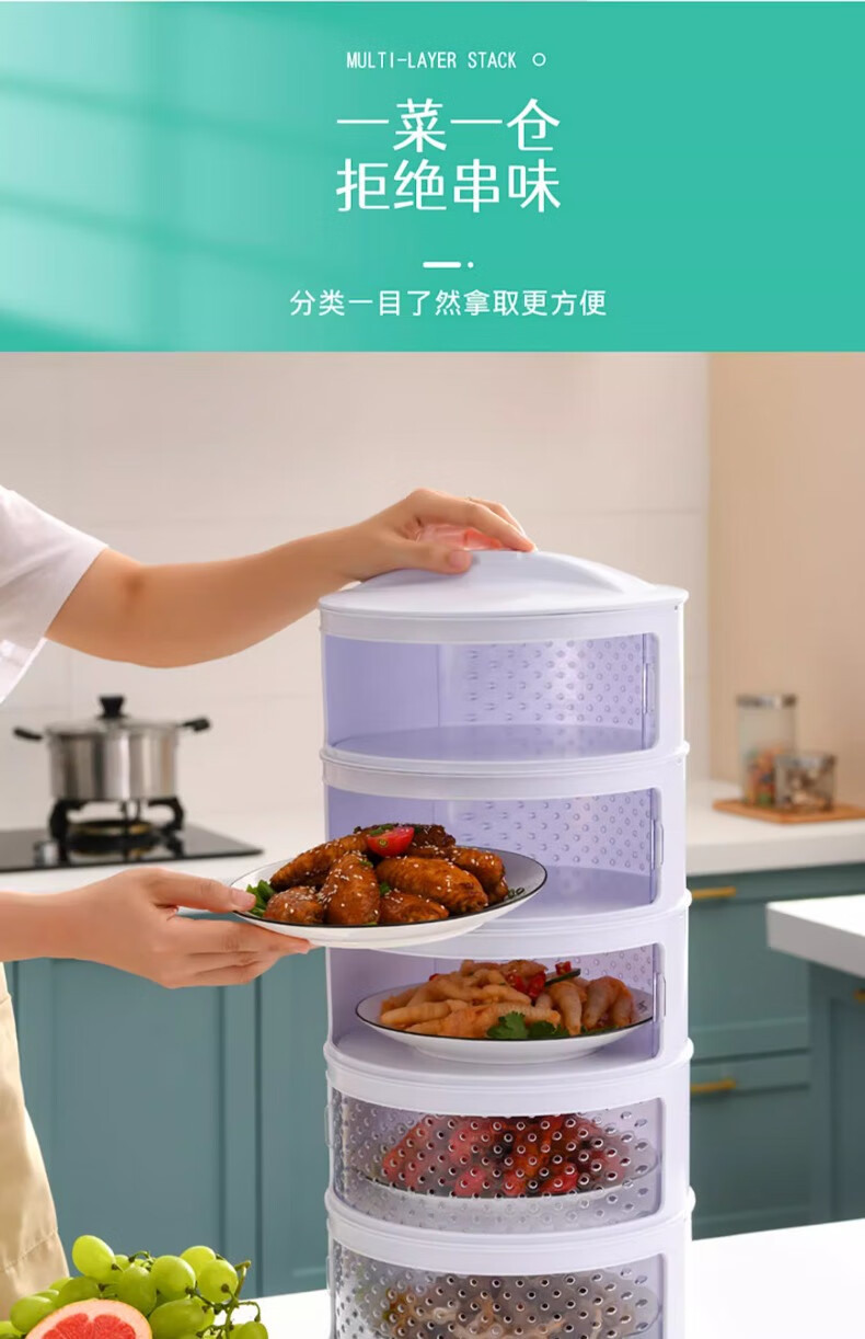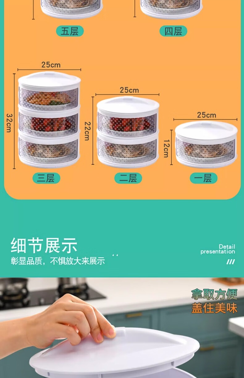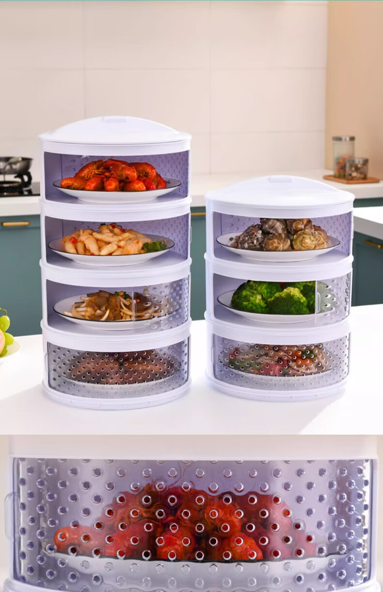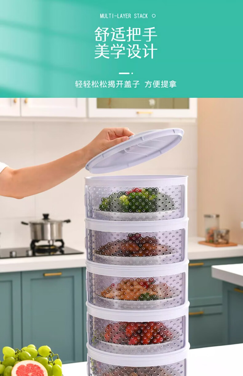 Vegetable cover, multi-layer storage rack for household leftovers, food and meal dust-proof cover, insulated dining table cover, dust cover artifact, 4-layer heightening, breathable and fly-proof style, 1-layer soup bowl + 3-layer bowls and plates