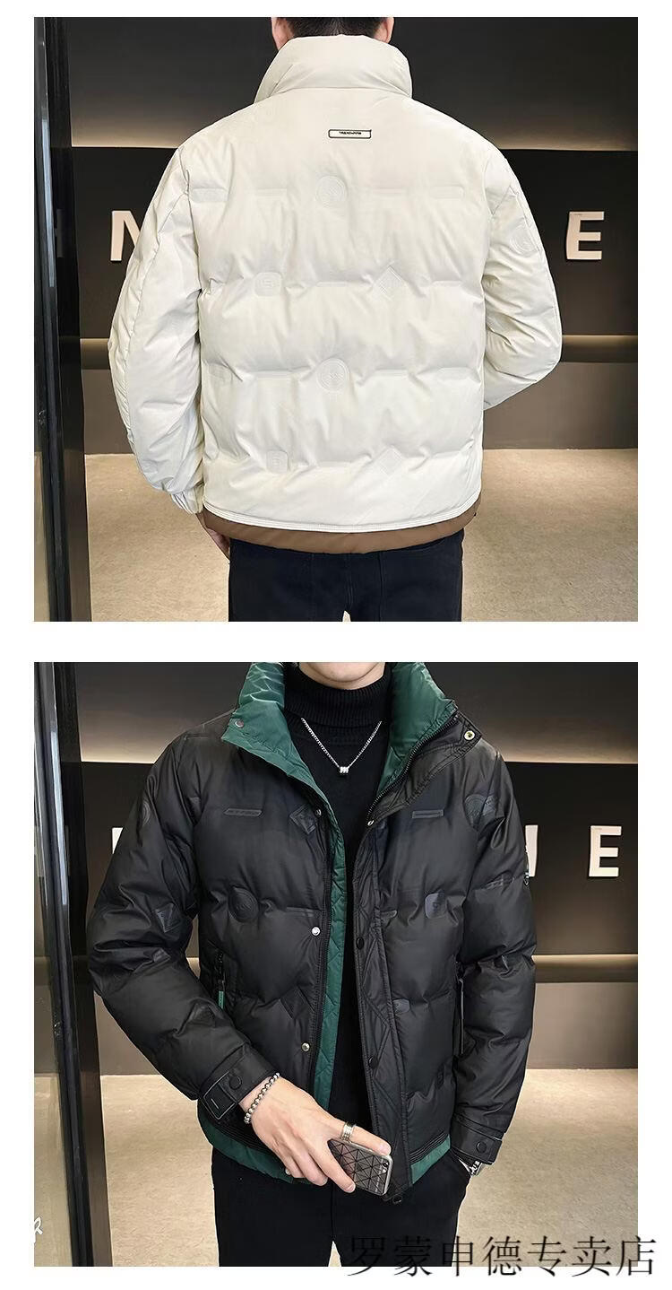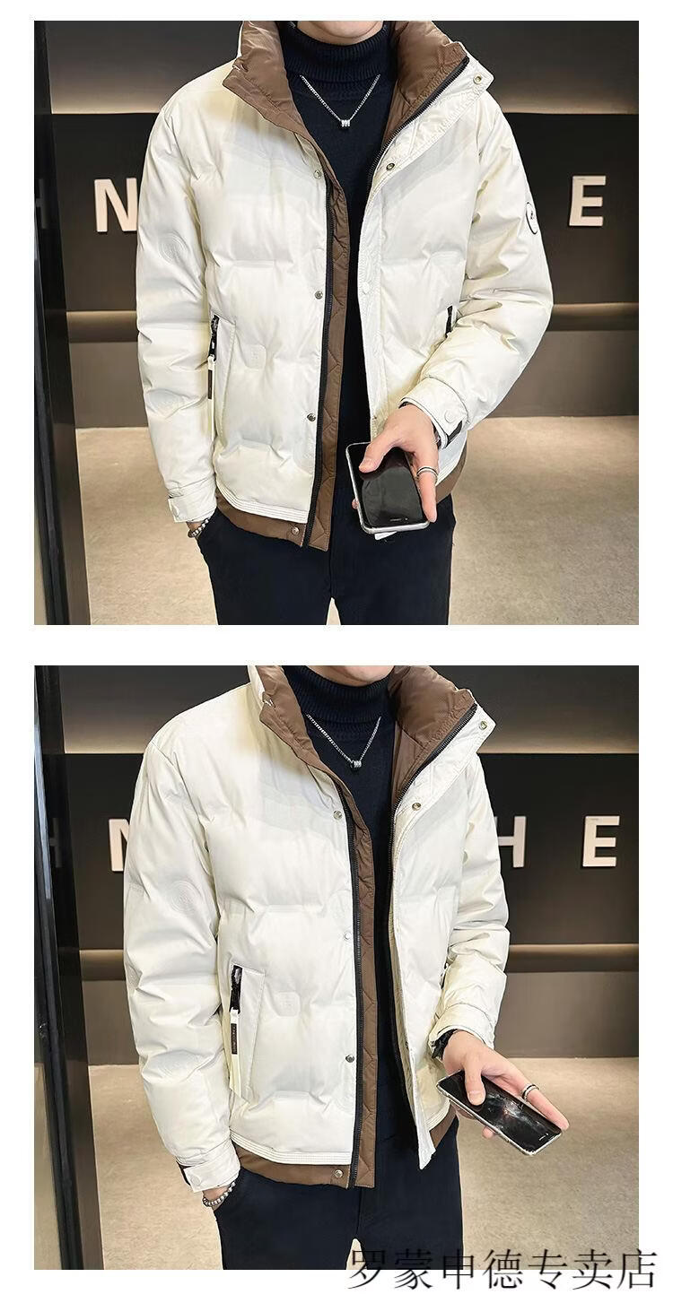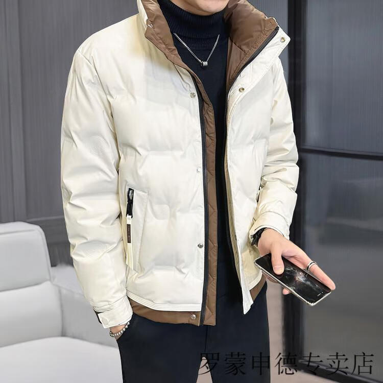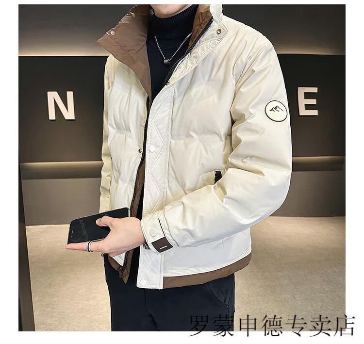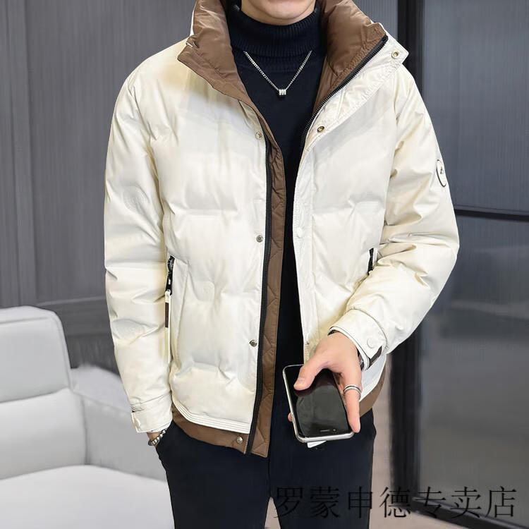 罗蒙(ROMON)冬季重磅新款立领短款羽绒服男设计感高端百搭潮流加厚保暖外套男 白色 L