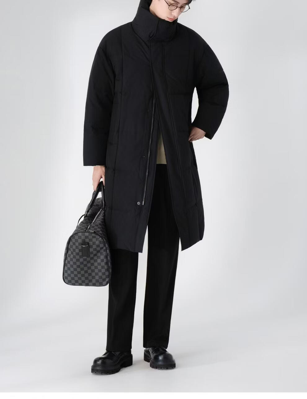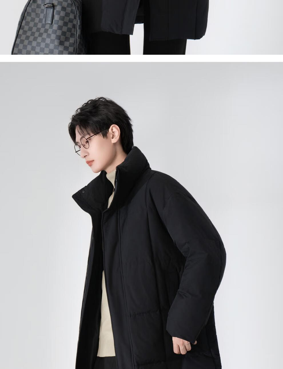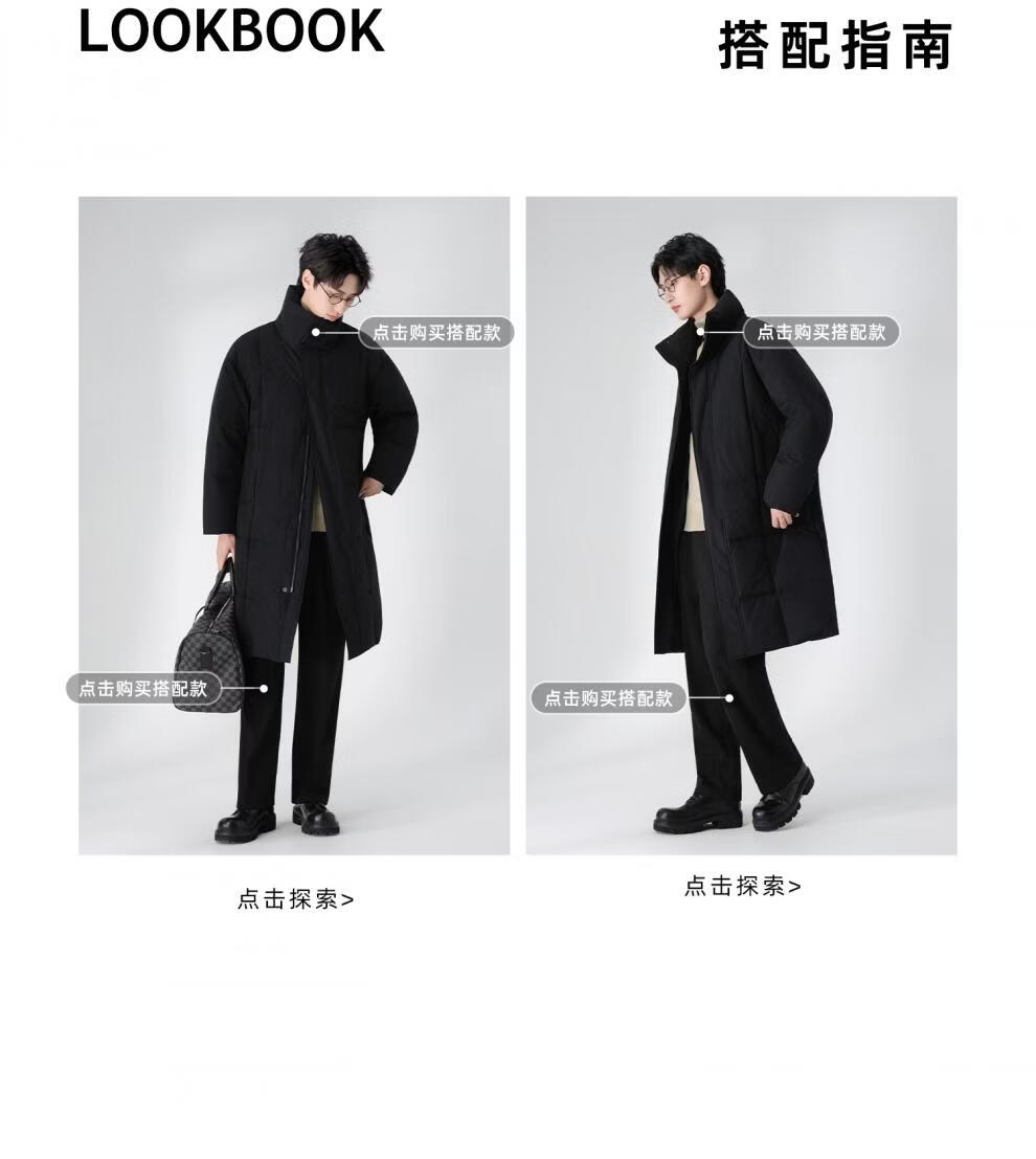 Lilang Autumn and Winter 90 White Duck Down Down Jacket Men's Medium Long 2025 New Coat Style Stand Collar Windbreaker Warm Jacket Black M