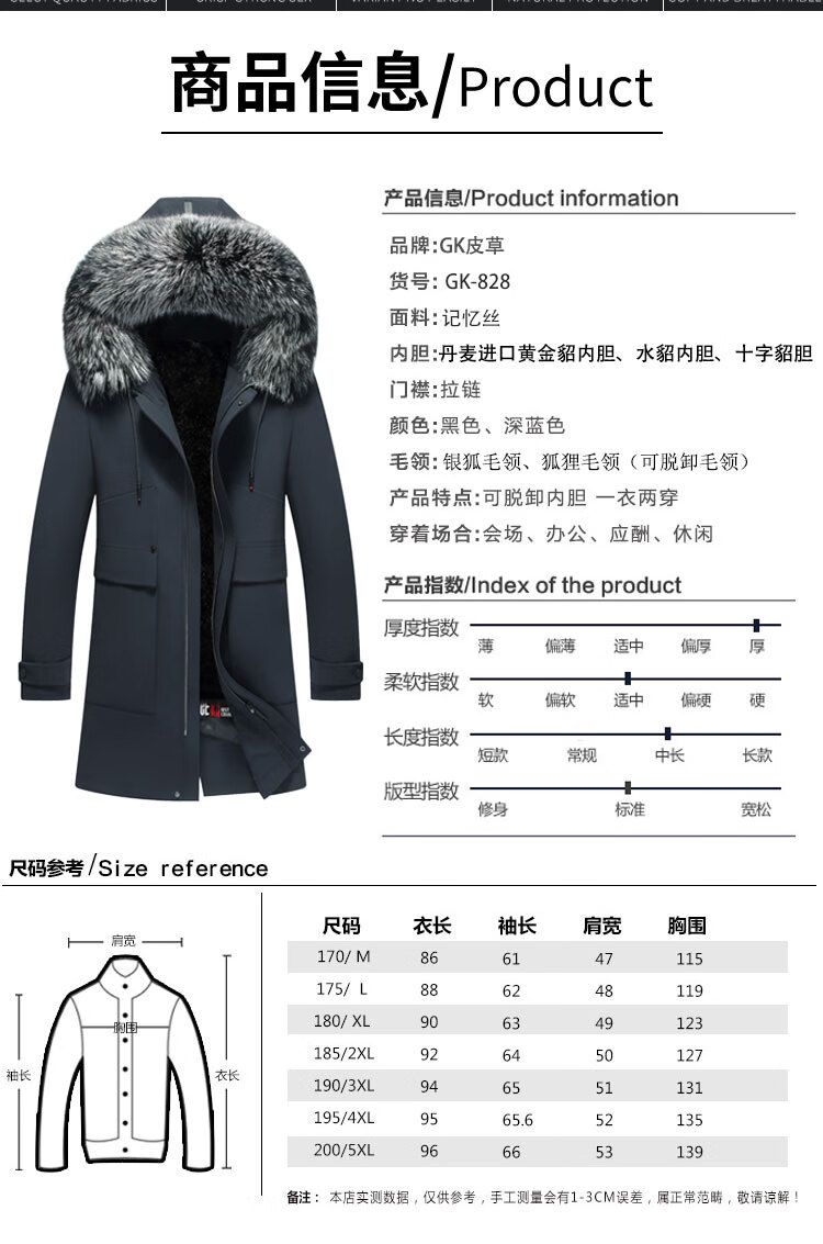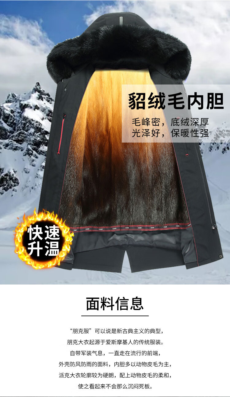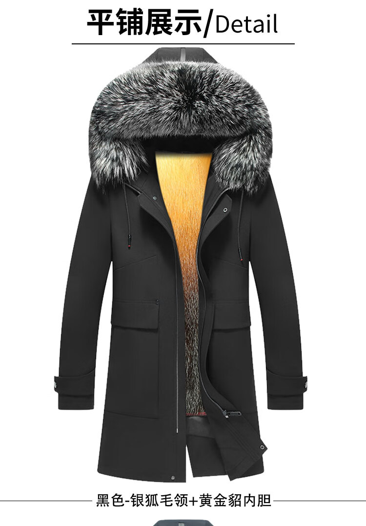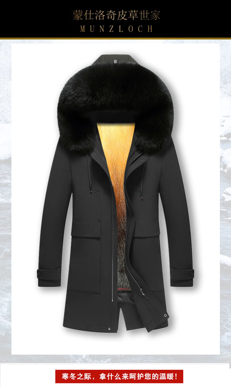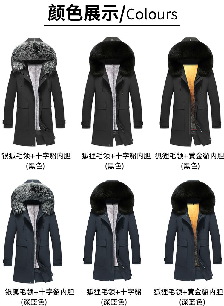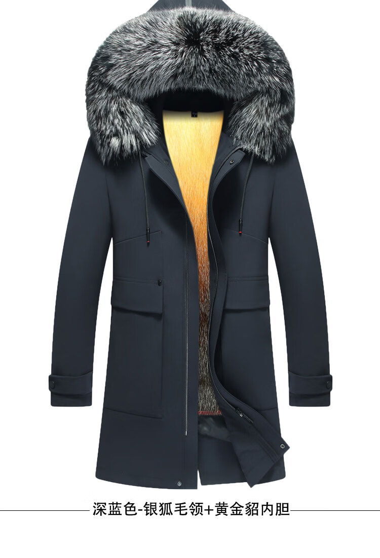 CHEVALPES international first-line brand 2025 winter new fur parka men's medium and long mink liner with integrated fur, blue fox fur collar + mink velvet liner XL 180
