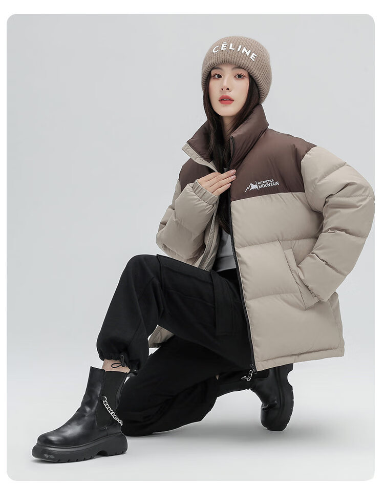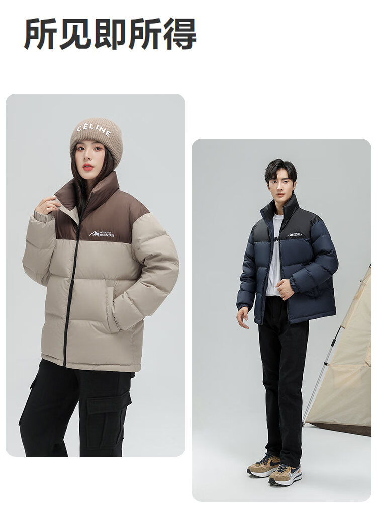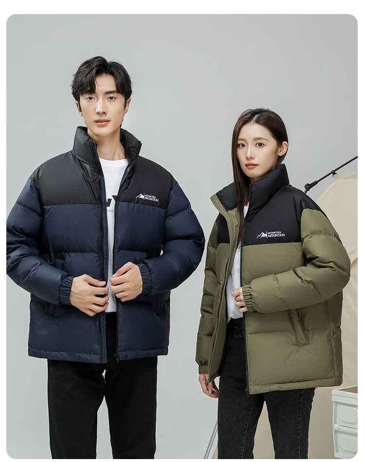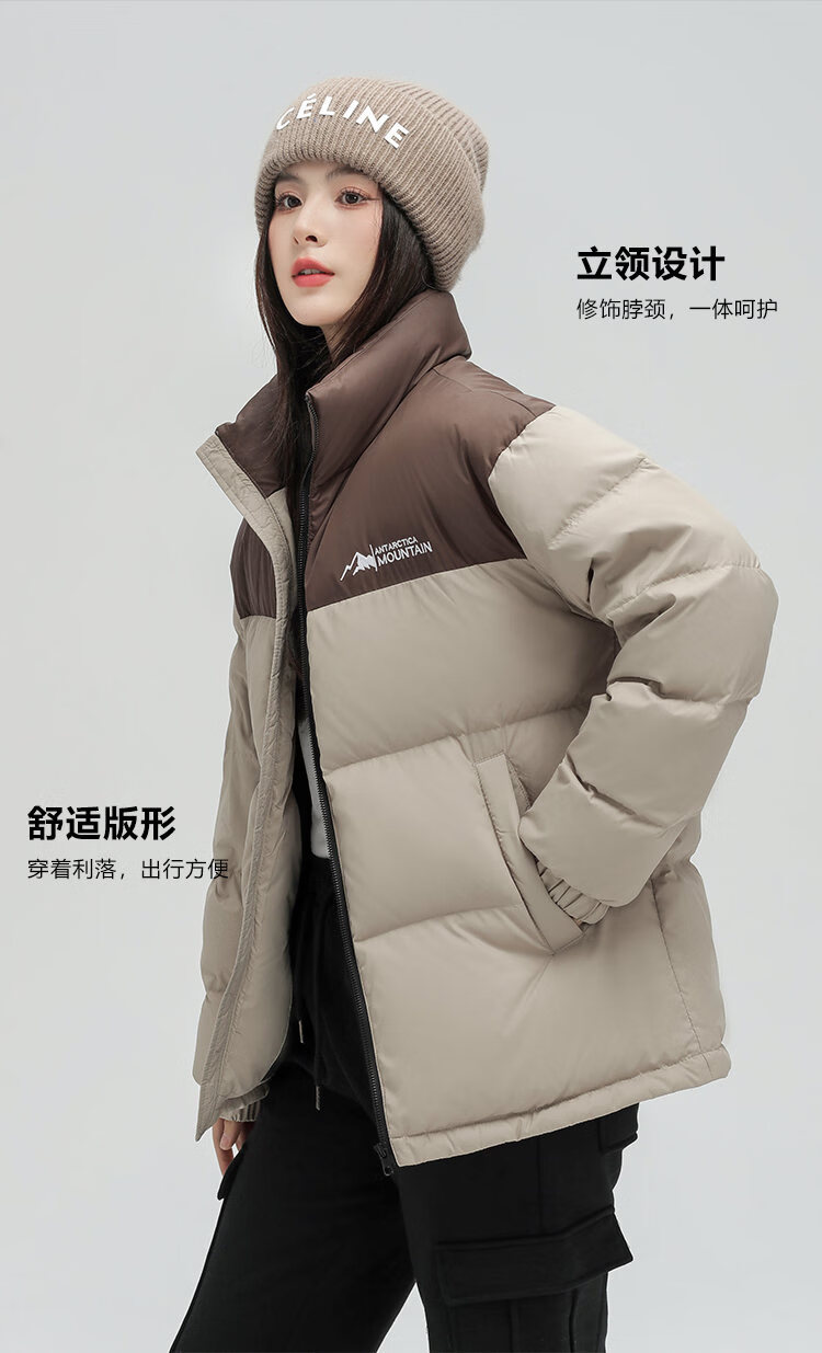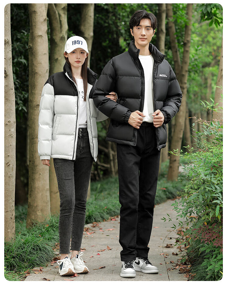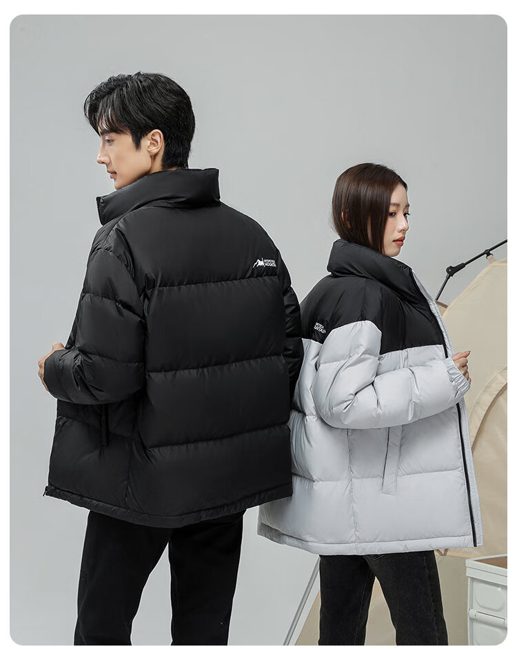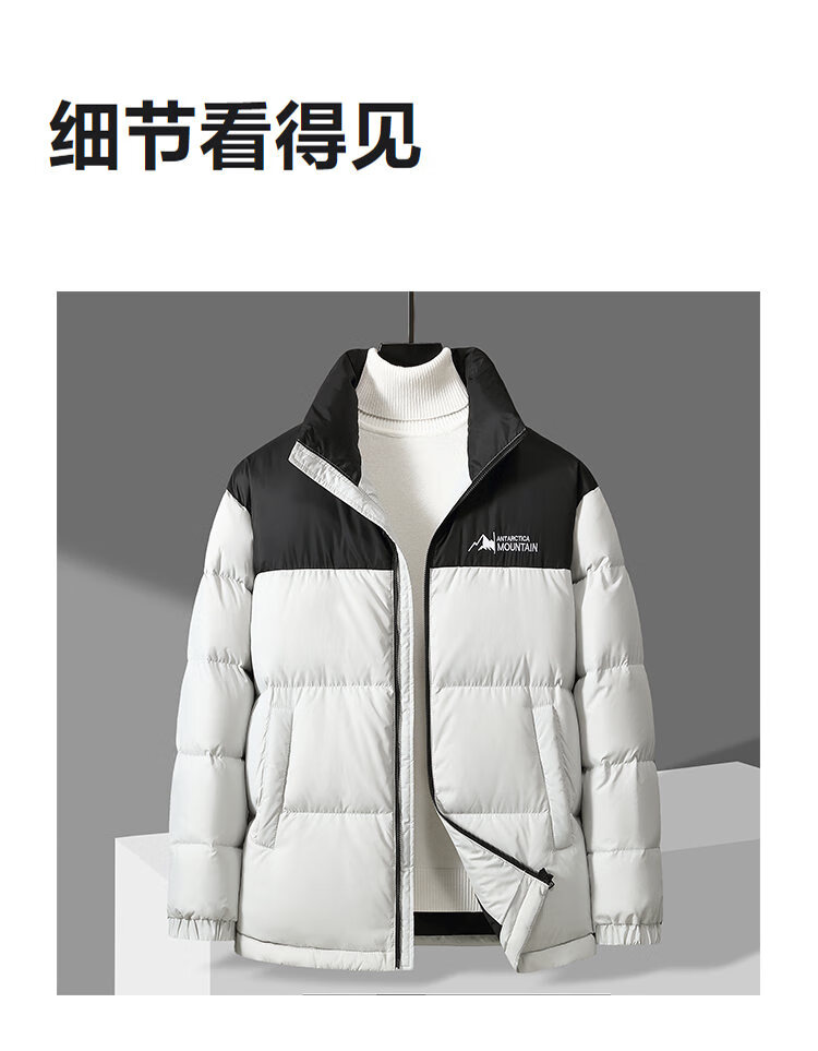 恒源祥轻薄拼色羽绒服男短款2026冬季新款立领面包服保暖休闲外套 黑色 S