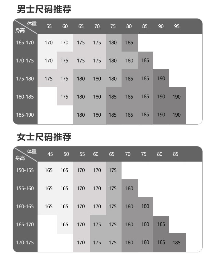 China (cm) 160-165/84-86 165-170 / 88-90 167-172 / 92-96 168-173 / 98-102 170-176 / 106-110