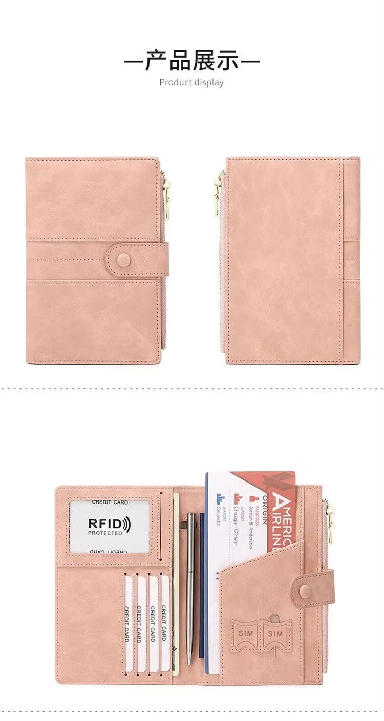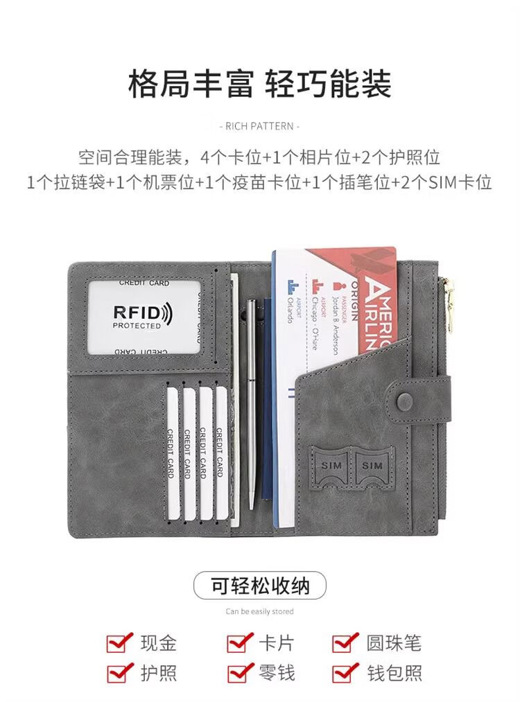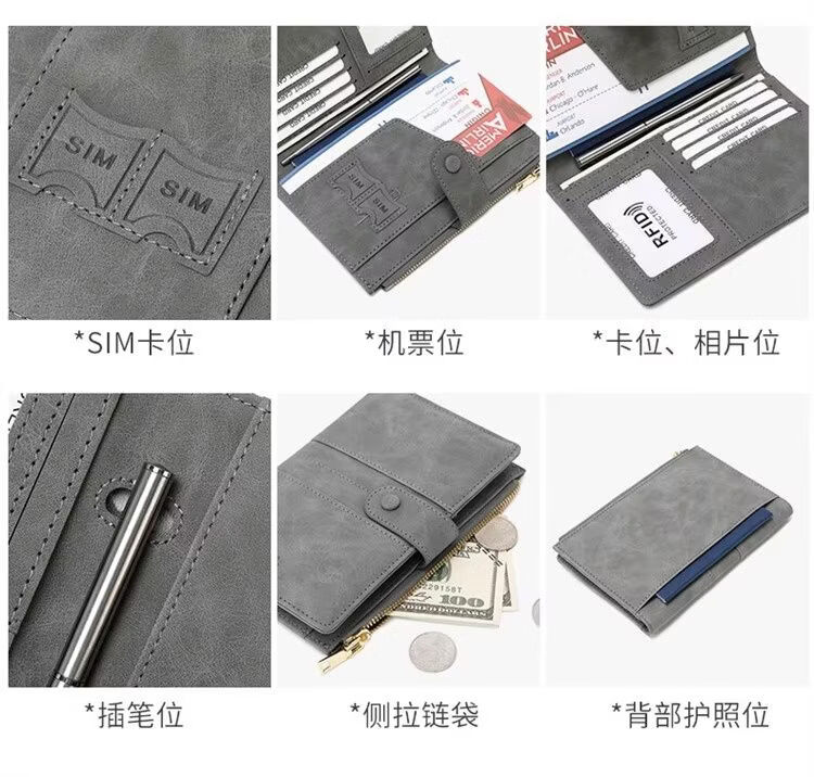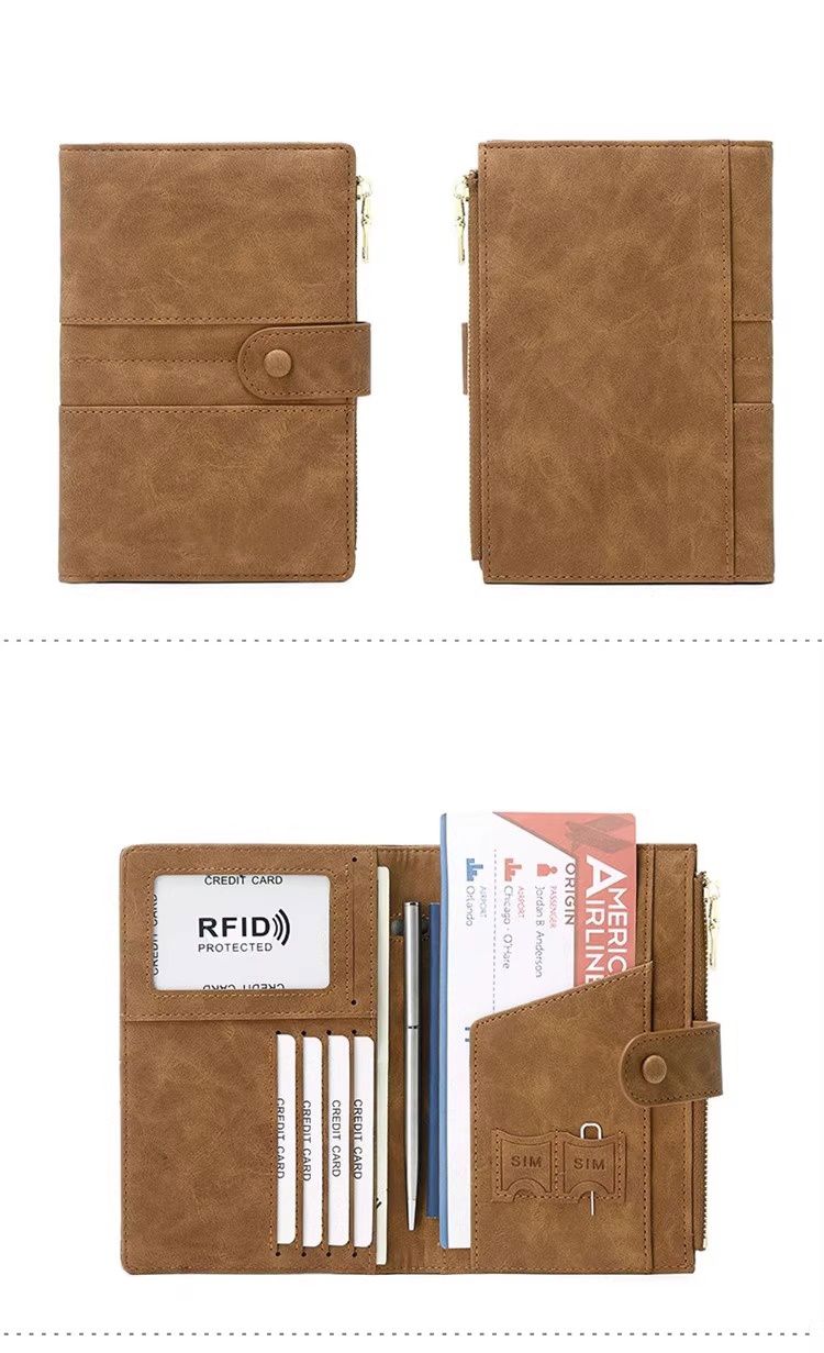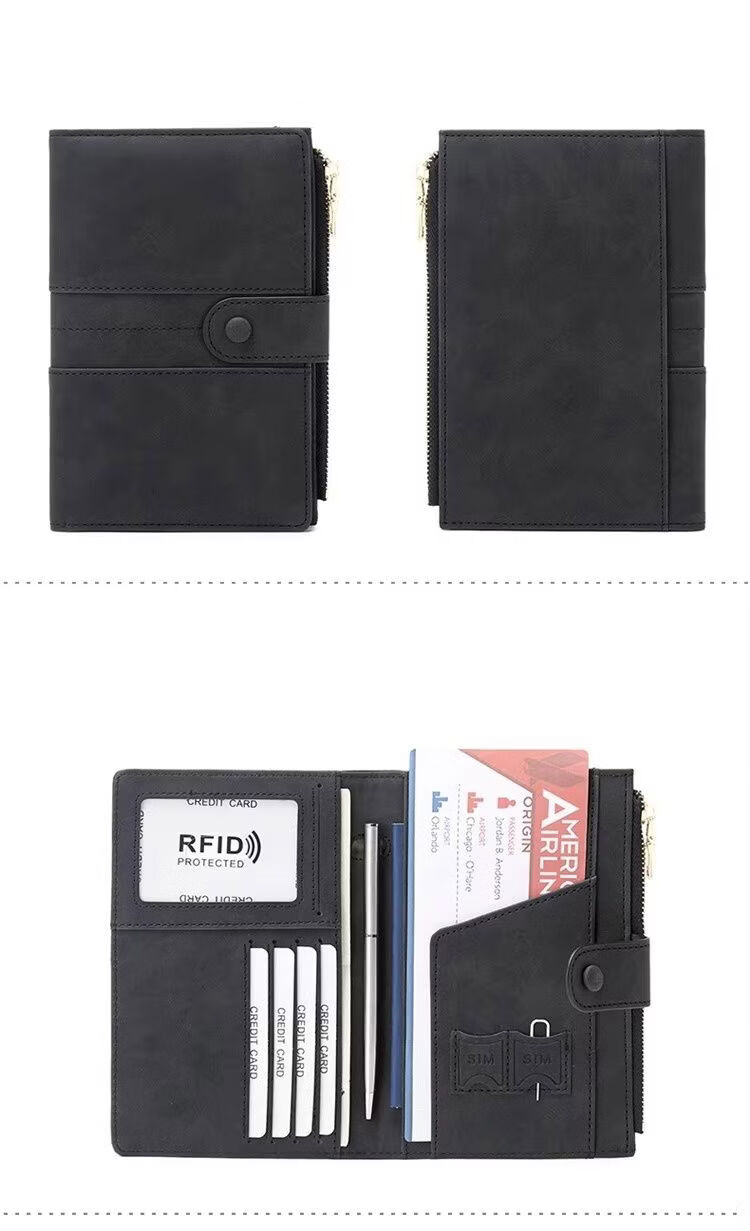 Yusenyi anti-theft brush wallet integrated passport holder document storage ticket protective cover overseas travel passport bag matte leather black