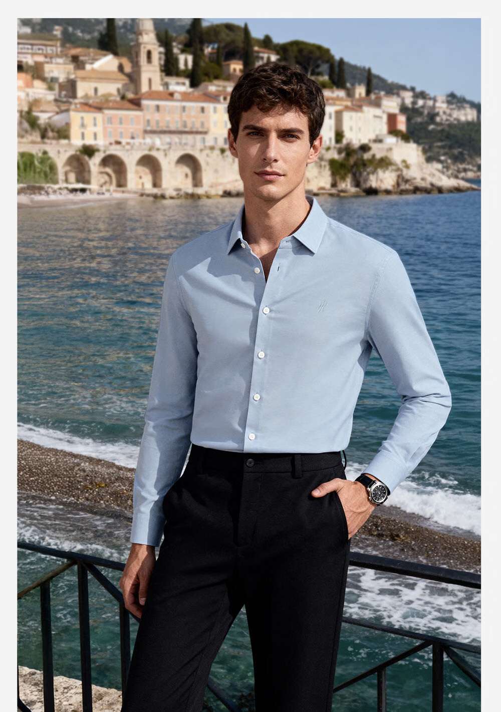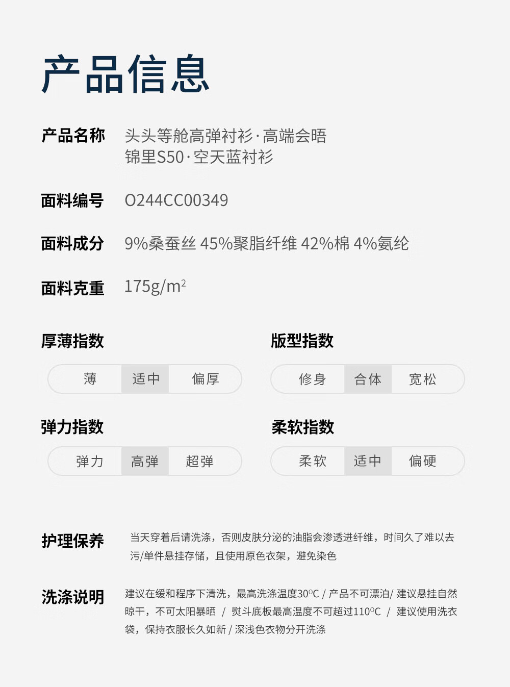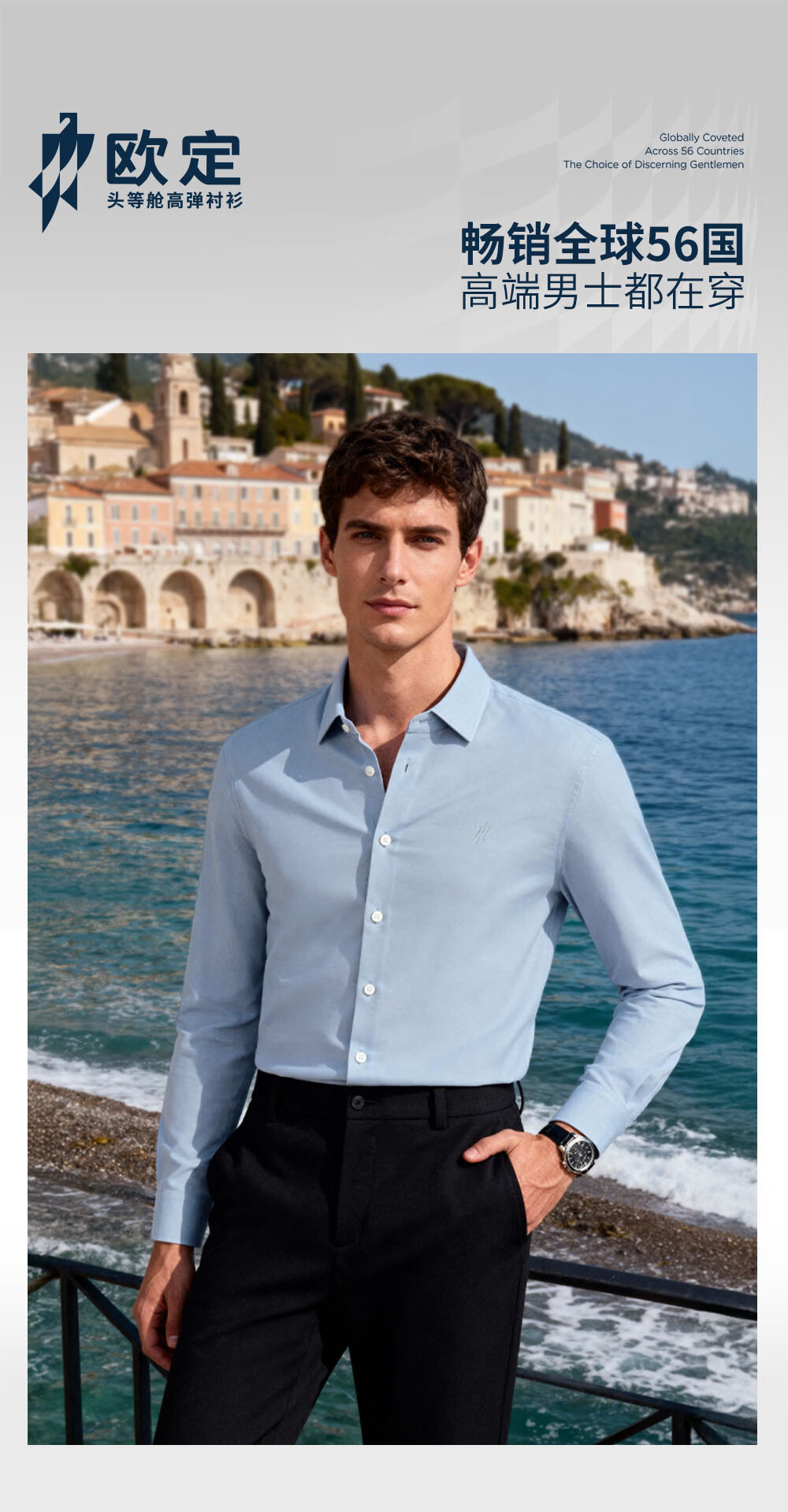 Ouding first class mulberry silk sky blue high elastic long-sleeved shirt men's spring business casual no-iron easy care comfortable shirt blue sky blue 56 customization, direct payment, customer service contact