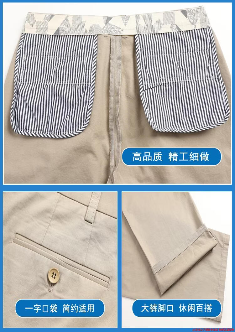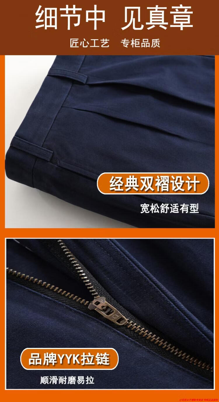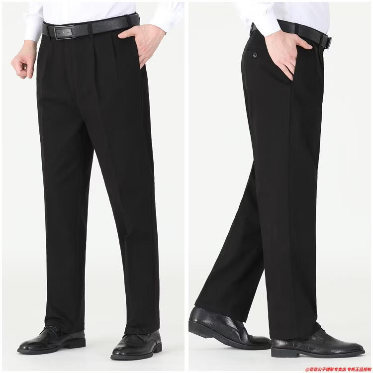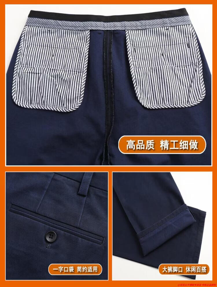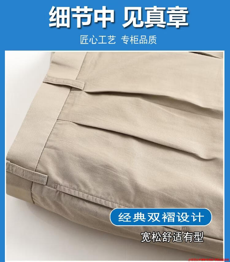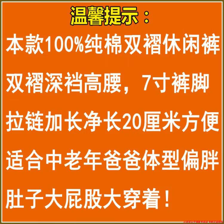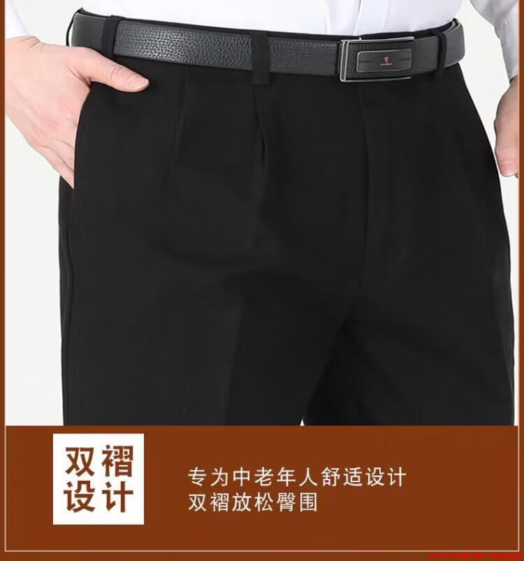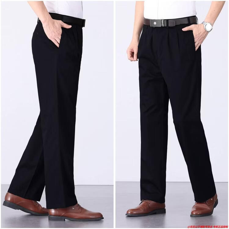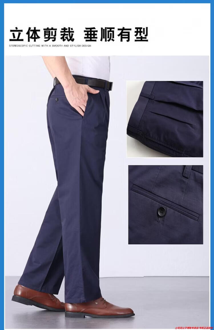 Playboy middle-aged and elderly pure cotton casual pants men's autumn and winter thick no-iron high-waisted men's pants double pleated deep crotch large size long pants thick/light khaki double pleated large trouser legs 100% cotton / 46 3 feet 4 waist 46