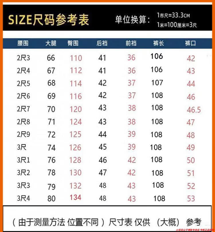 Outseam (cm) 99 cm 101.5 cm 104 cm 106.5 cm 109 cm