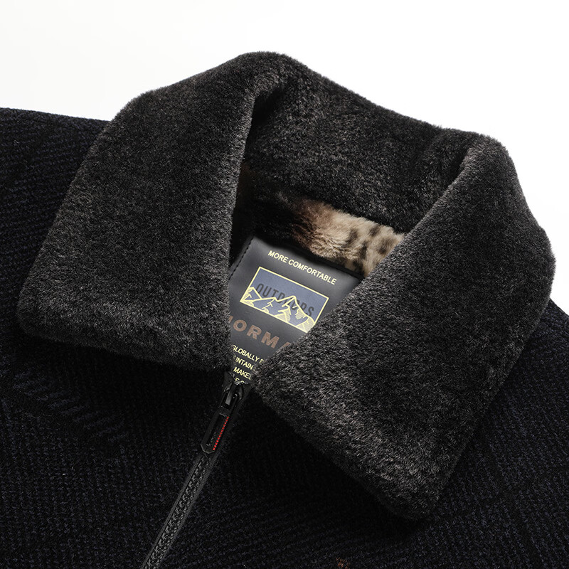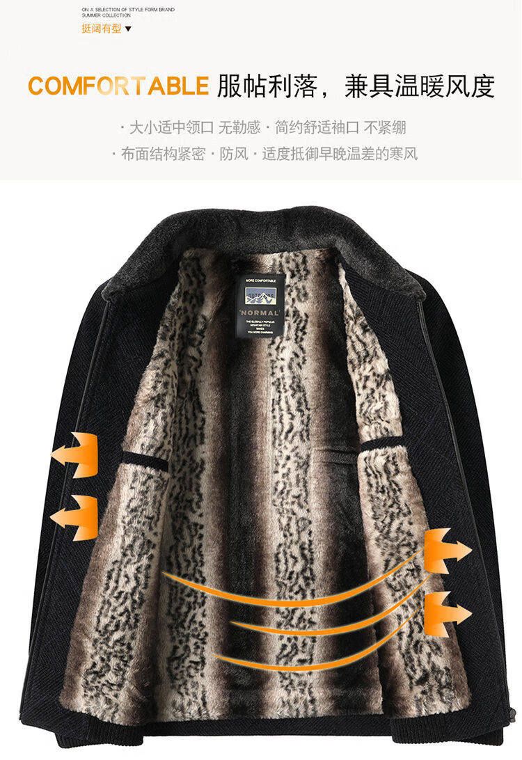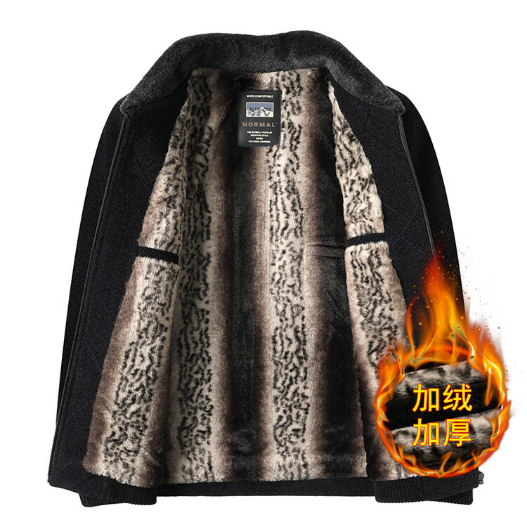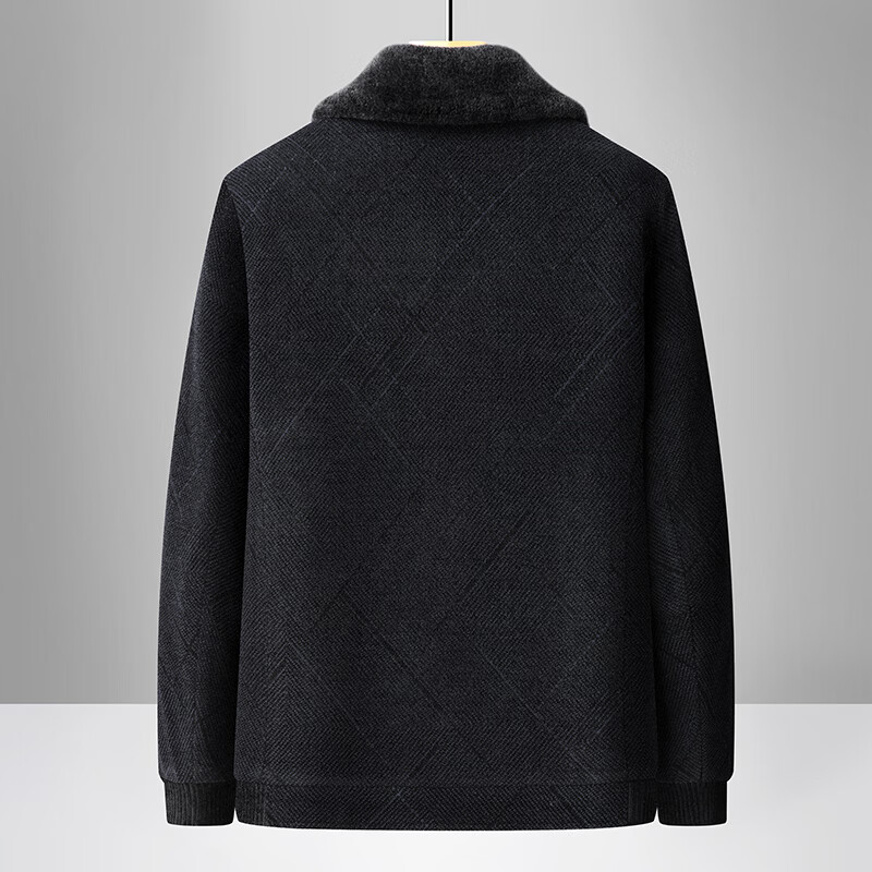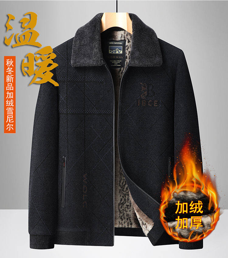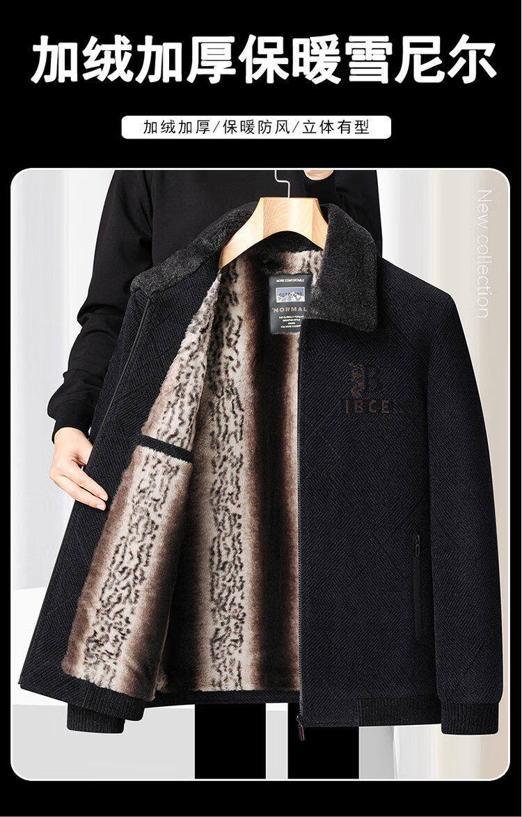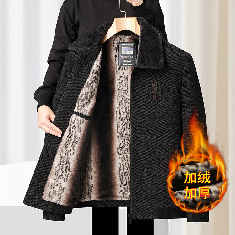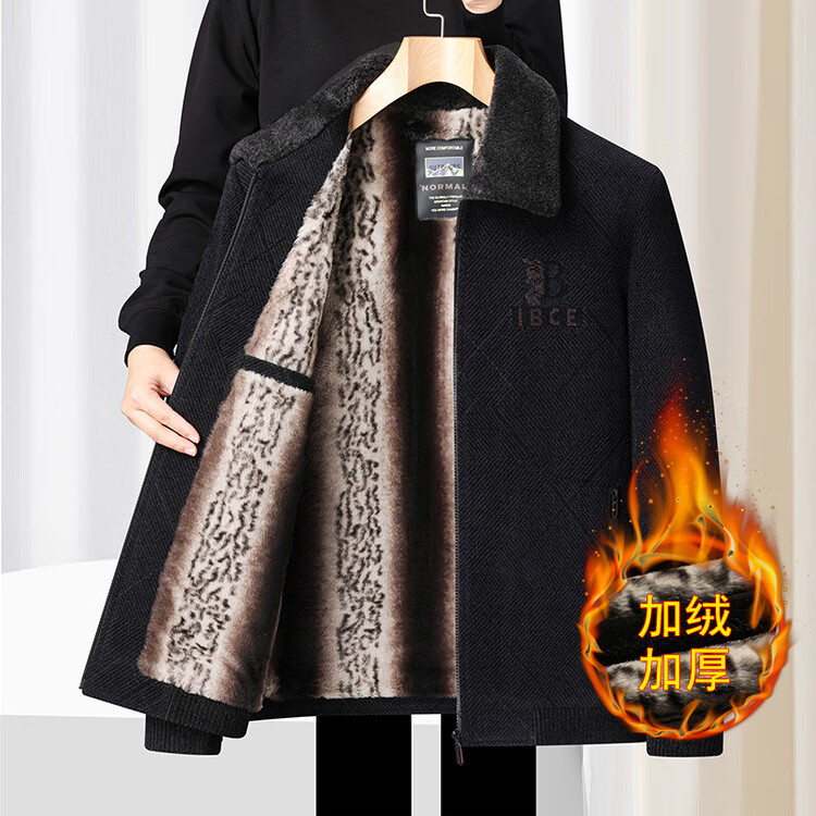 罗蒙(ROMON)爸爸装加绒加厚外套冬季新款男士毛呢保暖夹克中老年人雪尼尔棉衣 黑深灰 L