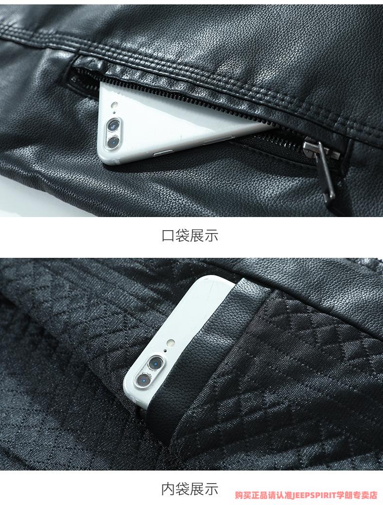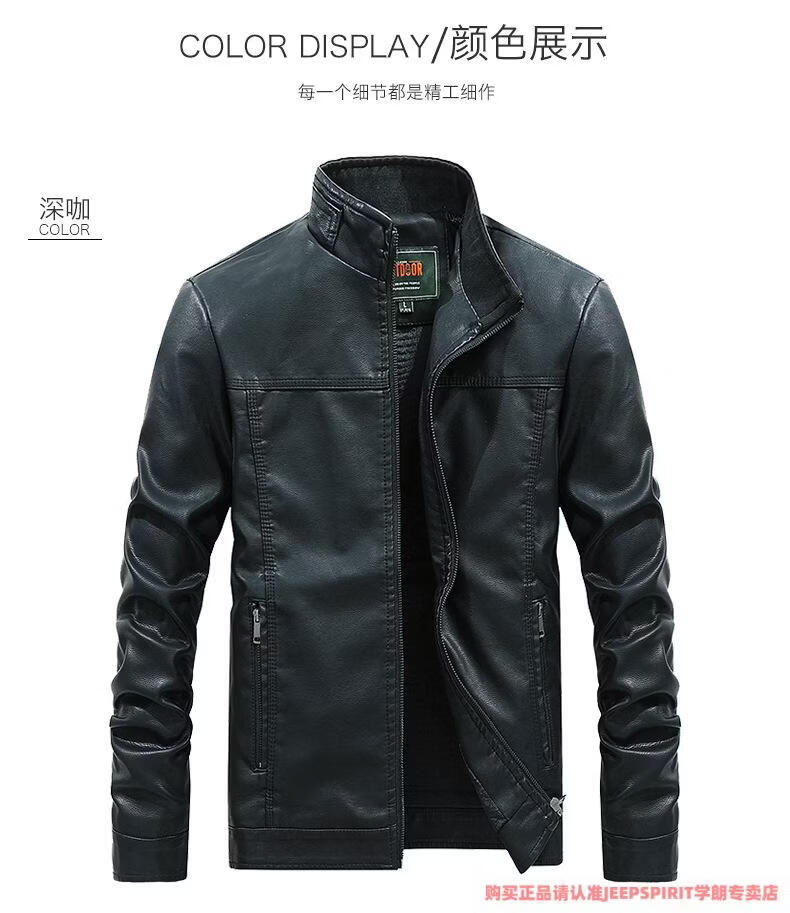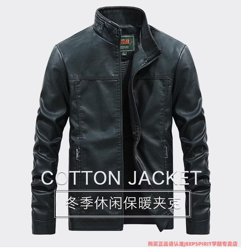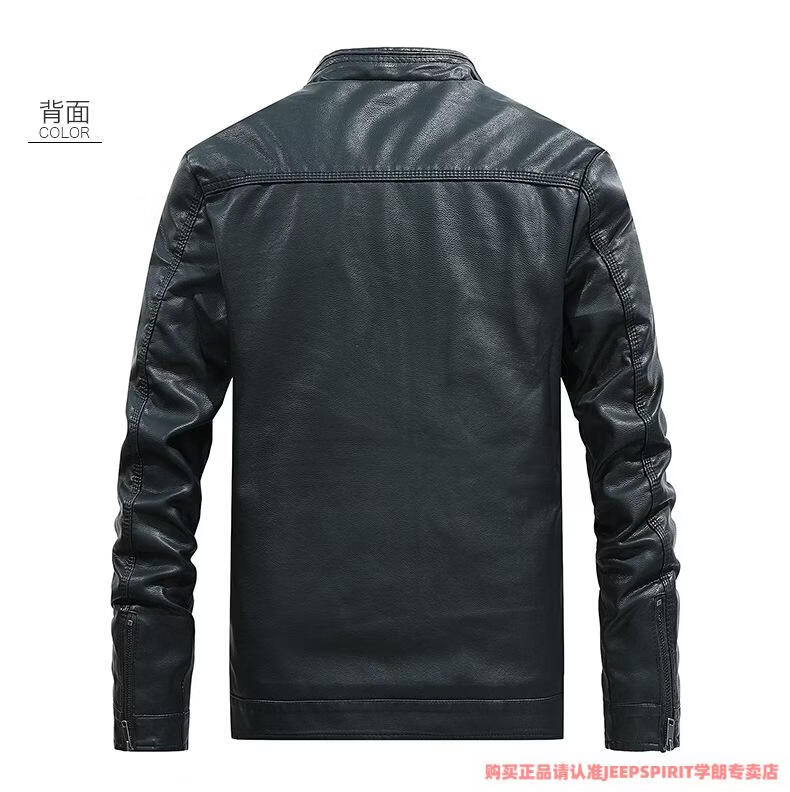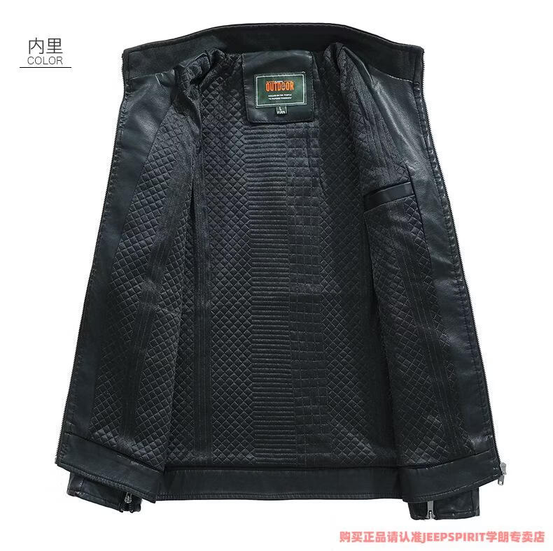 JEEP SPIRIT men's leather jacket trendy Korean version 2025 autumn and winter new pu leather jacket thickened handsome casual loose motorcycle suit black M