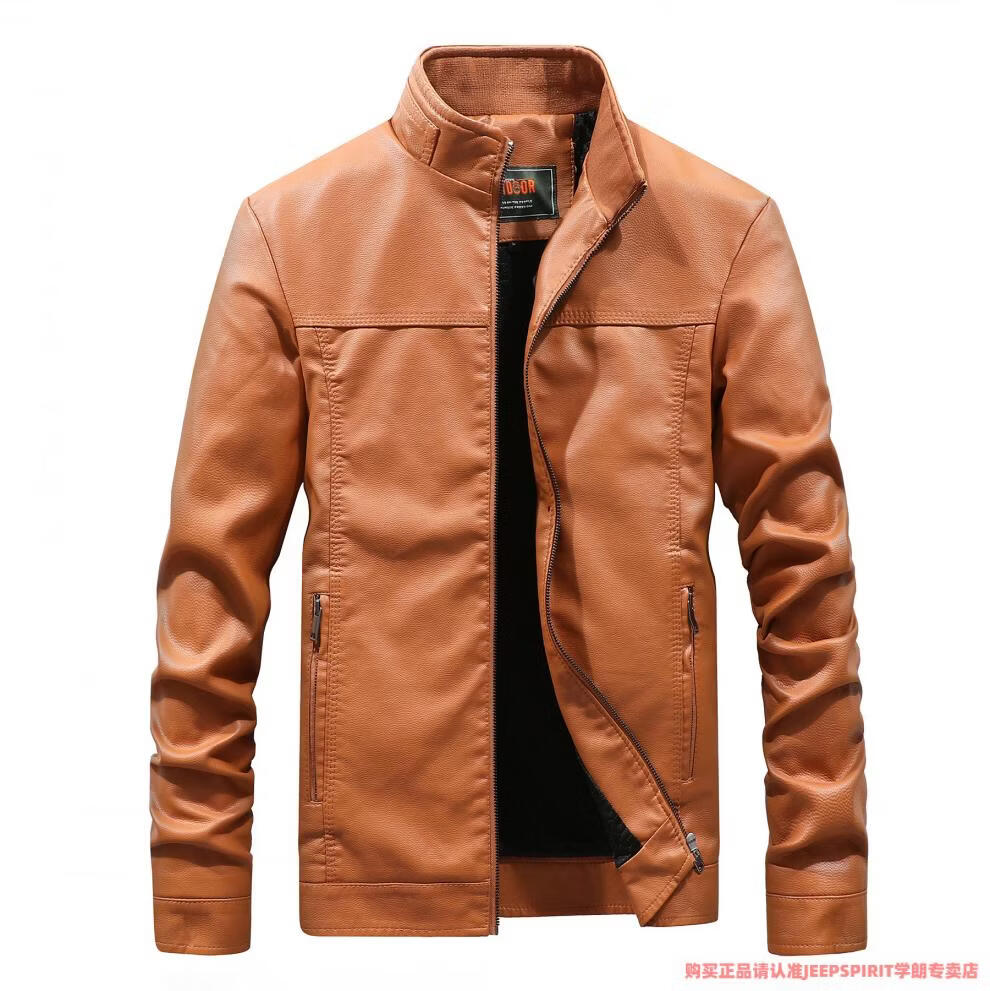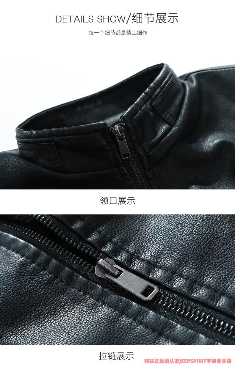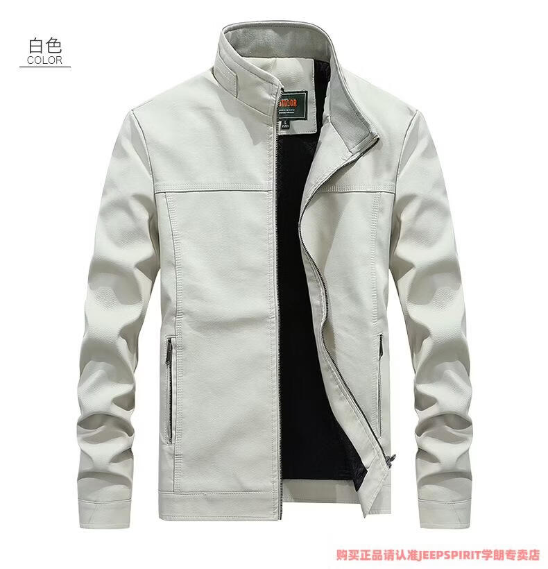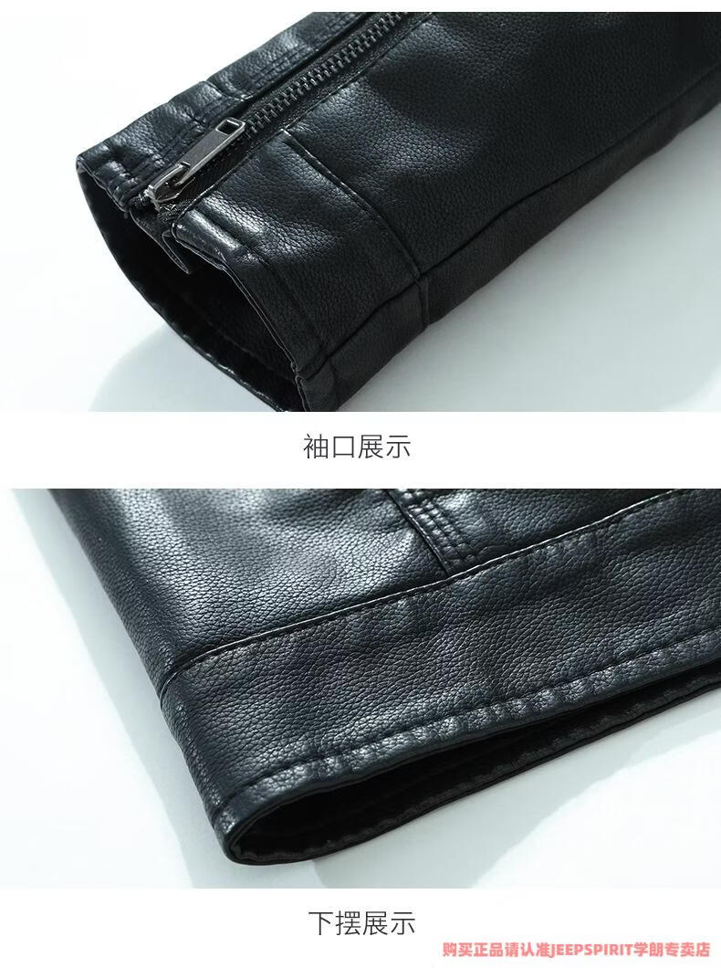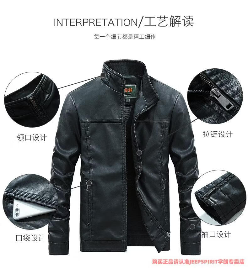 JEEP SPIRIT men's leather jacket trendy Korean version 2025 autumn and winter new pu leather jacket thickened handsome casual loose motorcycle suit black M