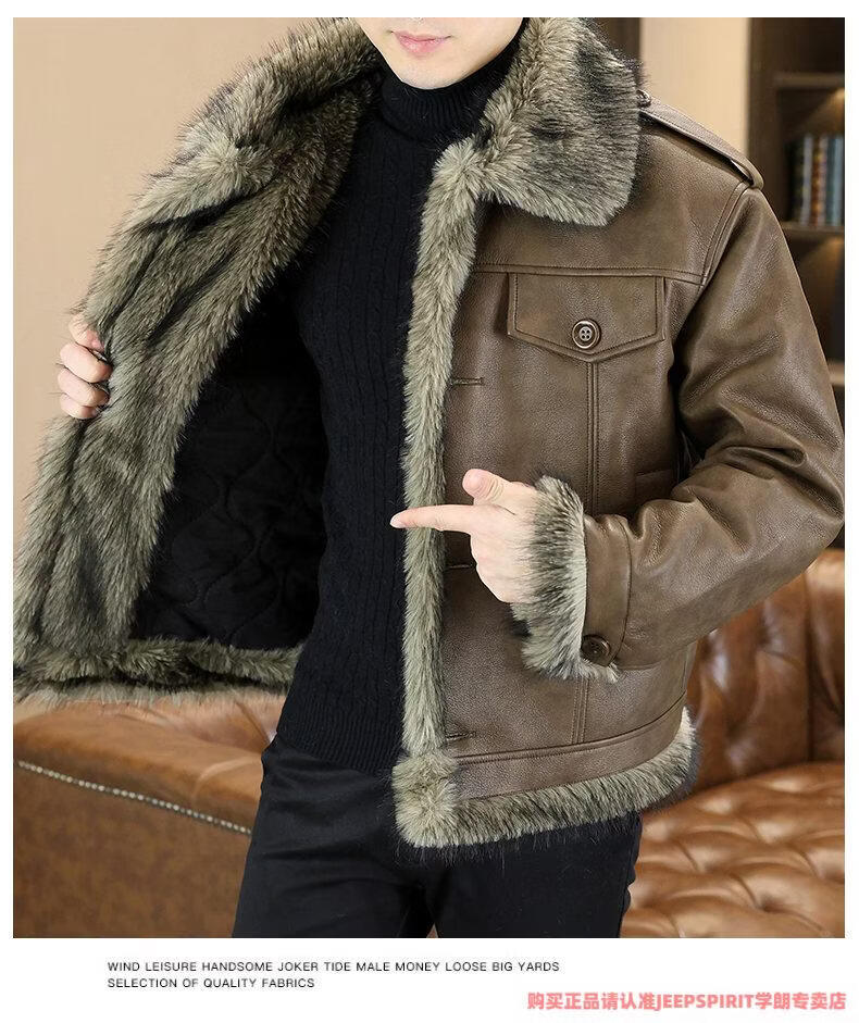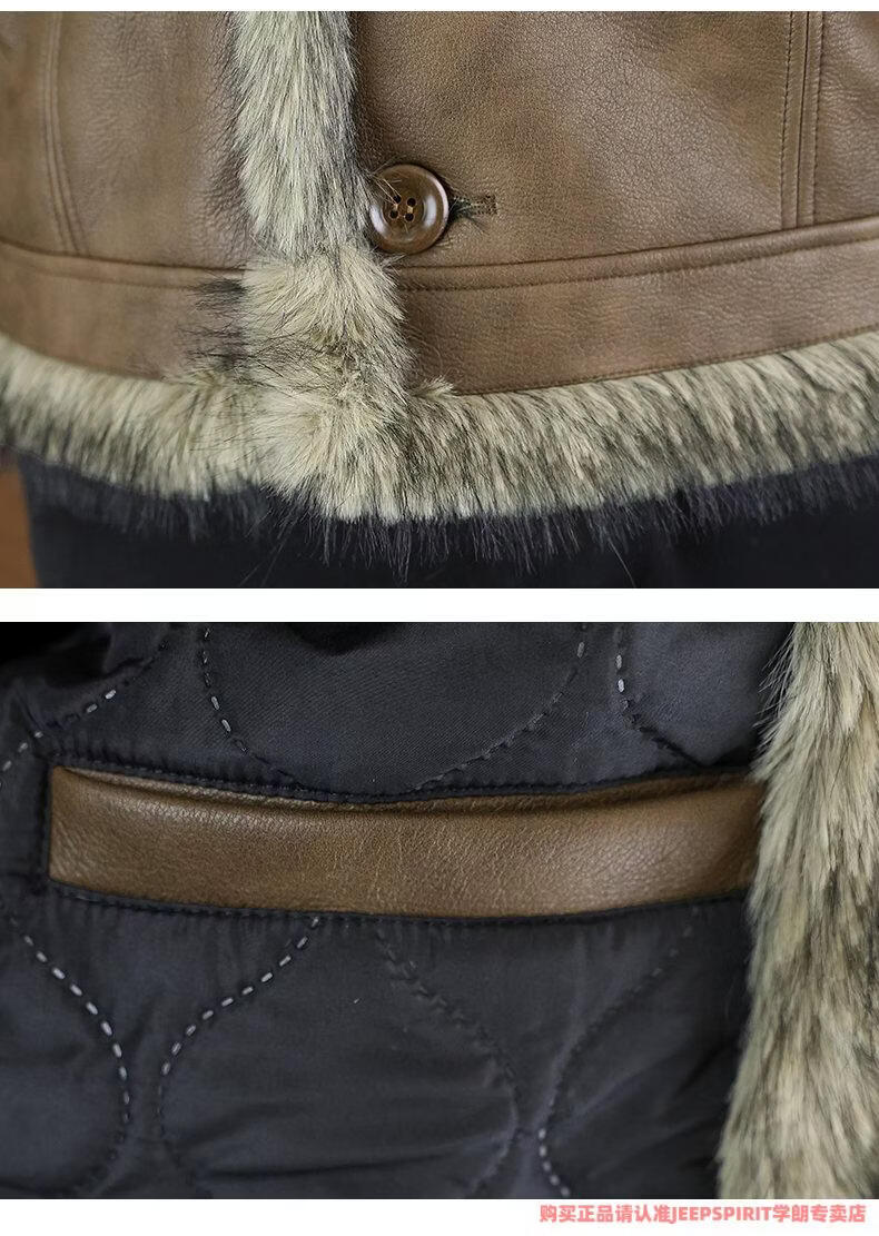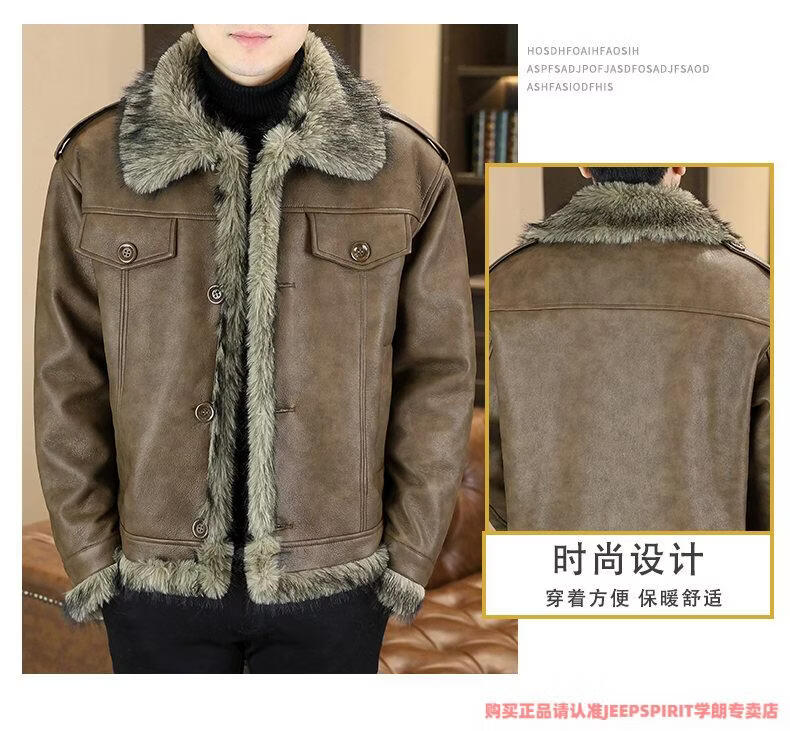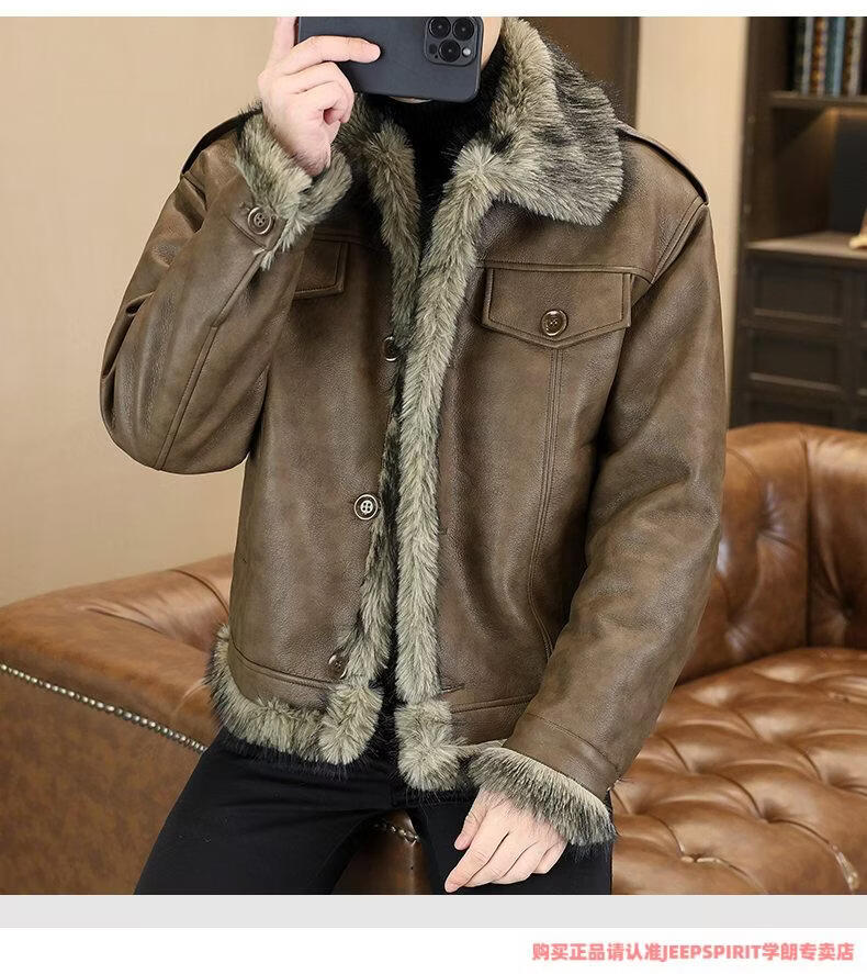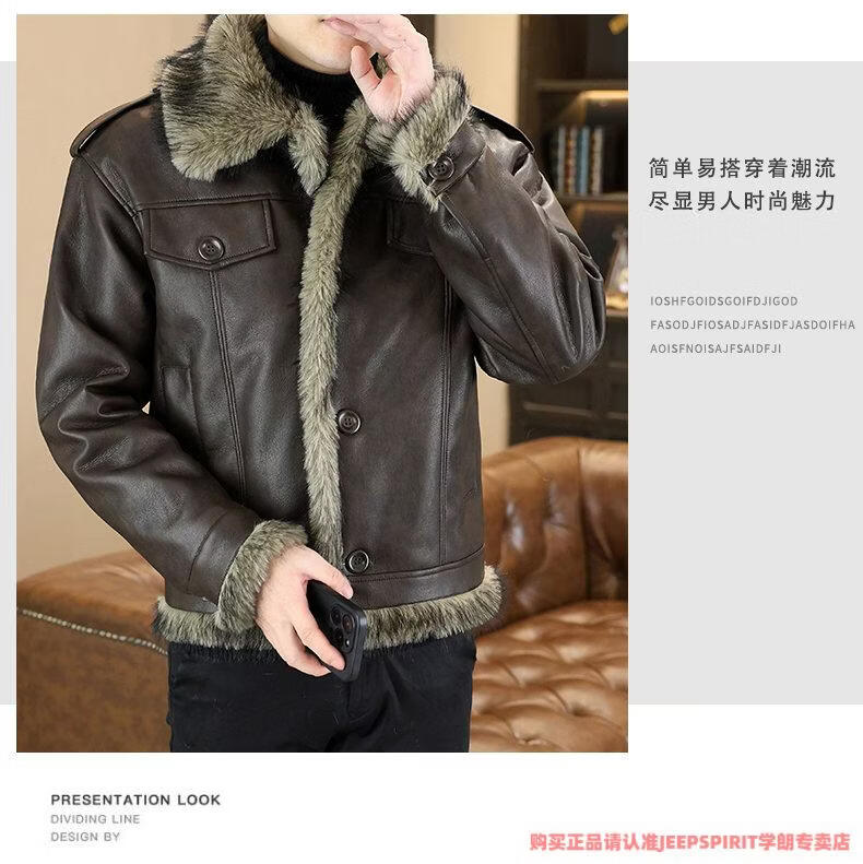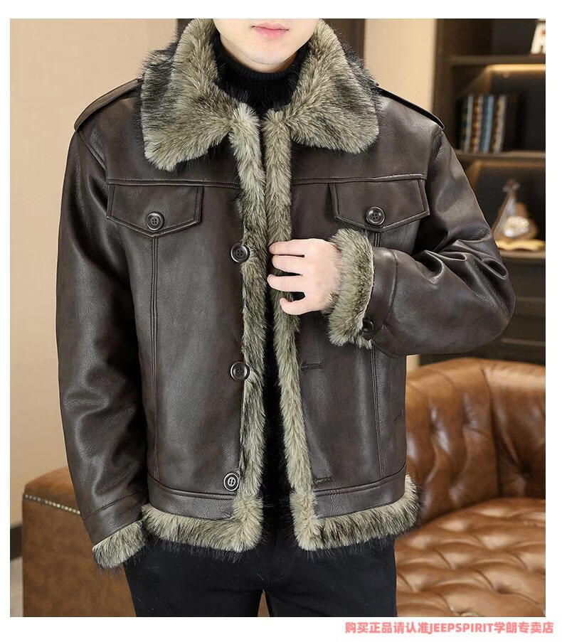 JEEP SPIRIT winter high-quality velvet thickened leather jacket fur one-piece American retro large size fashion casual new 5606 brown M 90105