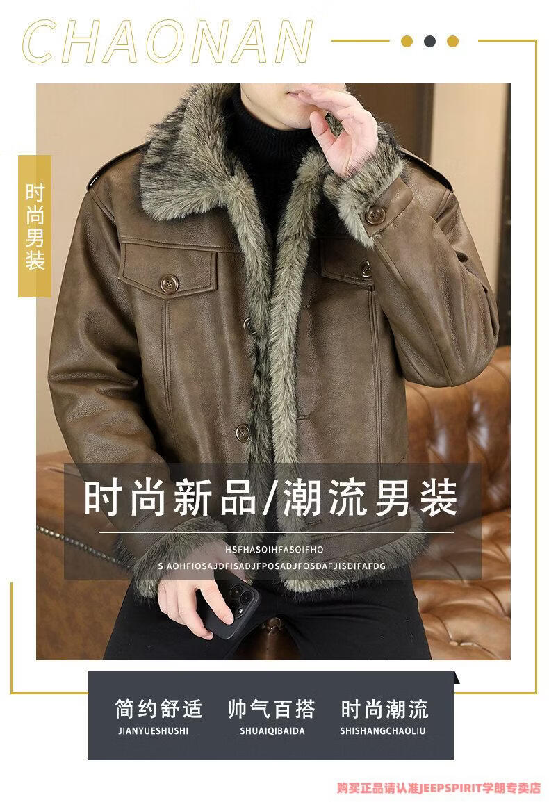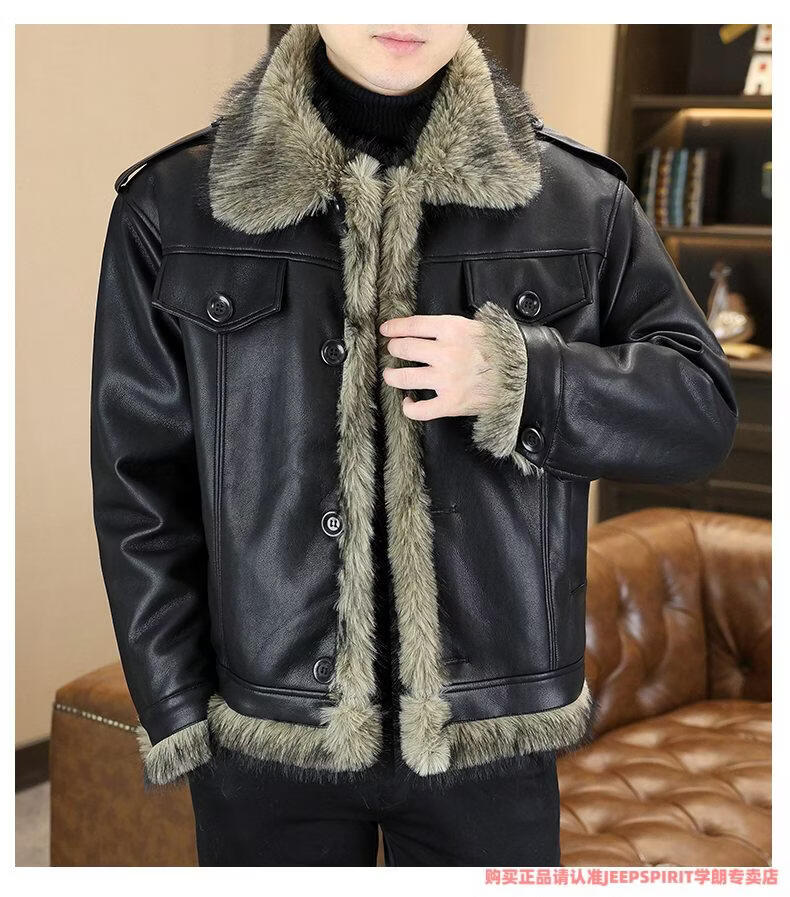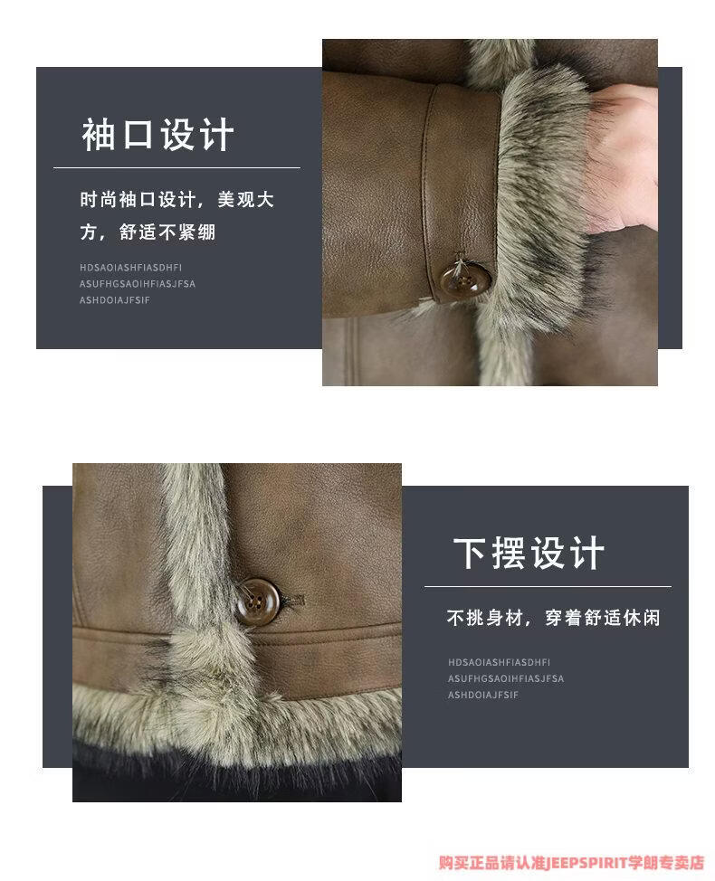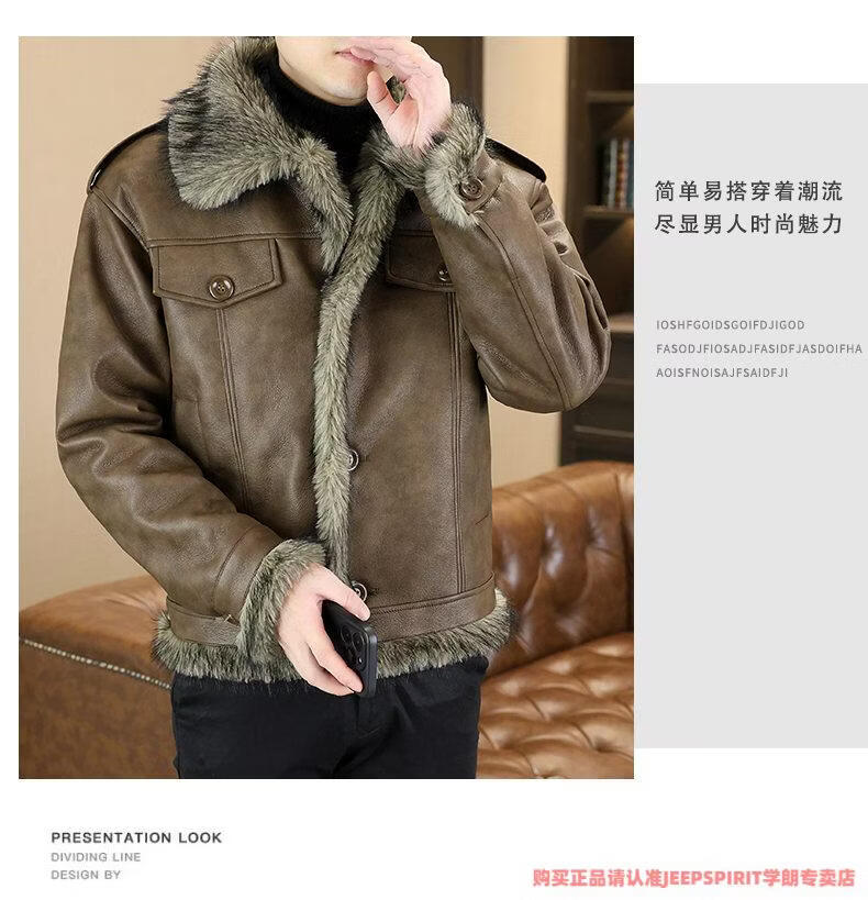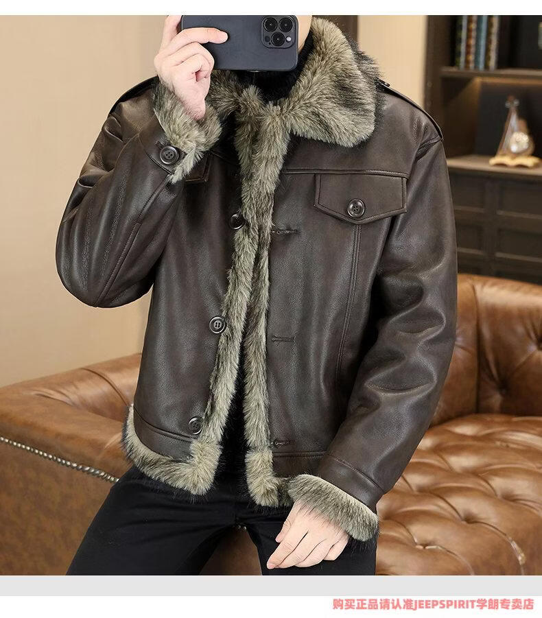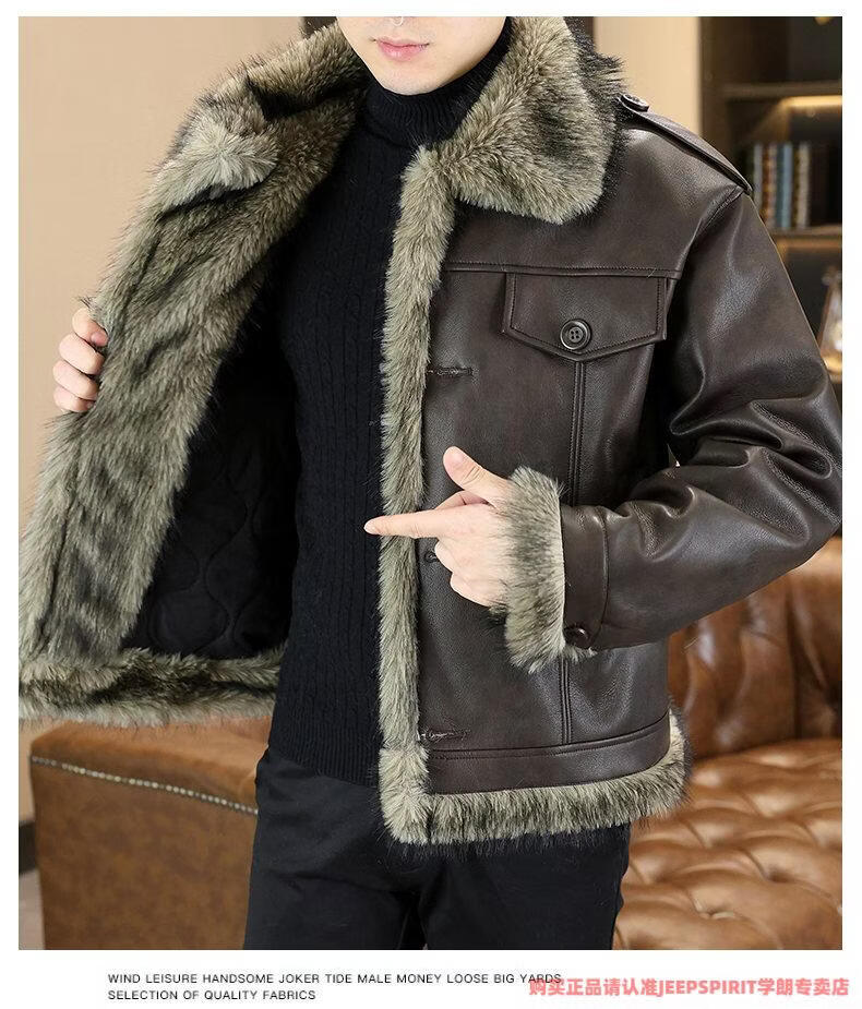JEEP SPIRIT winter high-quality velvet thickened leather jacket fur one-piece American retro large size fashion casual new 5606 brown M 90105