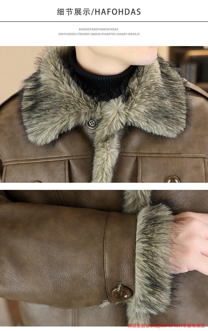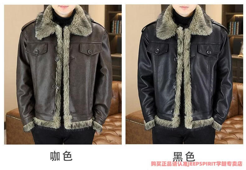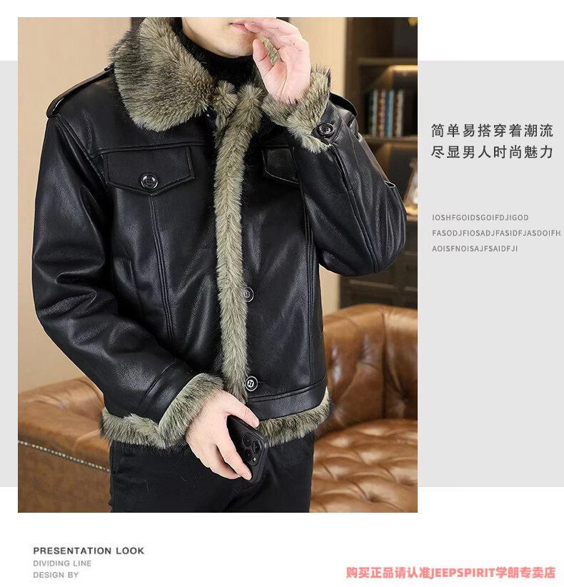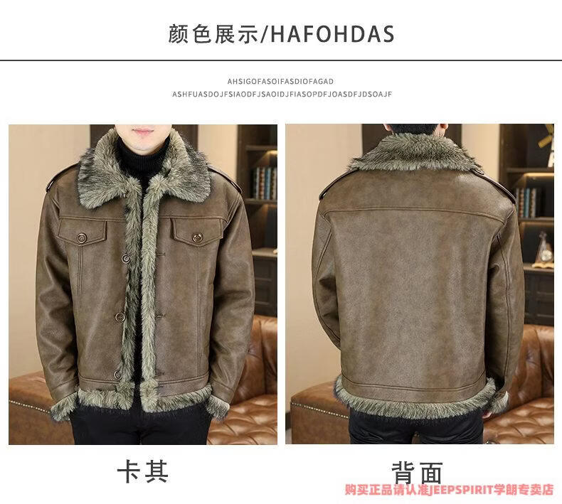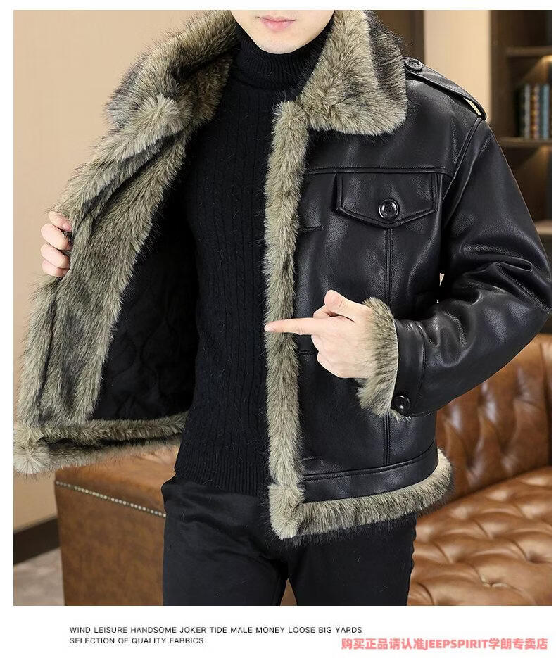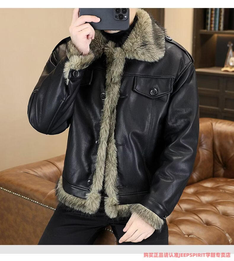 JEEP SPIRIT winter high-quality velvet thickened leather jacket fur one-piece American retro large size fashion casual new 5606 brown M 90105