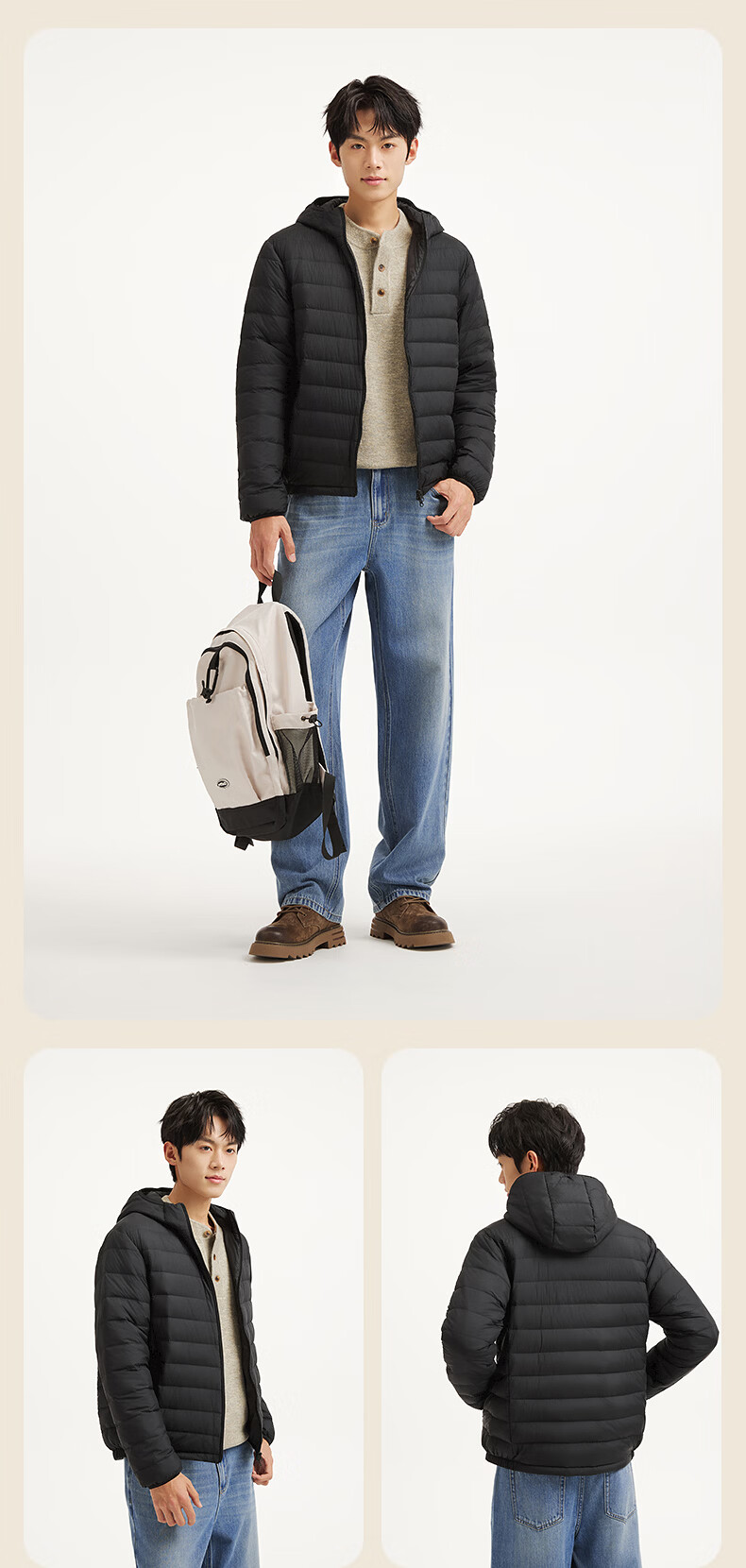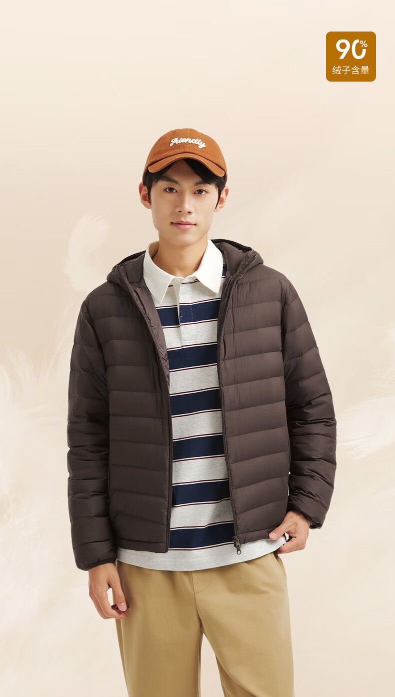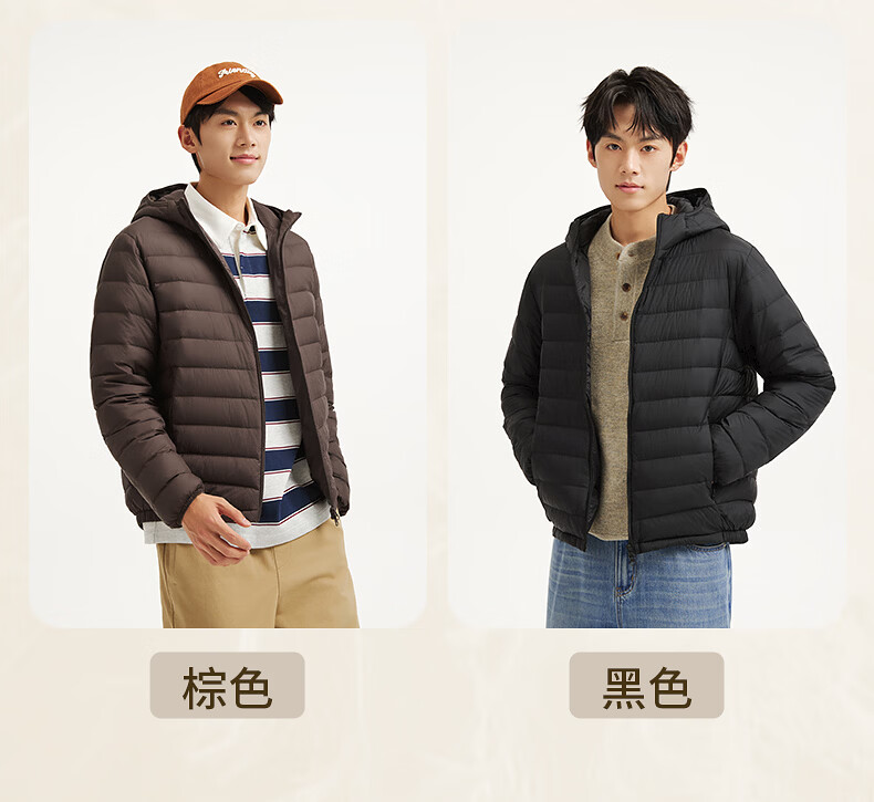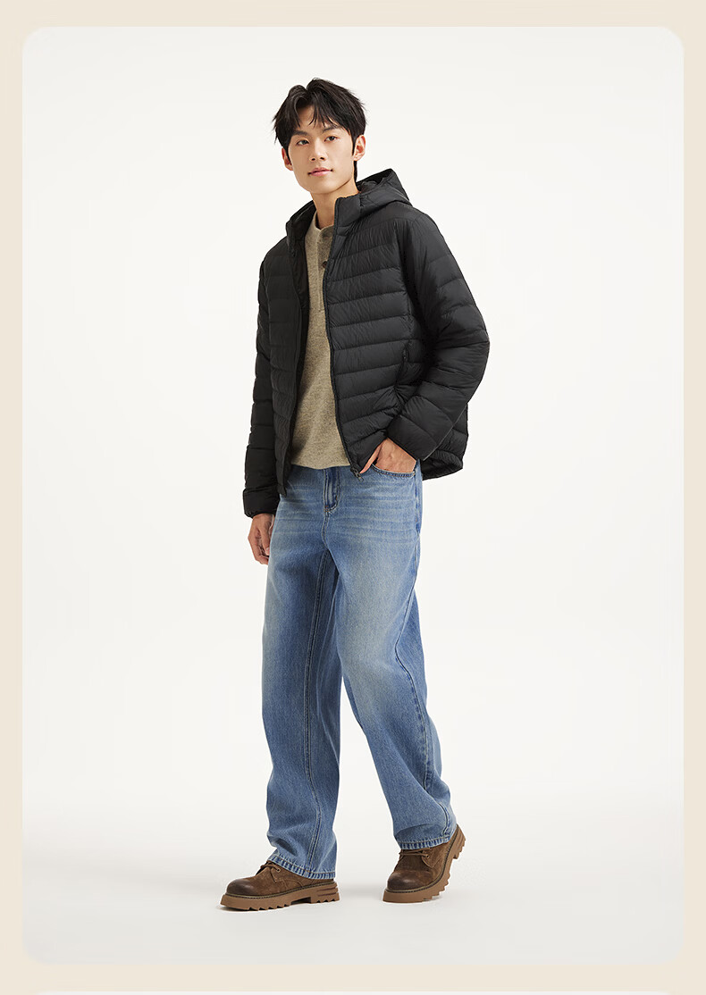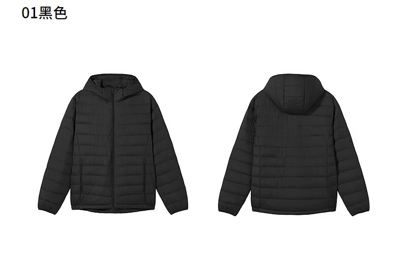 热风(Hotwind)【商场同款】男士排骨羽绒服轻薄冬季新款户外连帽纯色内胆羽绒服 01黑色 L