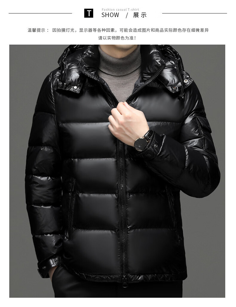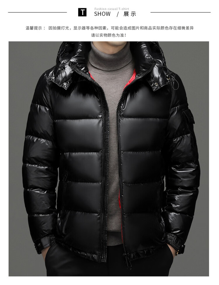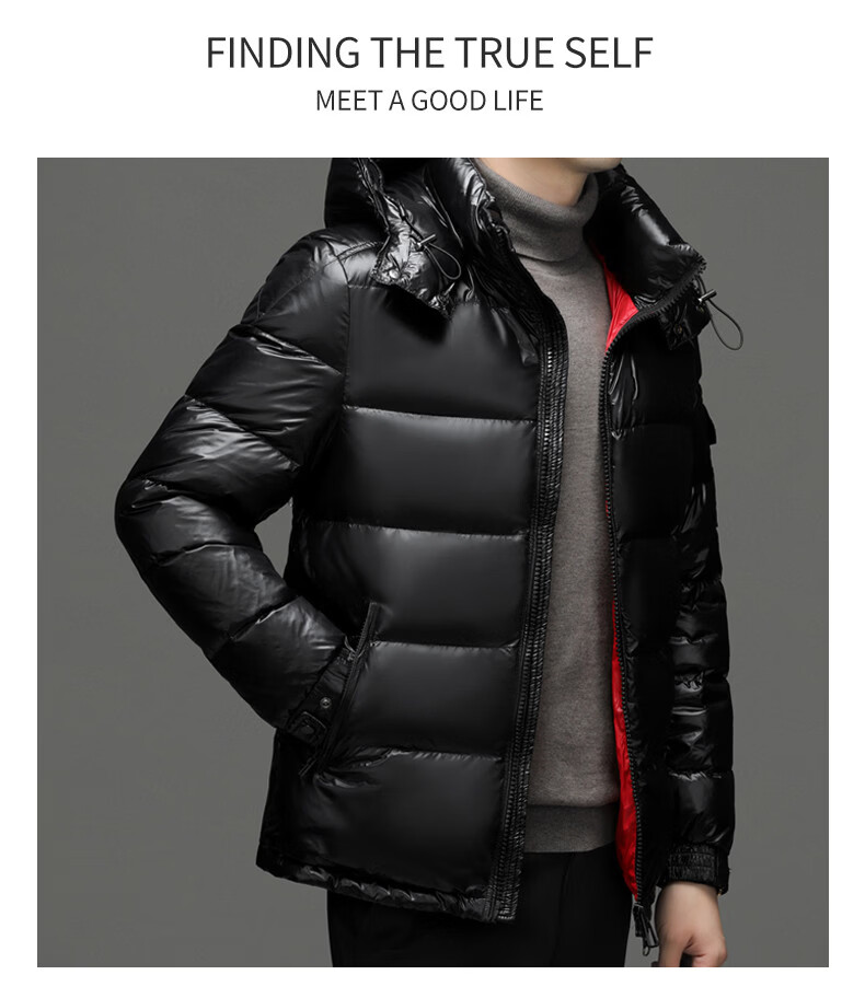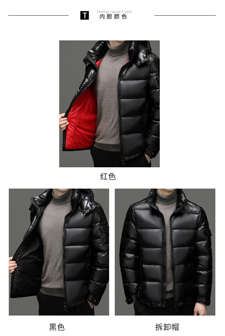 ROMON Зимний мужской пуховик Короткий гусиный пуховик Мужская съемная шапка Защита от холода Толстая теплая модная повседневная куртка Красная 2XL