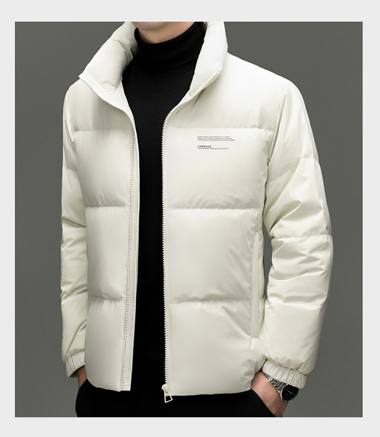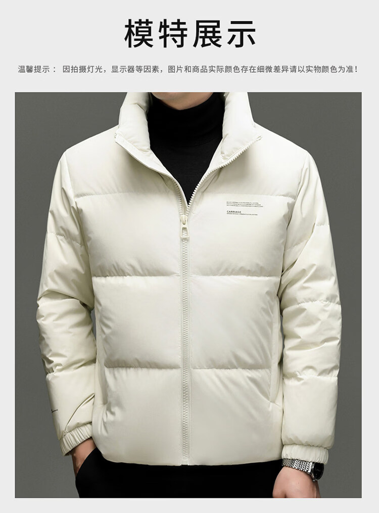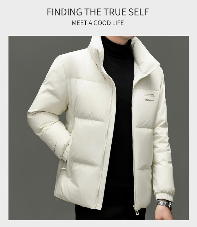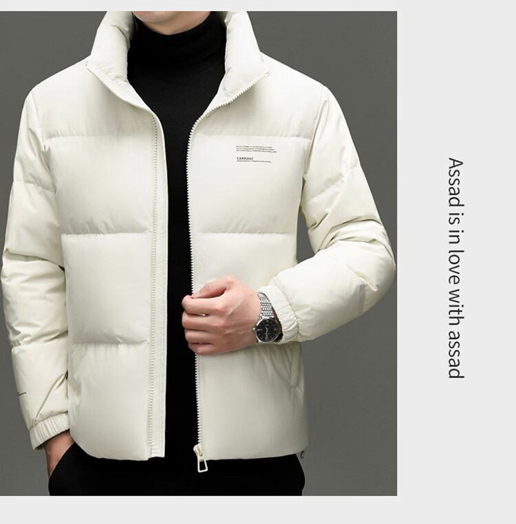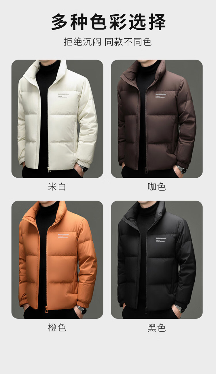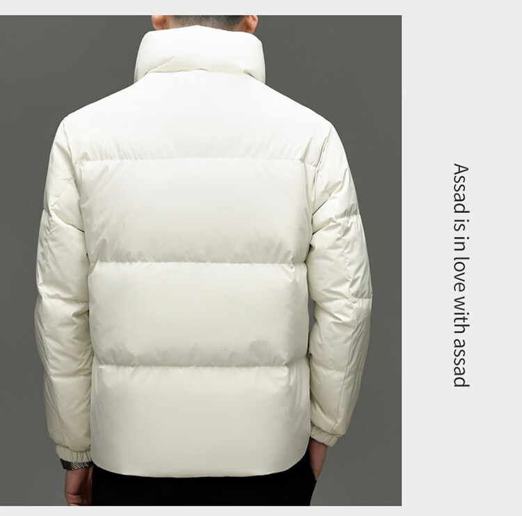 Hengyuanxiang Light Luxury 2026 Winter New Men's Down Jacket Thickened Warm White Duck Down Bread Jacket Stand Collar Short Coldproof Jacket 8986-White M Recommended 90-120 Jin Jin equals 0.5 kg to wear