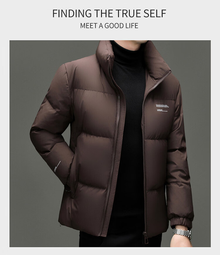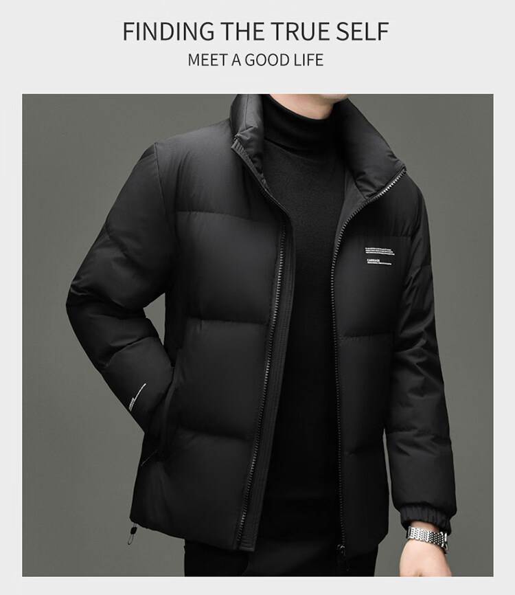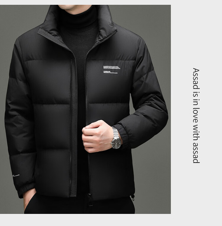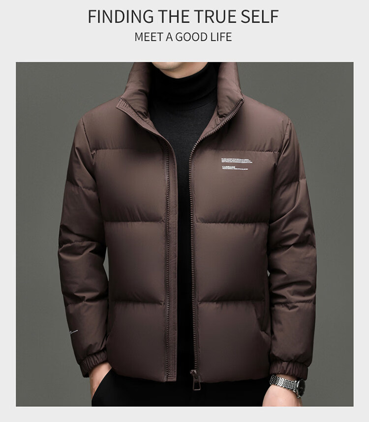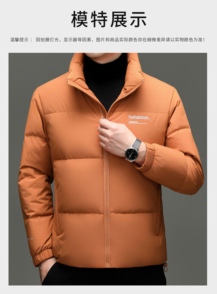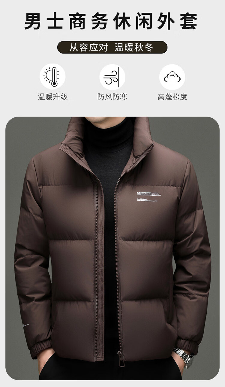 Hengyuanxiang Light Luxury 2026 Winter New Men's Down Jacket Thickened Warm White Duck Down Bread Jacket Stand Collar Short Coldproof Jacket 8986-White M Recommended 90-120 Jin Jin equals 0.5 kg to wear