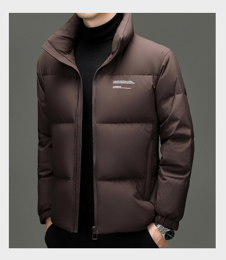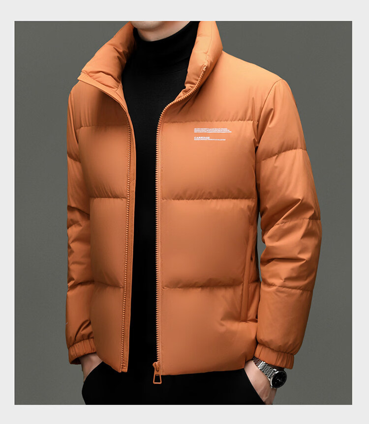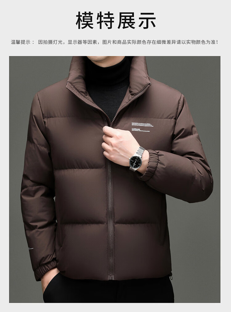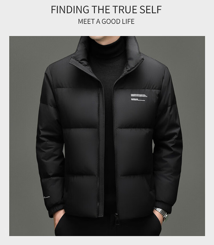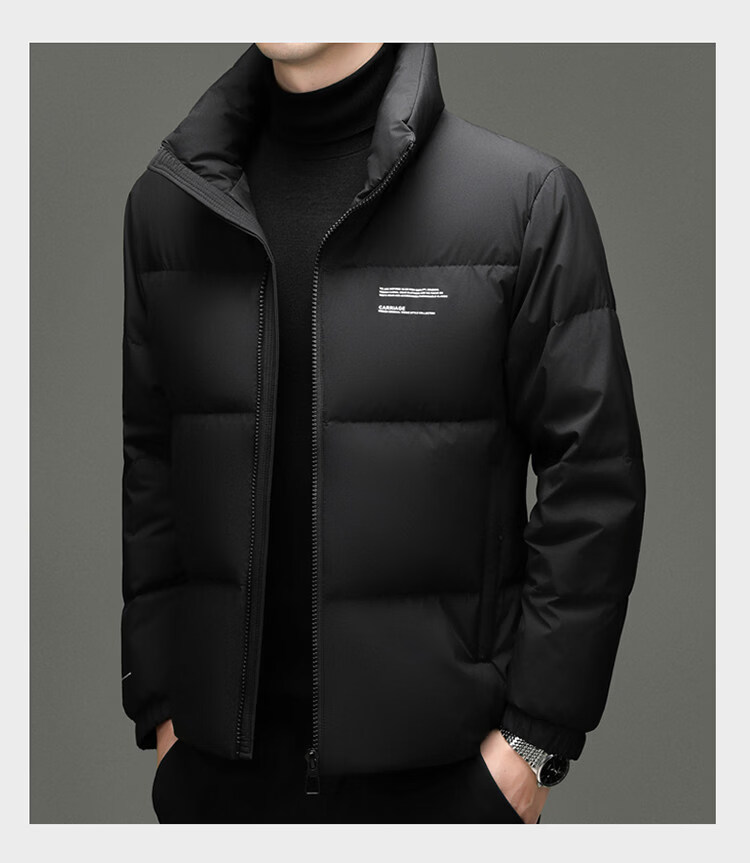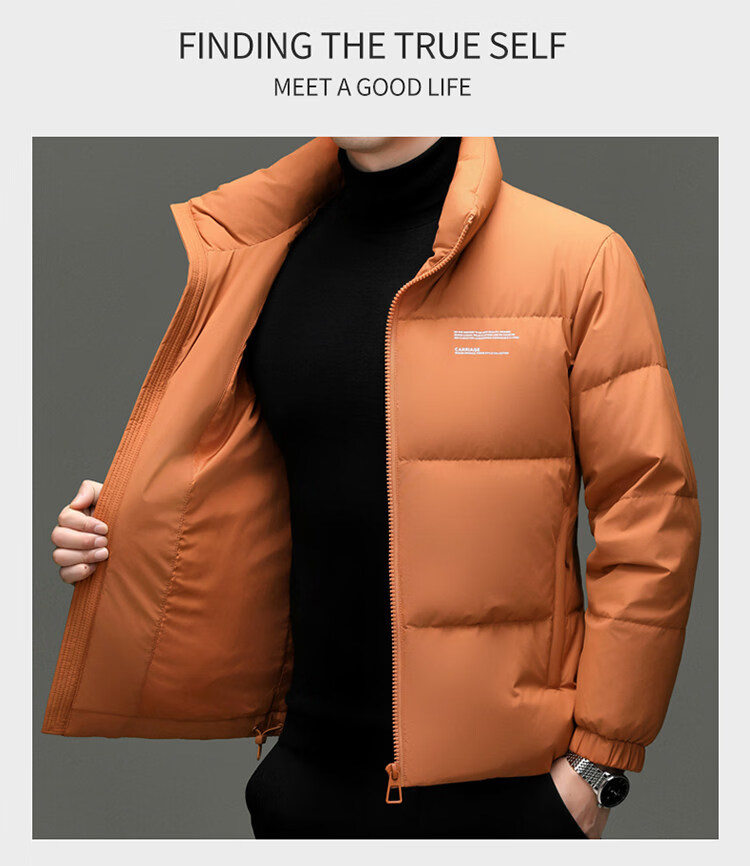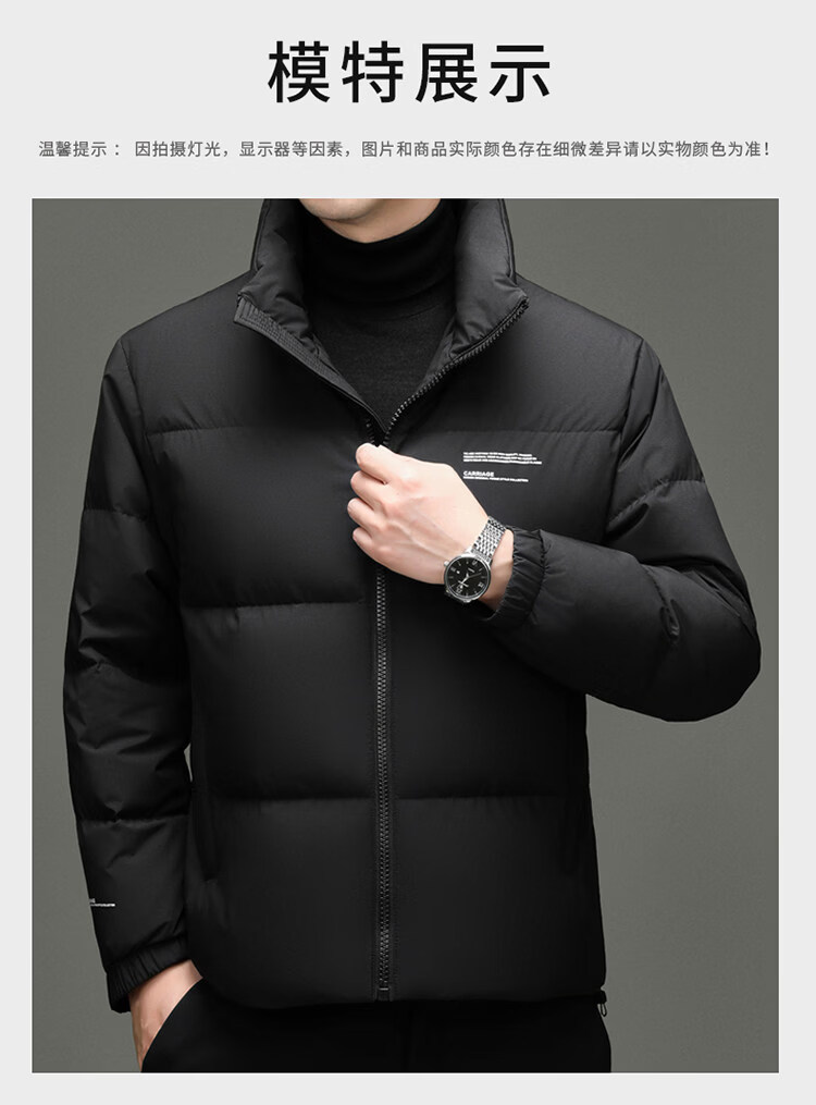 Hengyuanxiang Light Luxury 2026 Winter New Men's Down Jacket Thickened Warm White Duck Down Bread Jacket Stand Collar Short Coldproof Jacket 8986-White M Recommended 90-120 Jin Jin equals 0.5 kg to wear