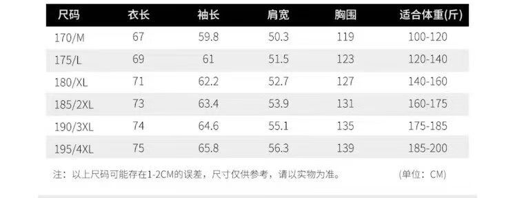 China (cm) 165 / 88-90 170 / 96-98 175 / 108-110 180 / 118-122 185 / 126-130