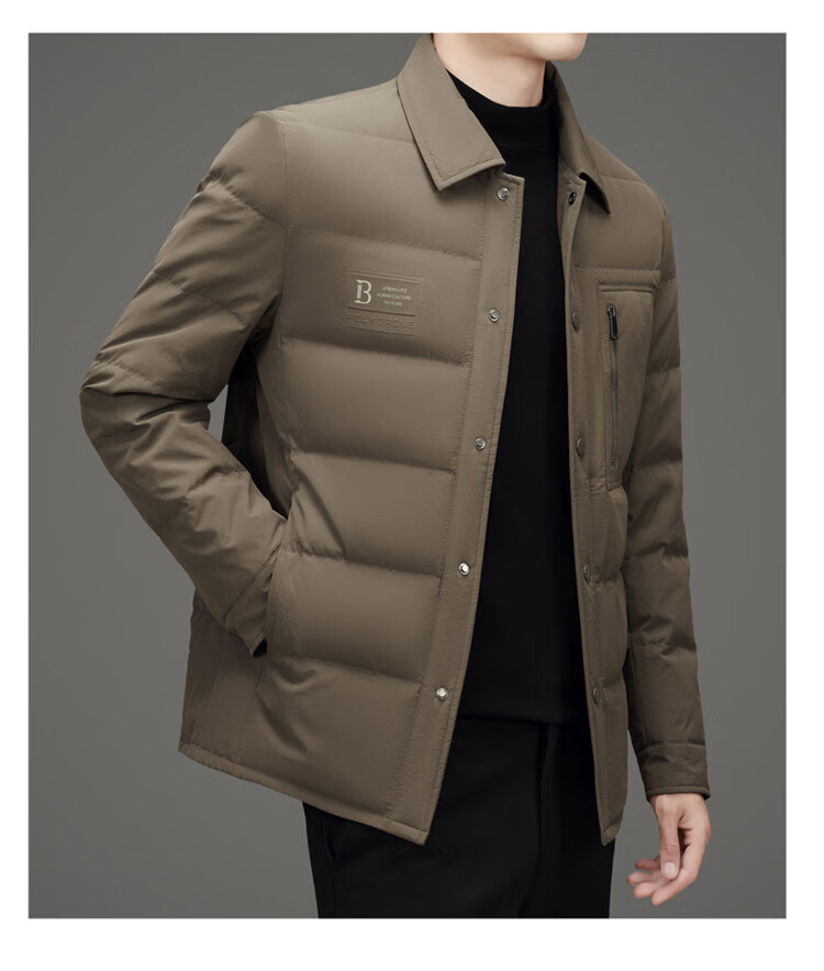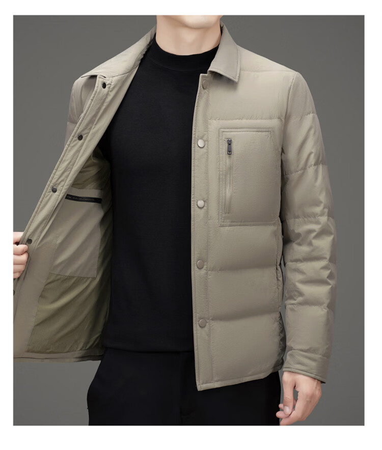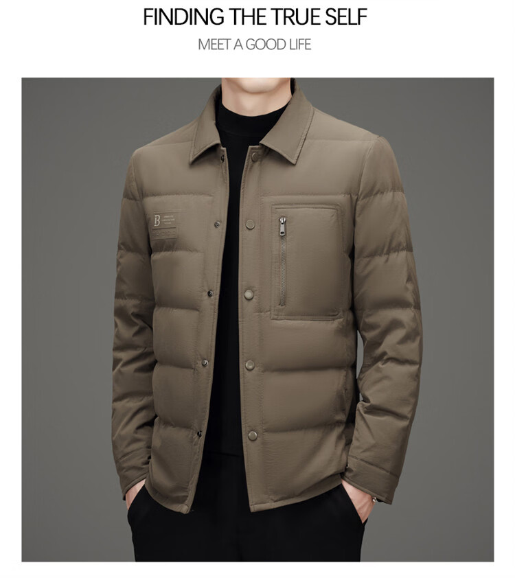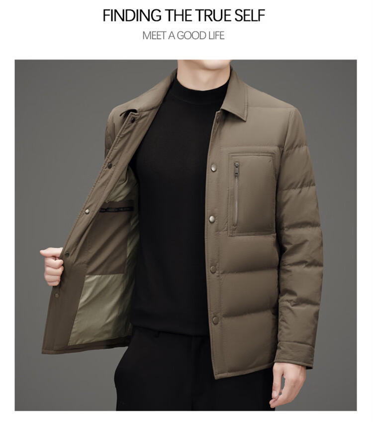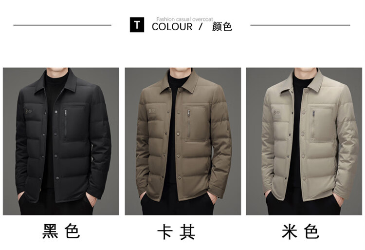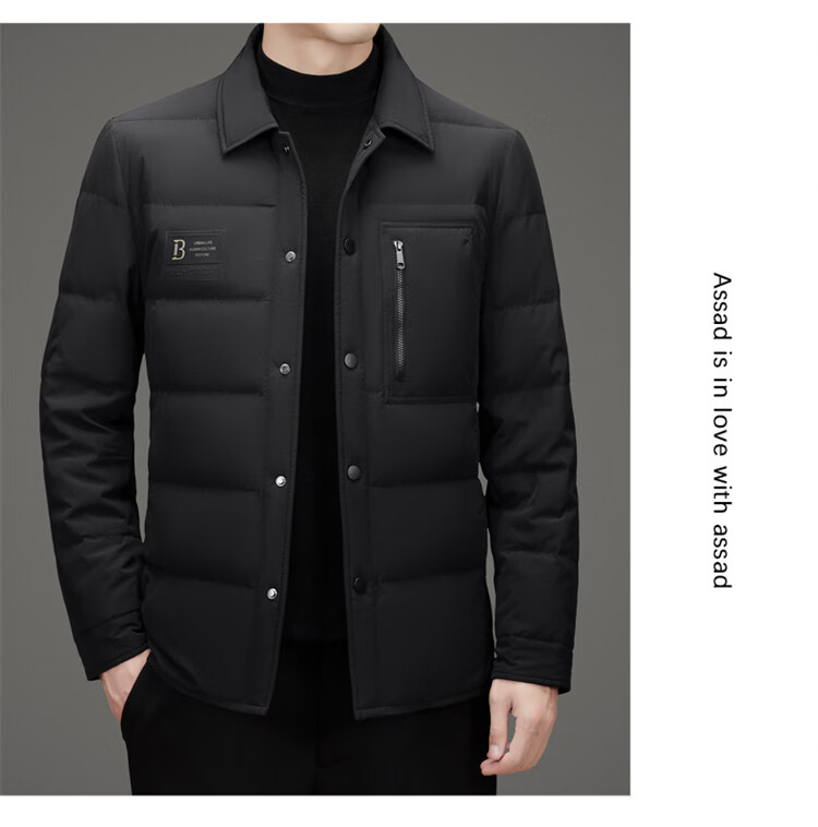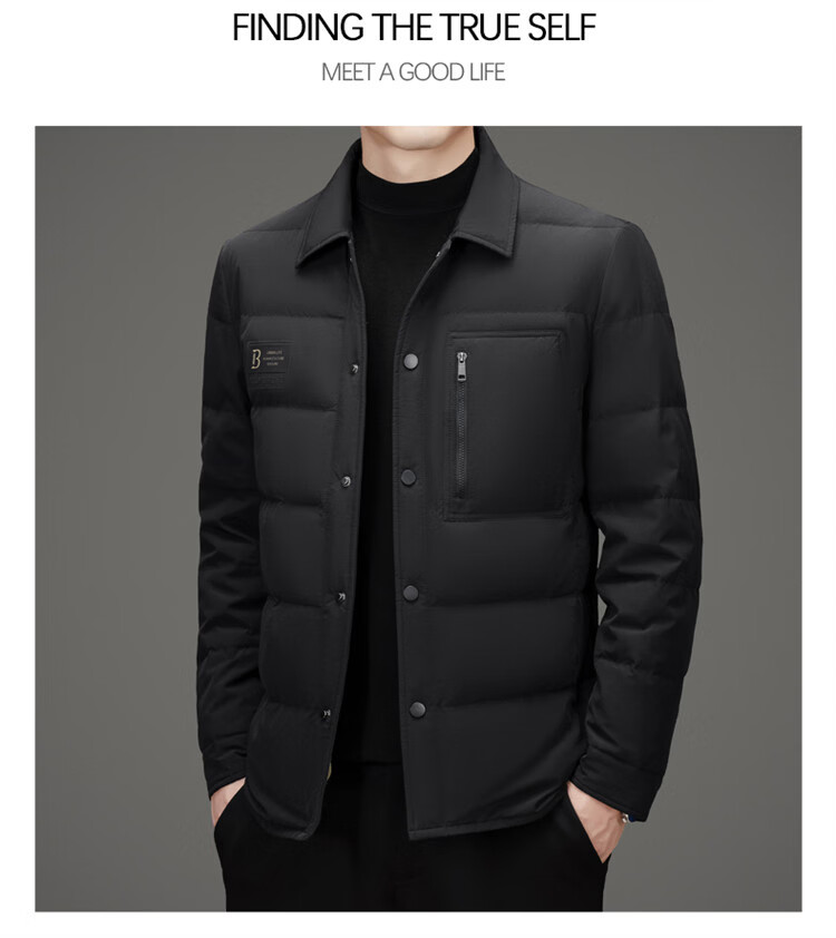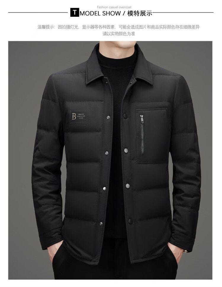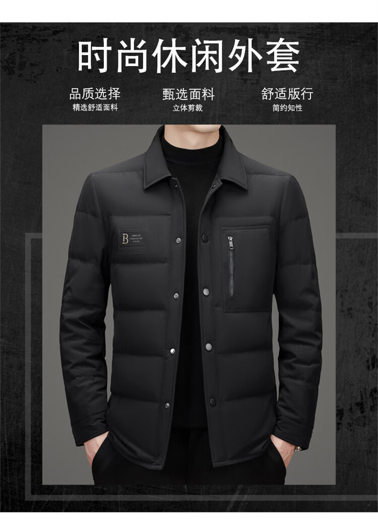 JEEP SPIRIT吉普羽绒服男士冬季休闲商务保暖防寒加厚夹克高端翻领鸭绒外套 黑色 M 170