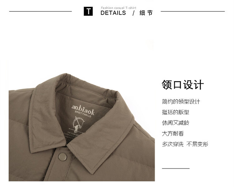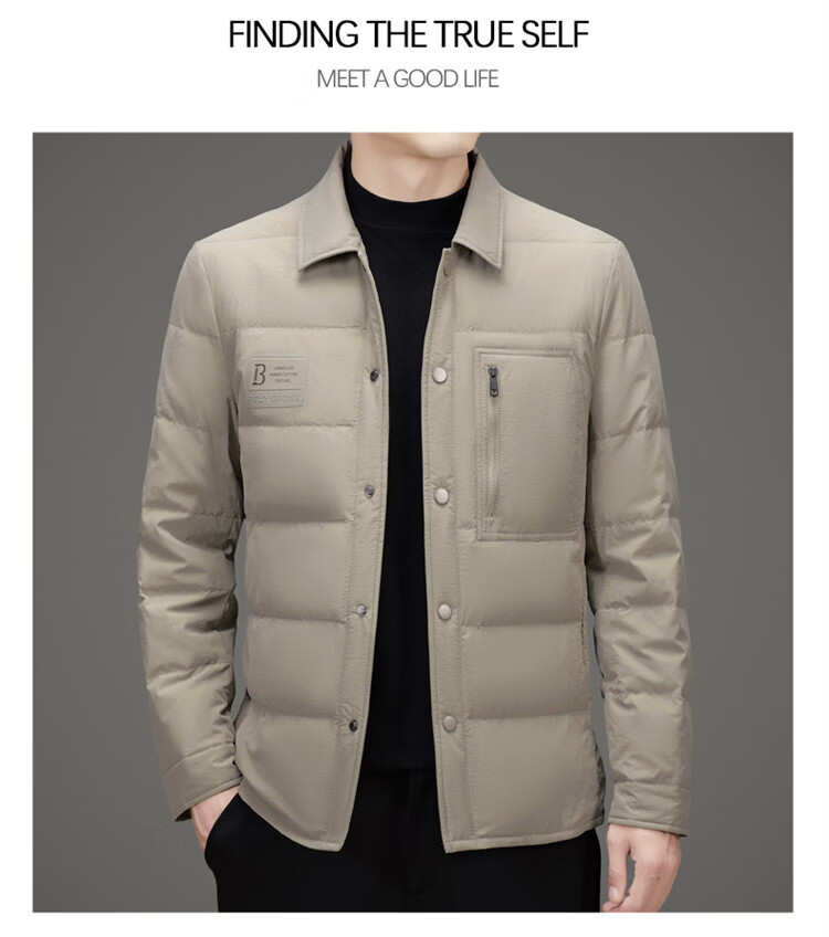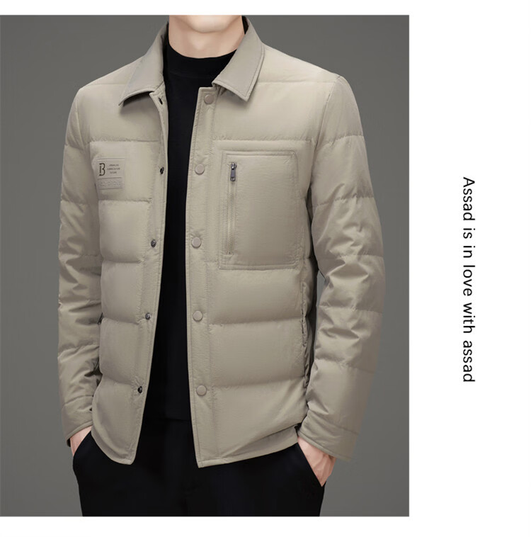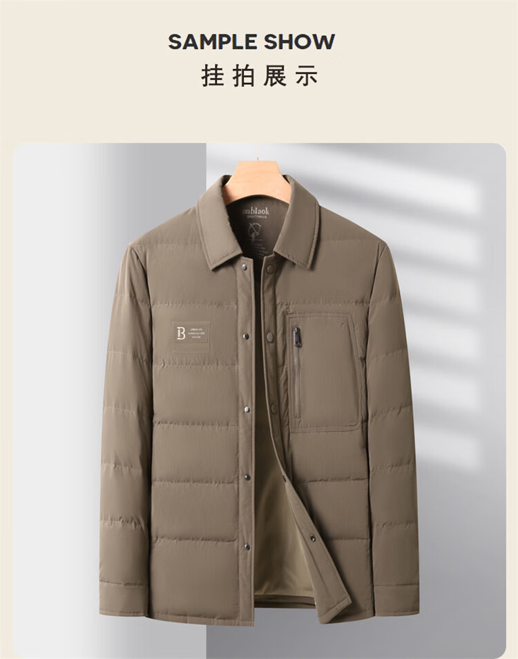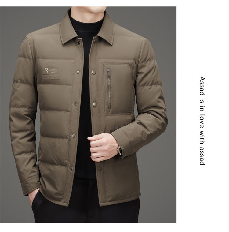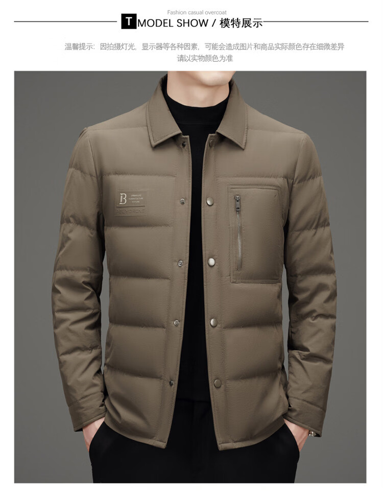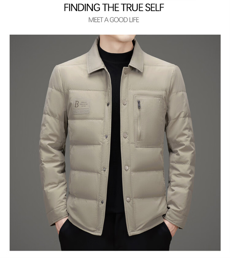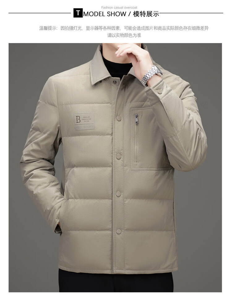JEEP SPIRIT吉普羽绒服男士冬季休闲商务保暖防寒加厚夹克高端翻领鸭绒外套 黑色 M 170