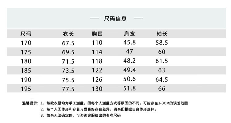 China (cm) 165 / 88-90 170 / 96-98 175 / 108-110 180 / 118-122 185 / 126-130