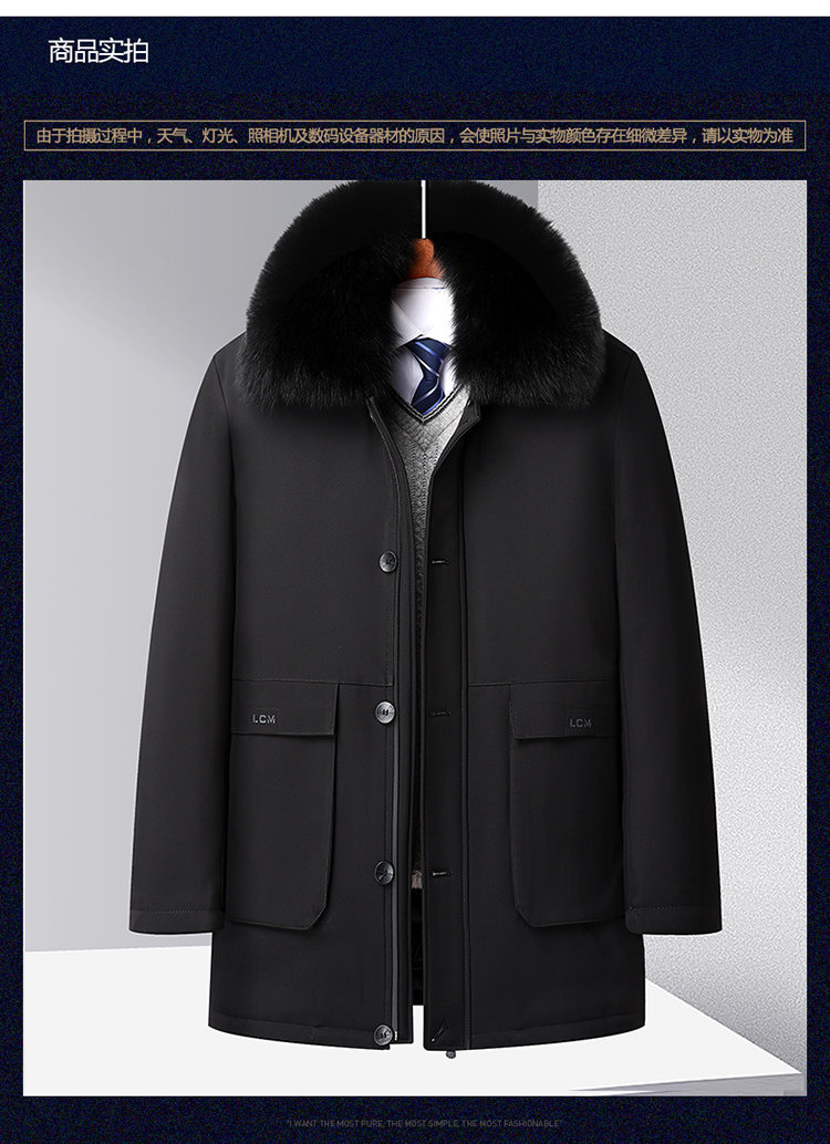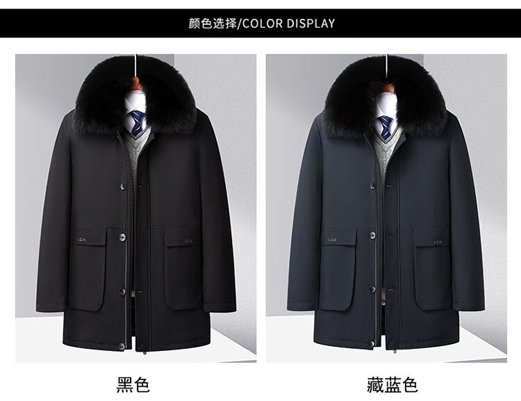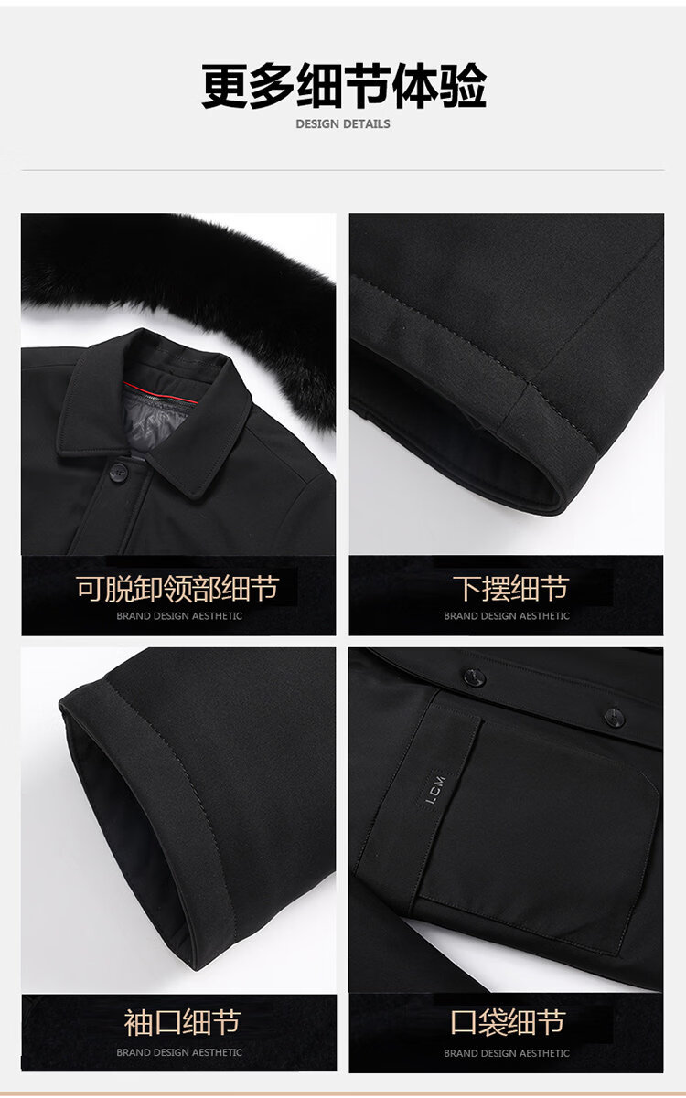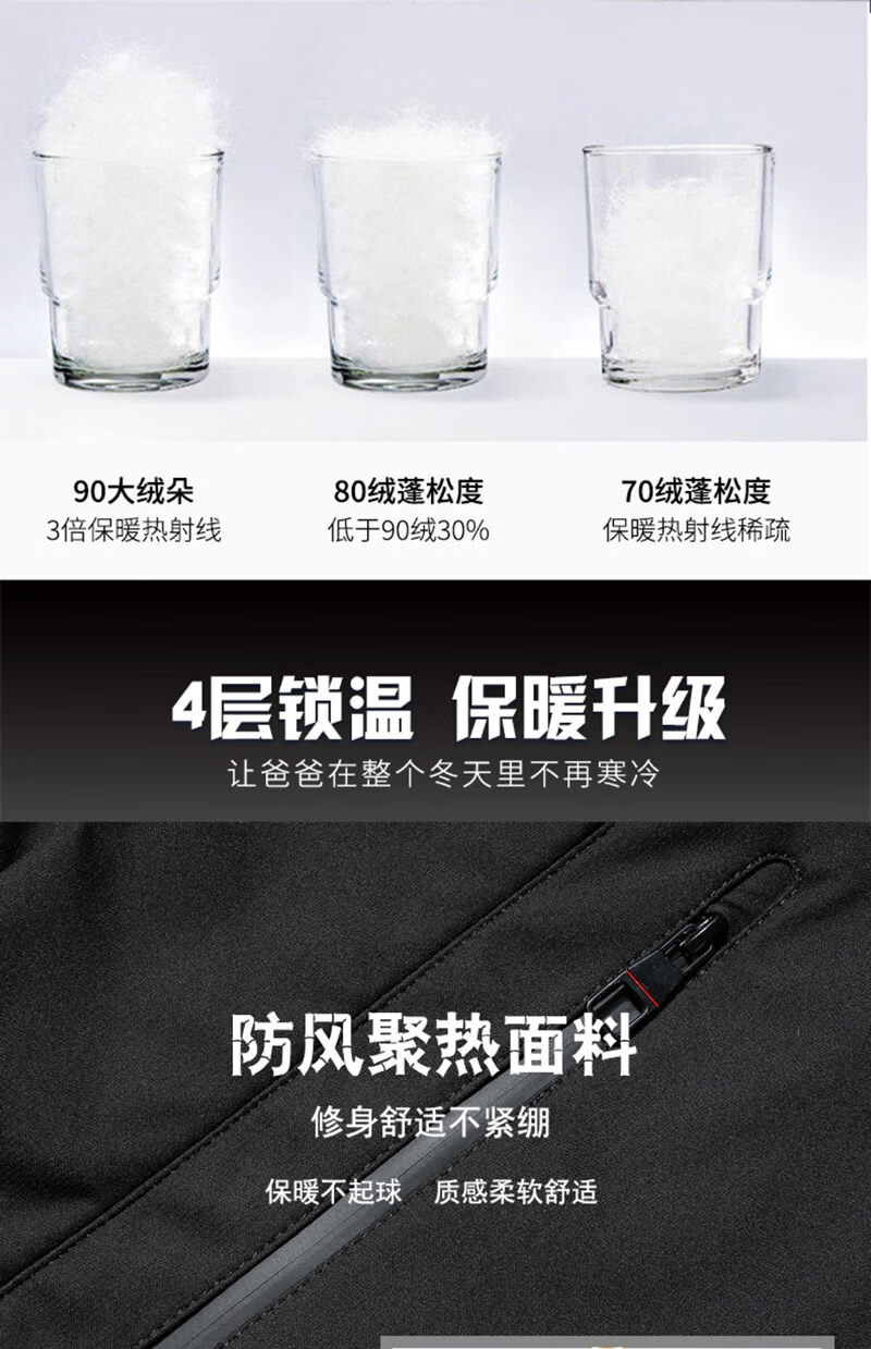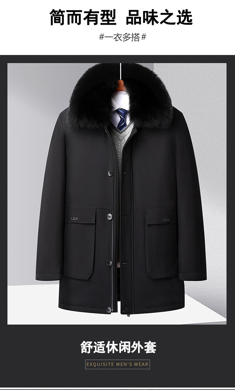 恒源祥2025冬季派克服羽绒服男中长款中老年爸爸装活里活面父亲保暖外套 黑色 XL 180(115-135斤穿)