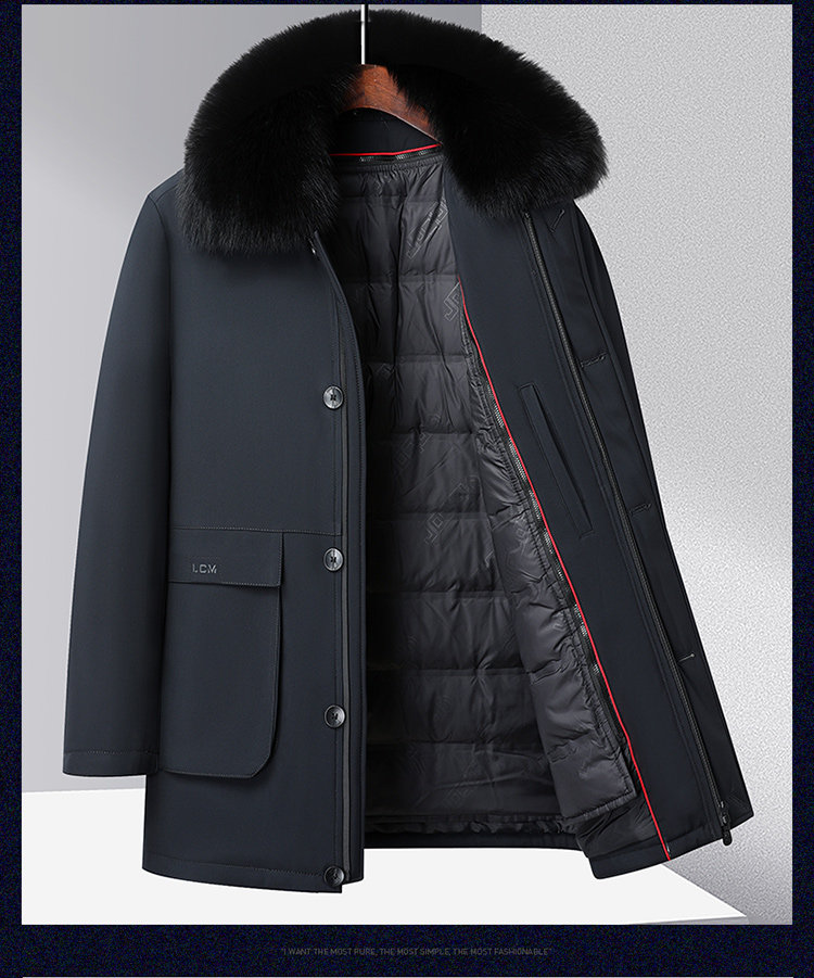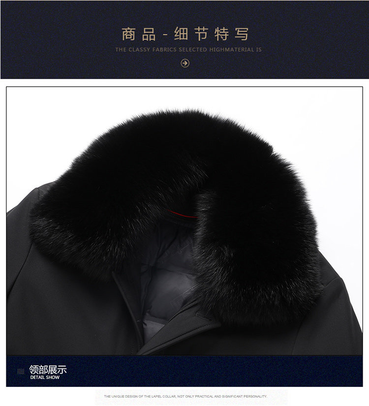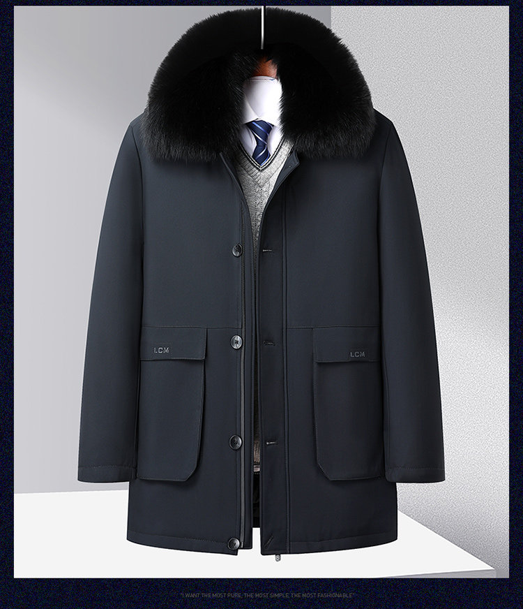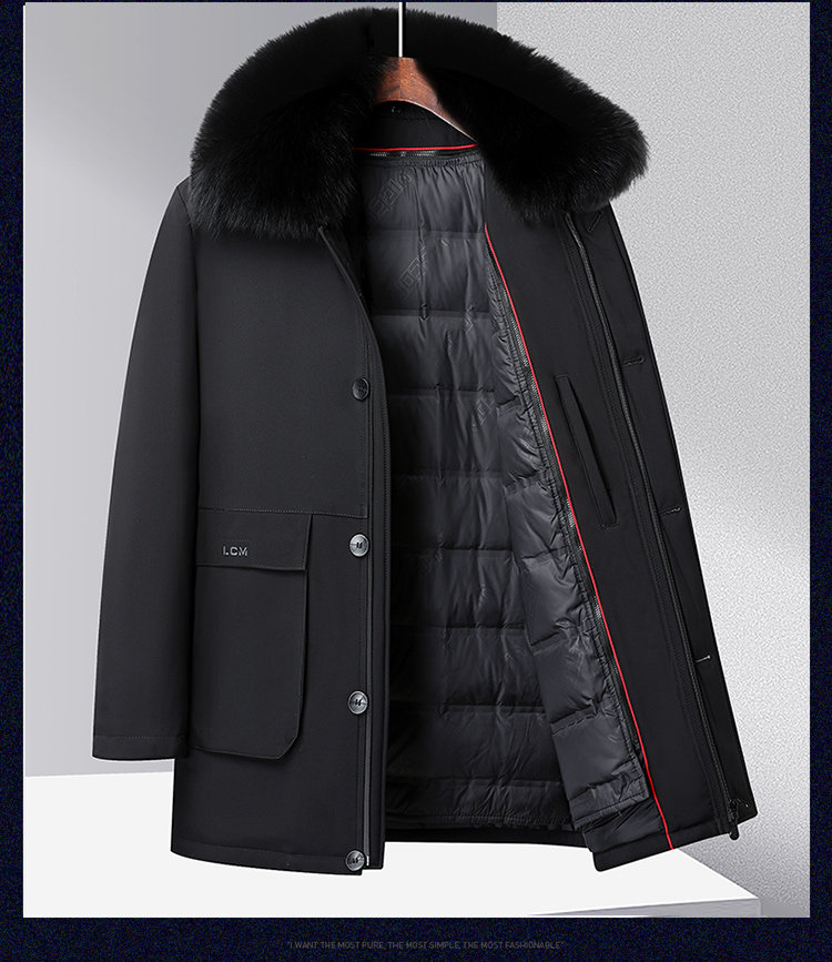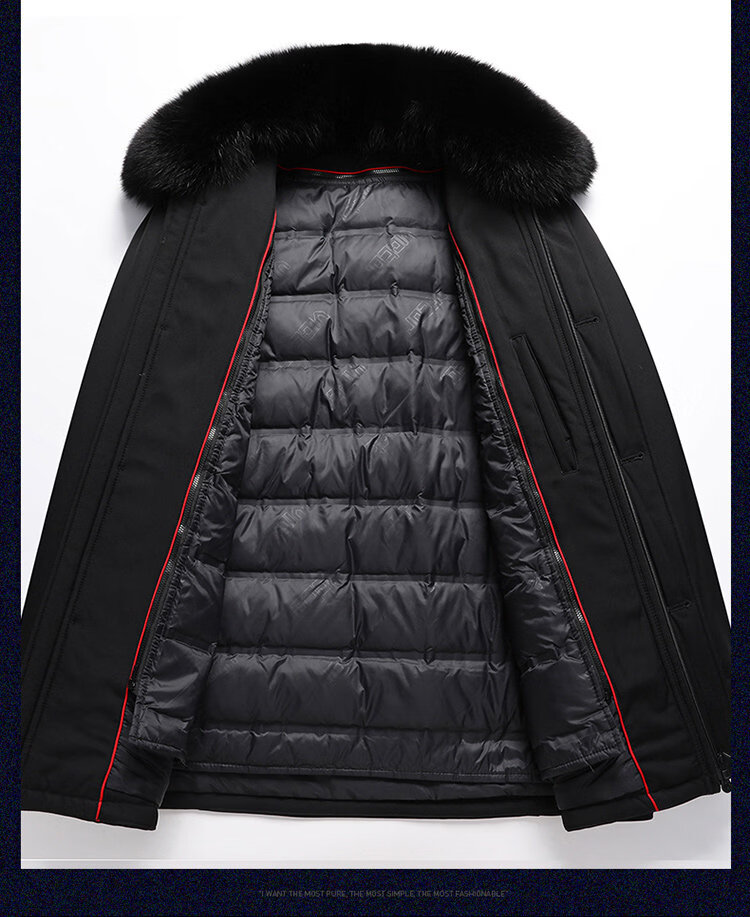 恒源祥2025冬季派克服羽绒服男中长款中老年爸爸装活里活面父亲保暖外套 黑色 XL 180(115-135斤穿)