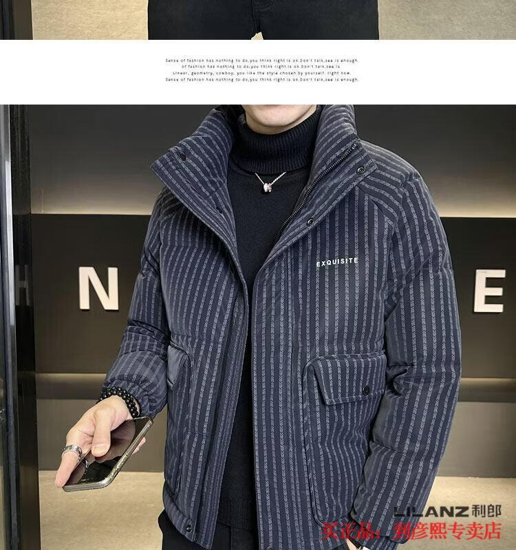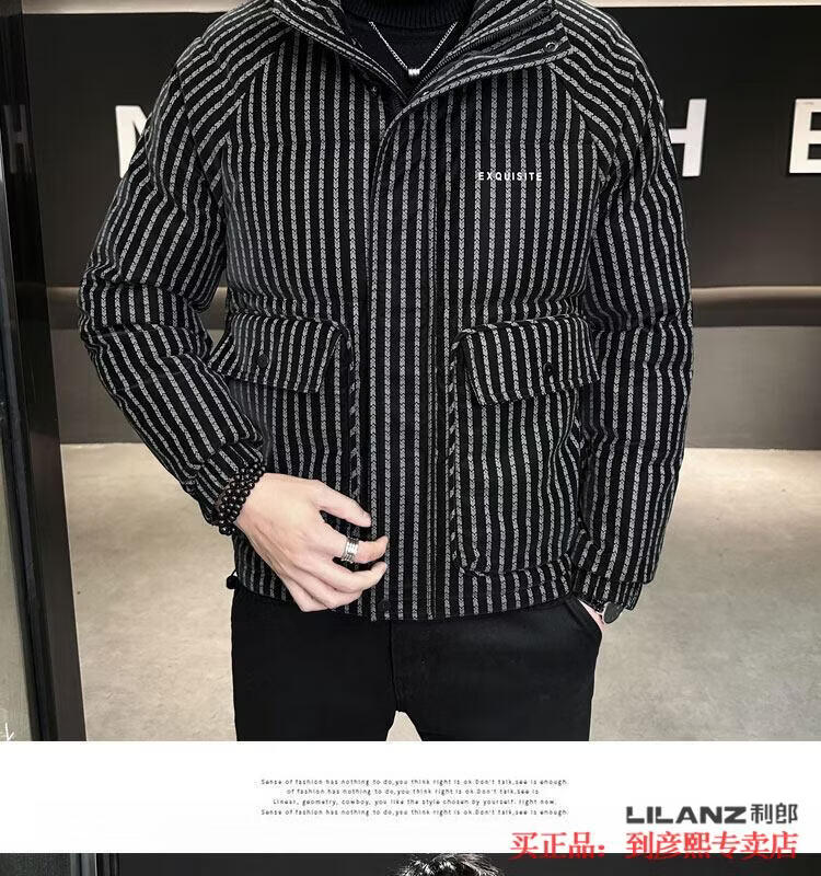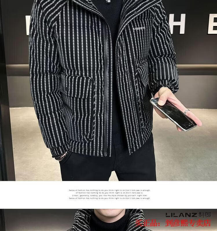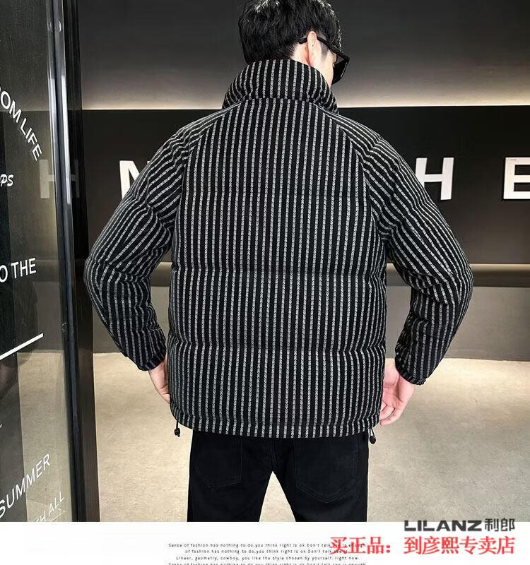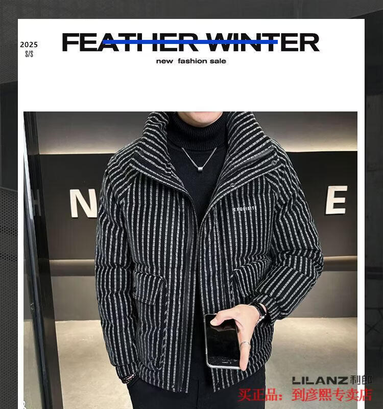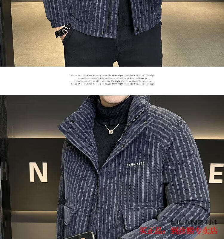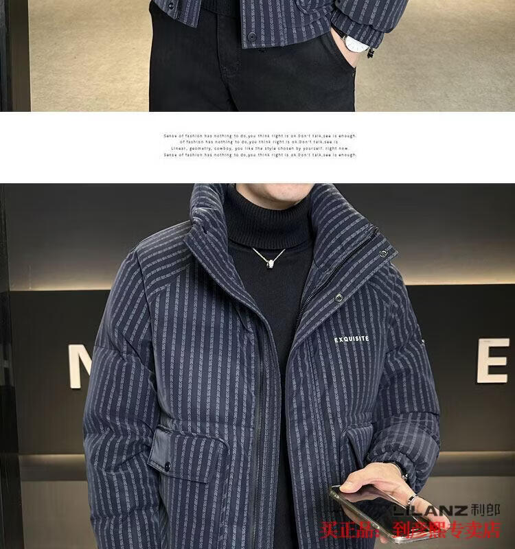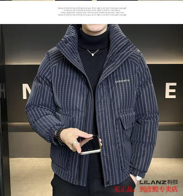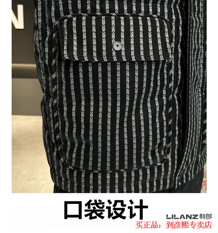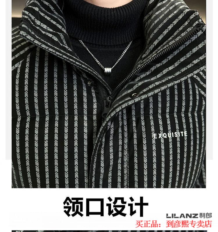 利郎(LILANZ)官方羽绒服男款竖条纹高端免洗2025新款痞帅保暖防寒服休闲外套冬 藏青色-旗舰款 3XL (175-190)斤