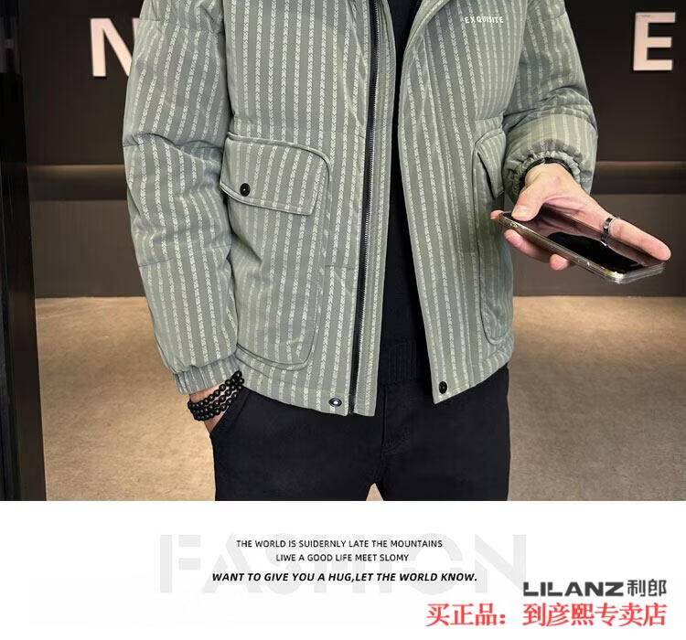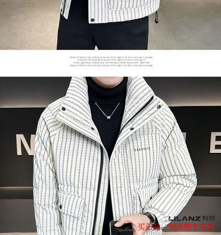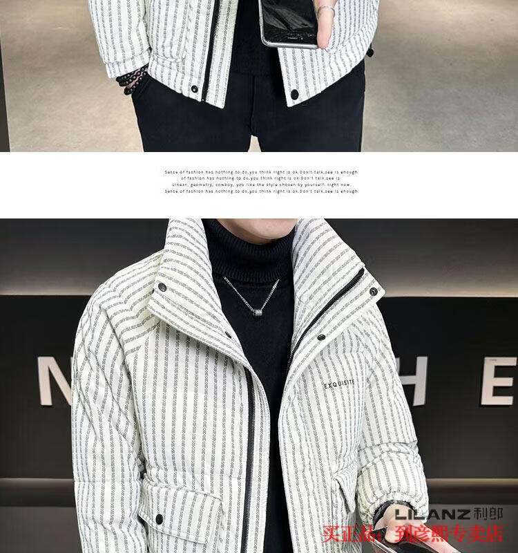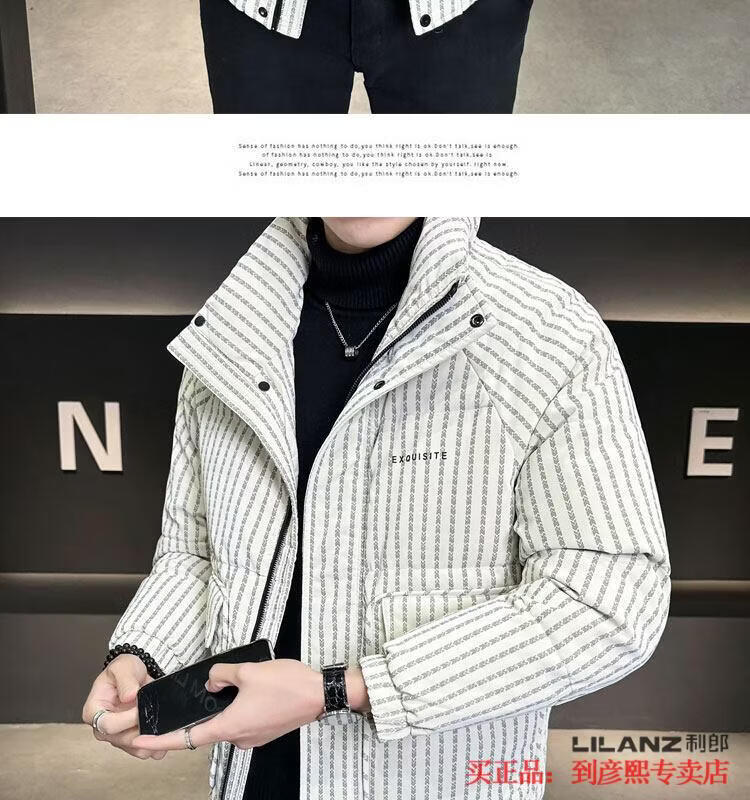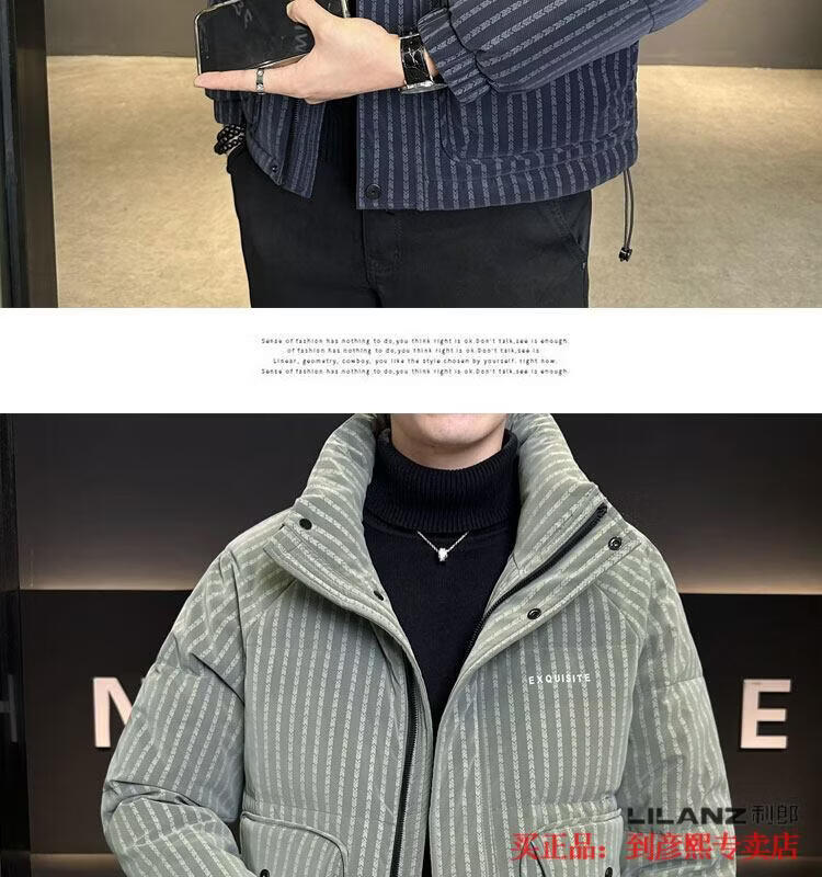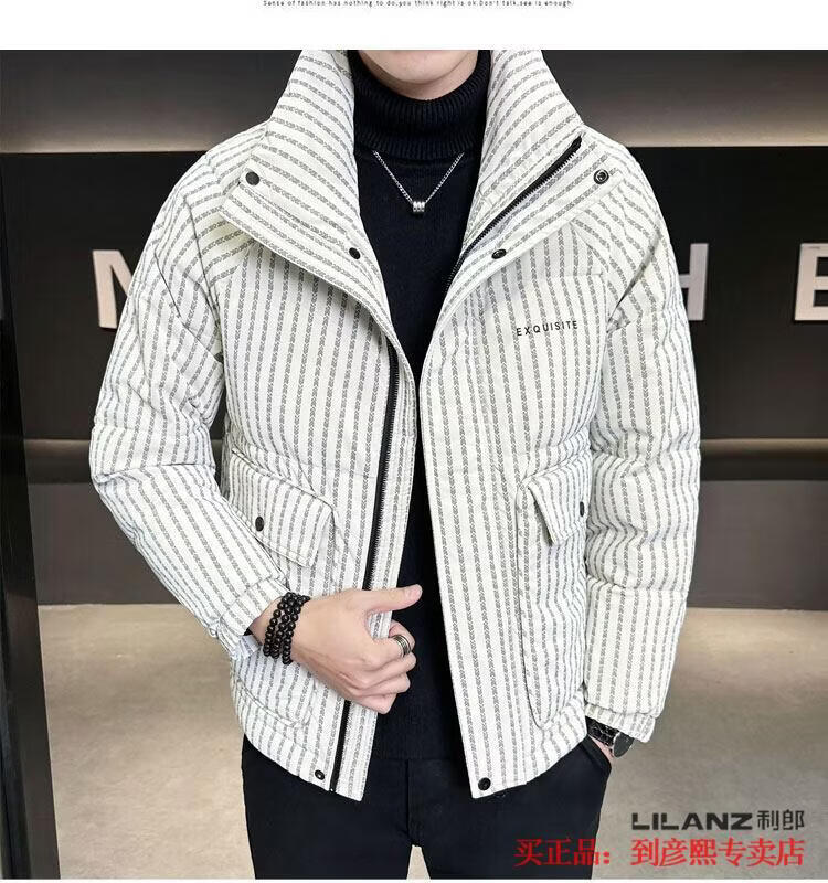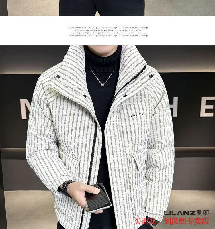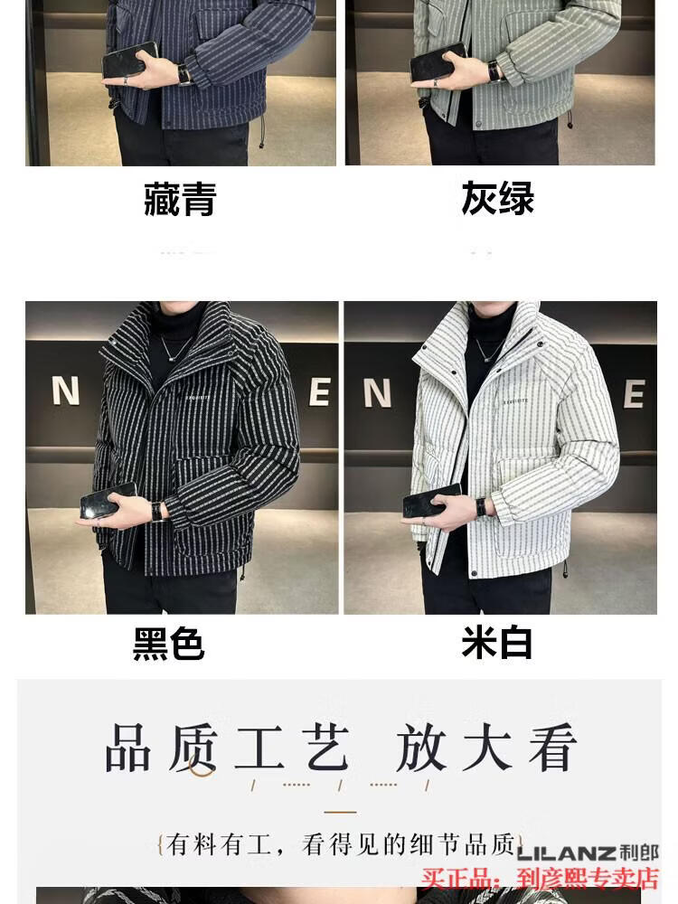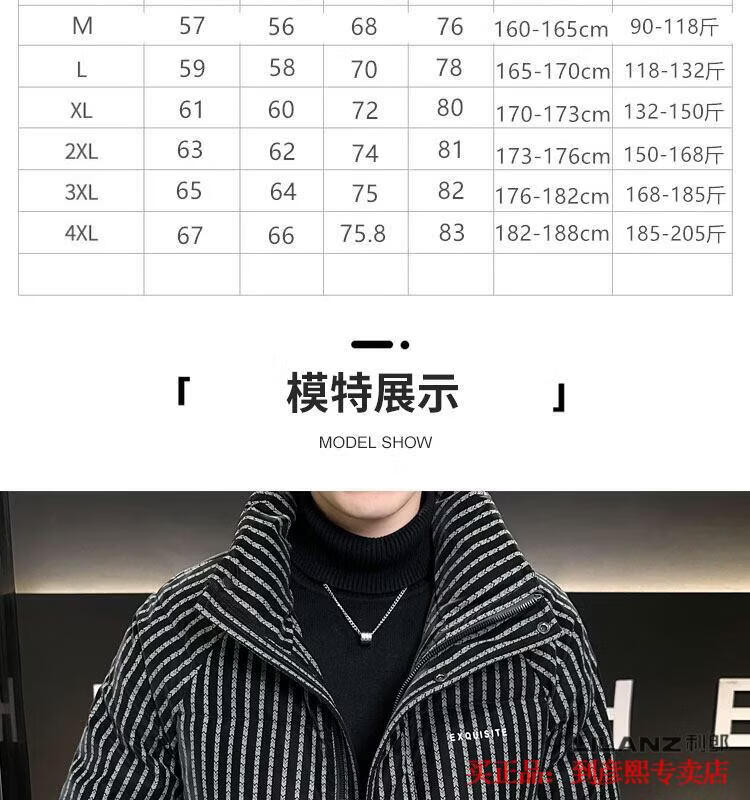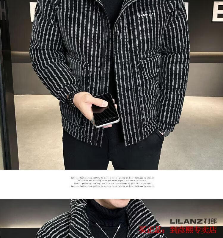 利郎(LILANZ)官方羽绒服男款竖条纹高端免洗2025新款痞帅保暖防寒服休闲外套冬 藏青色-旗舰款 3XL (175-190)斤