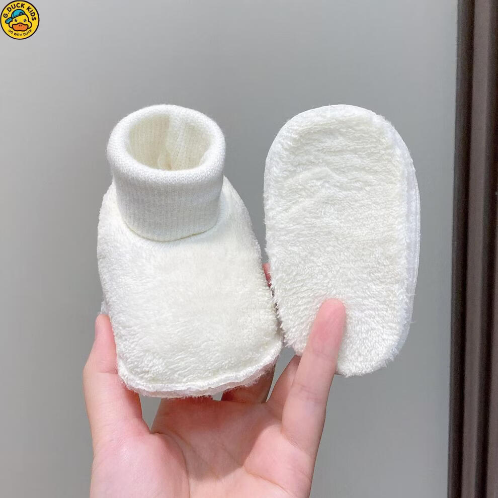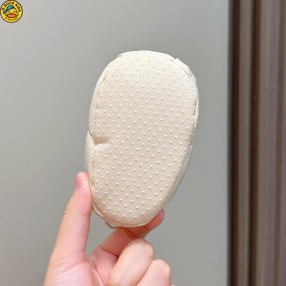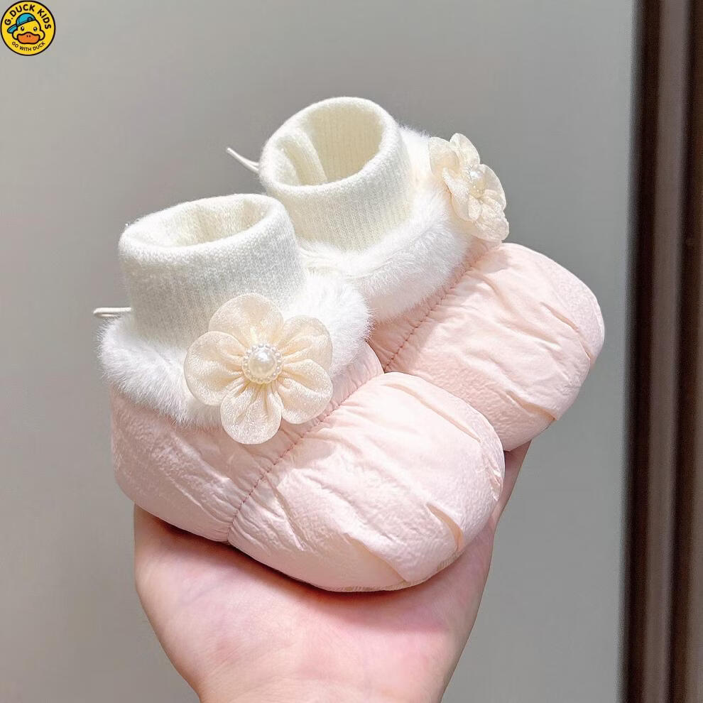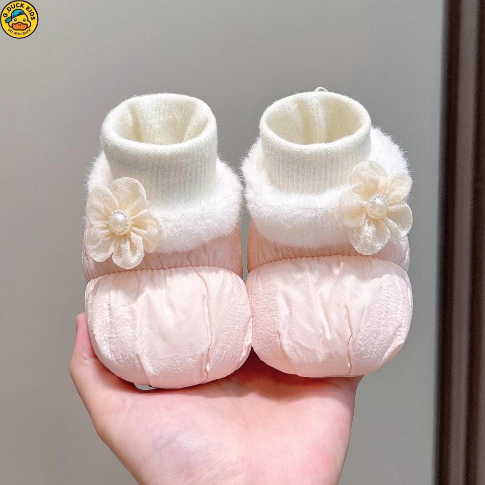 G.duck小黄鸭冬季婴儿加绒软底鞋女宝宝棉鞋袜保暖新生儿鞋子0-1岁花朵 卡其(冬暖棉鞋-侧上琉金花) 11.5 内长cm
