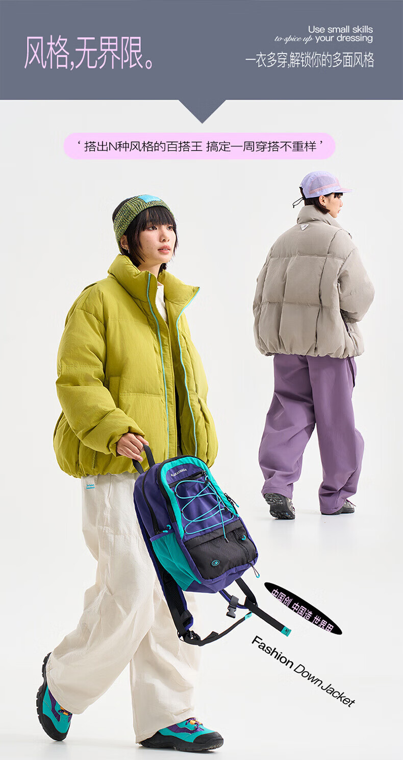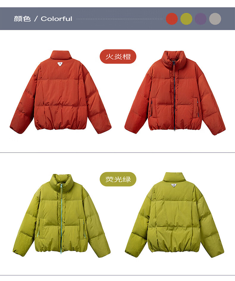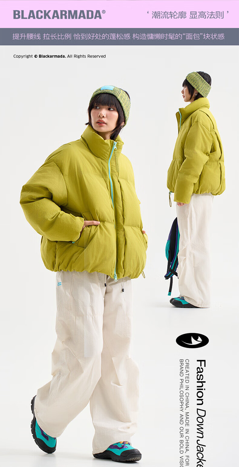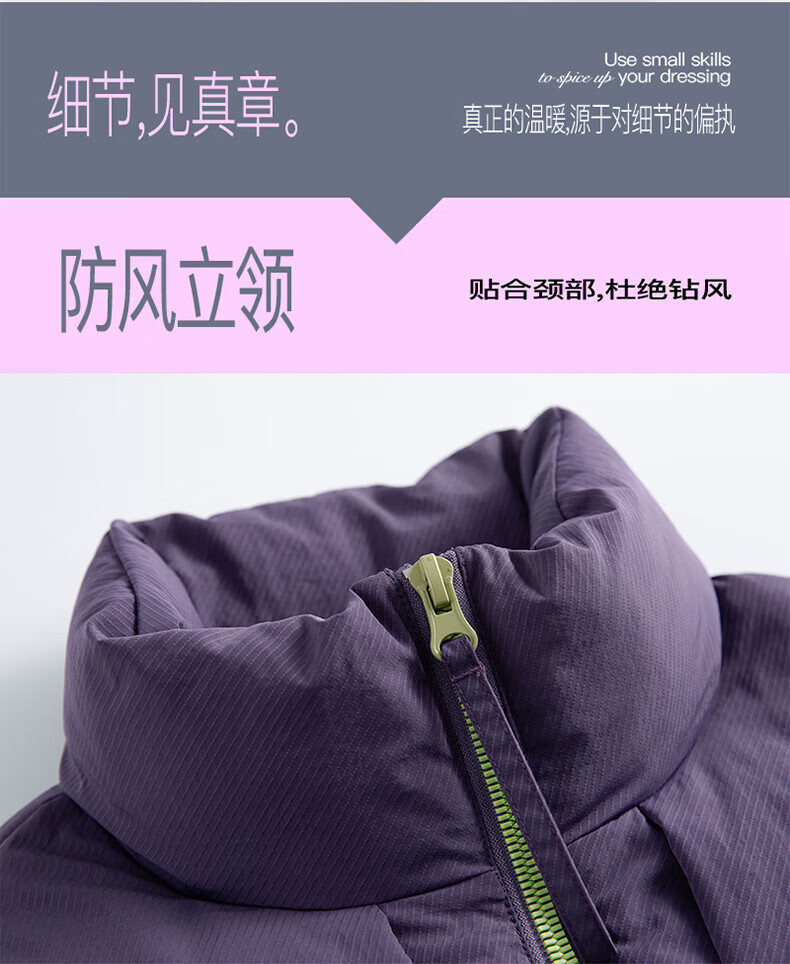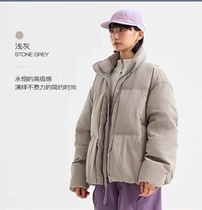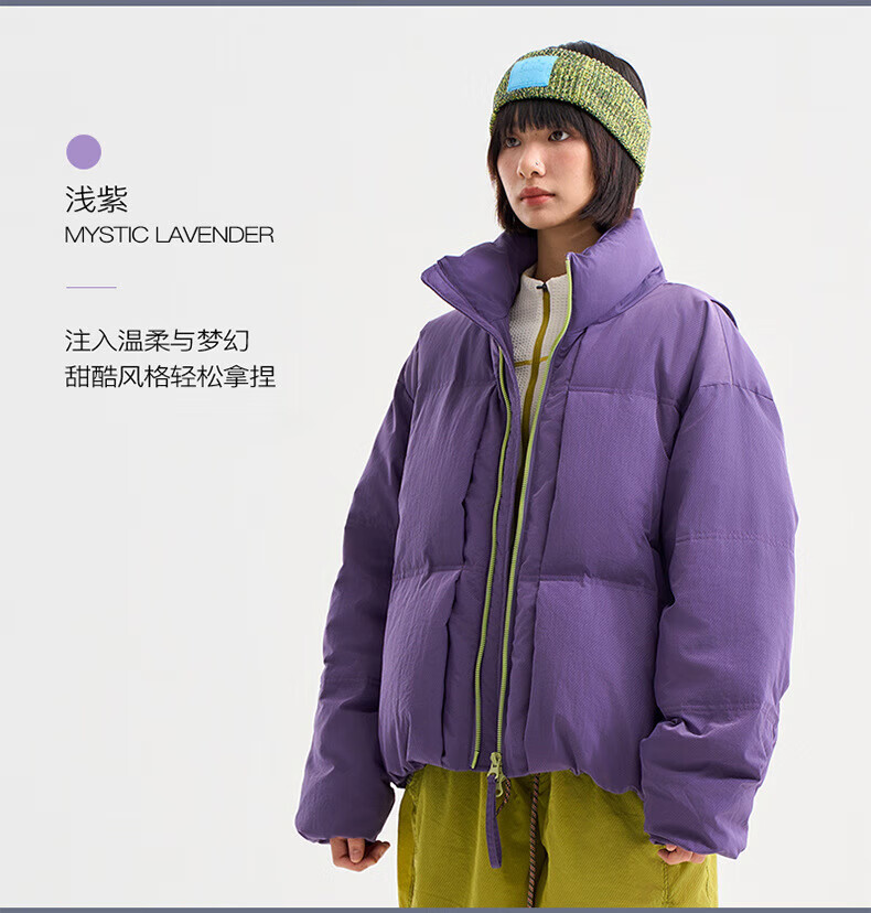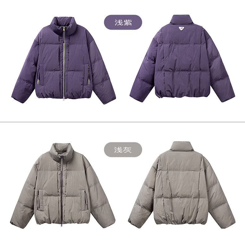 Yalu Simple Stand Collar Women's 2026 Winter Short Style Loose Thickened Warm White Duck Down Bread Jacket Same Style for Men and Women MY6818 Light Purple S