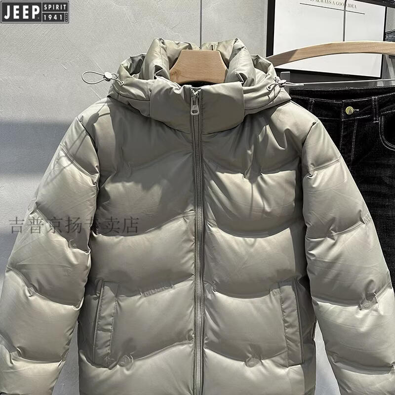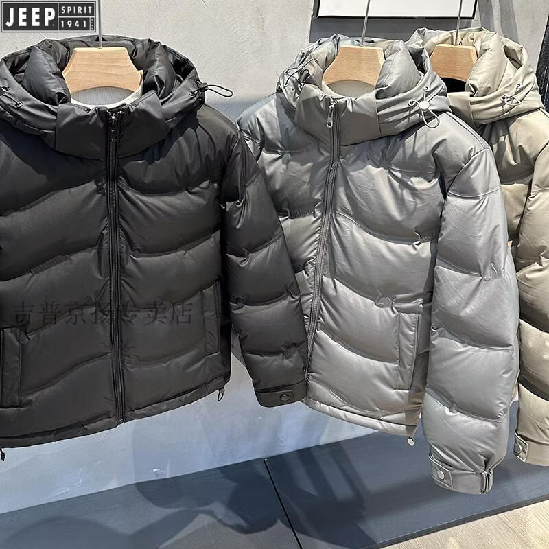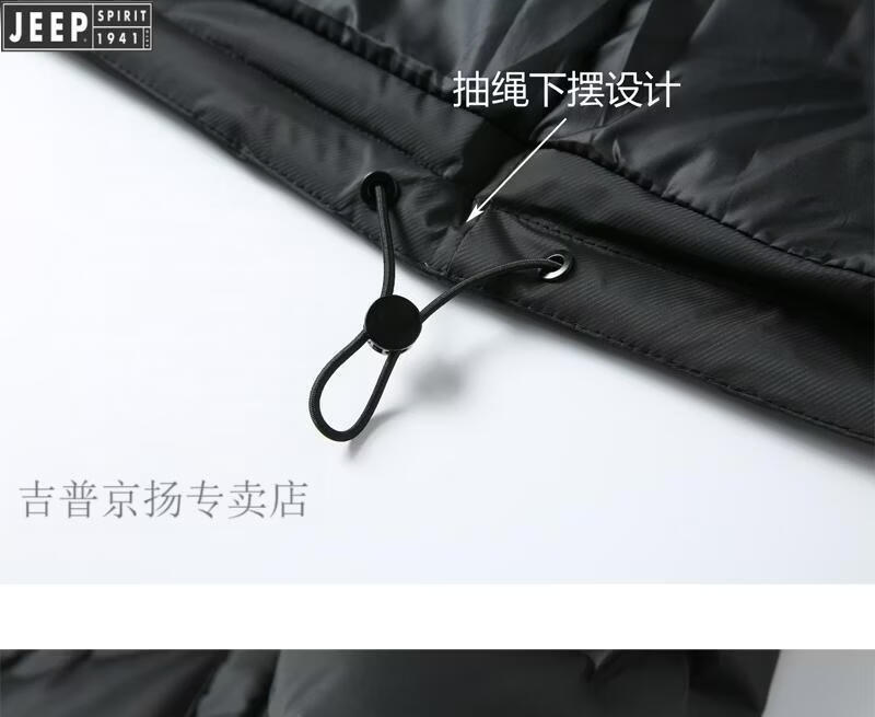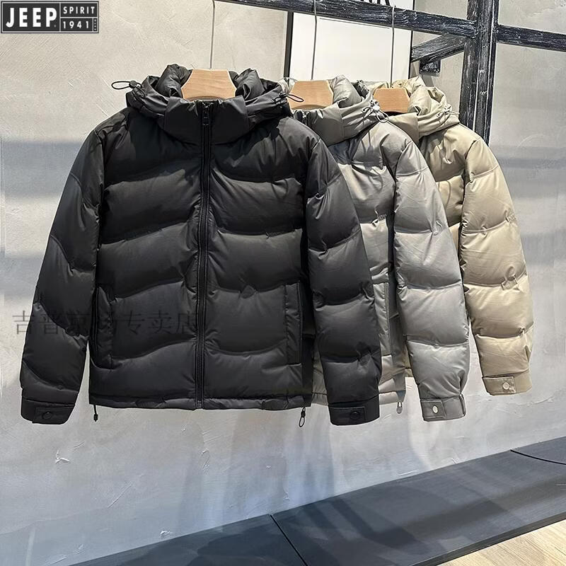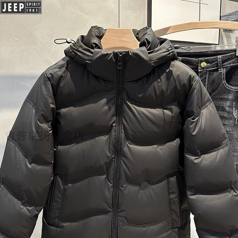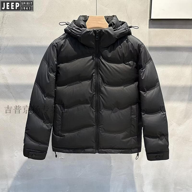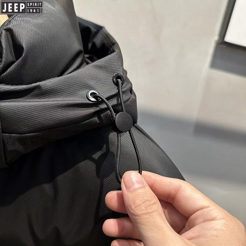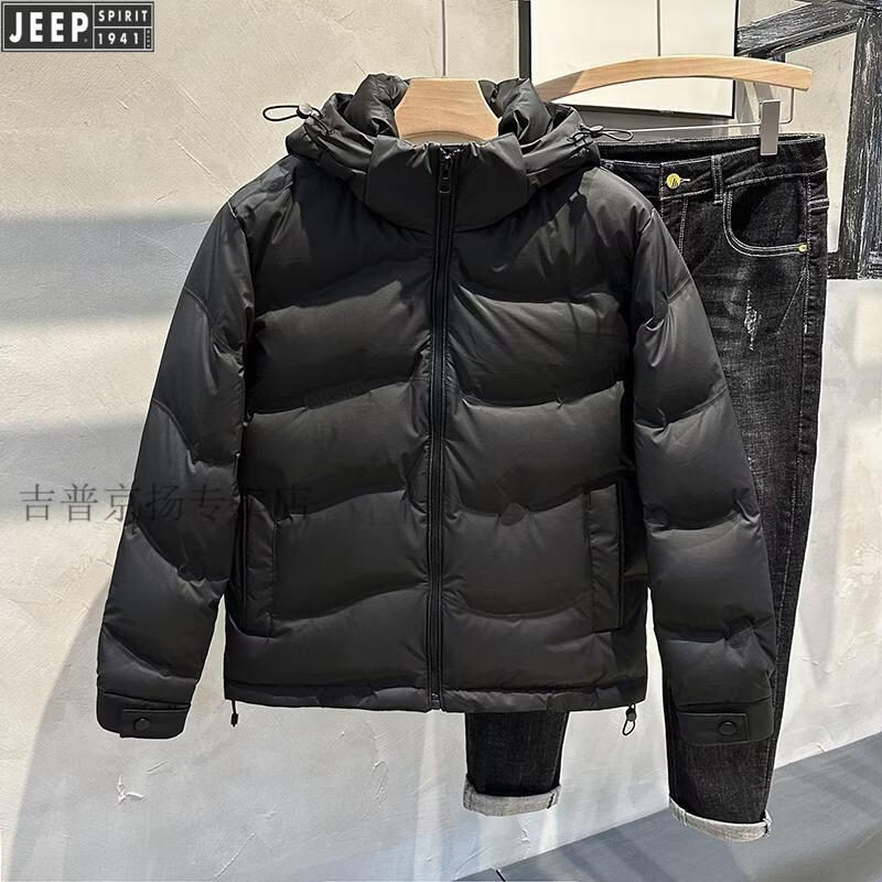 JEEP吉普国际品牌冬季鸭绒羽绒服2025新款保暖加厚连帽可拆卸短款外套 黑色 L 115斤以下