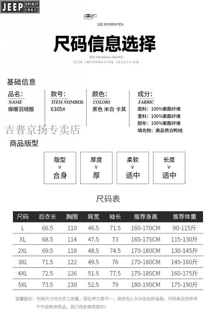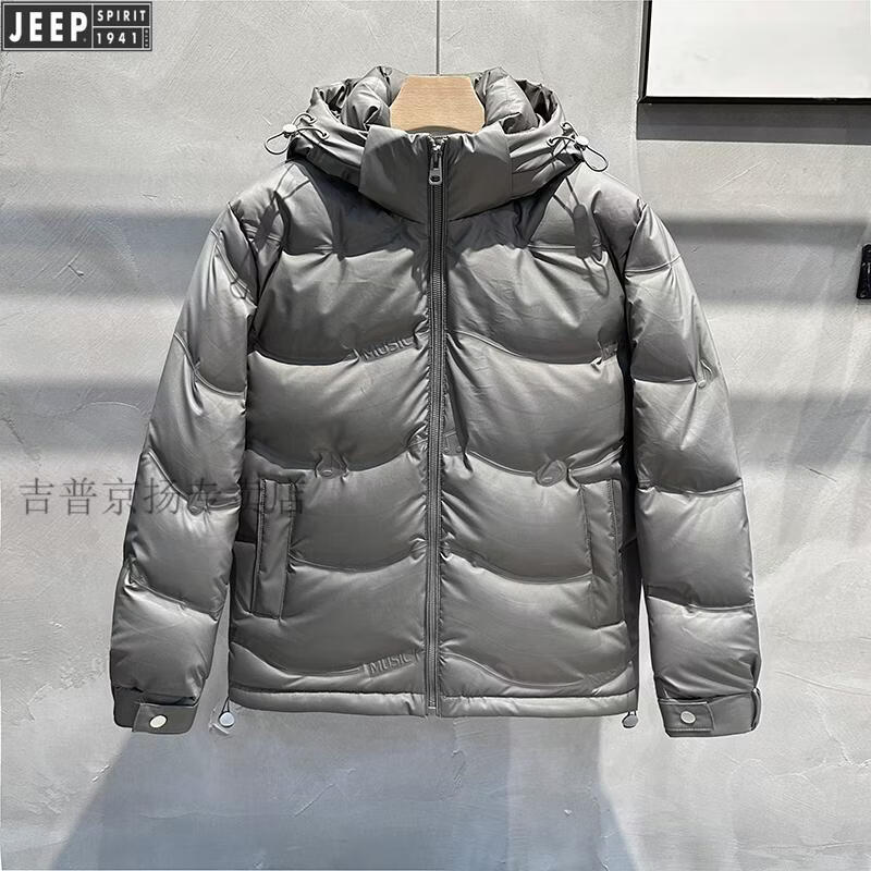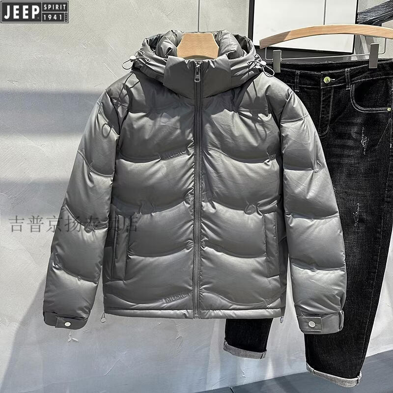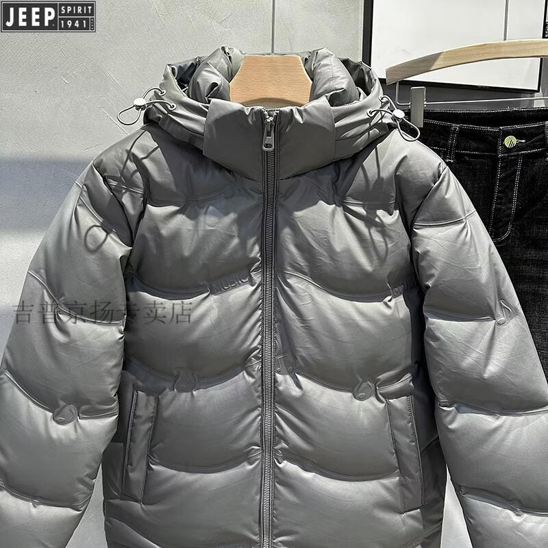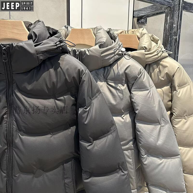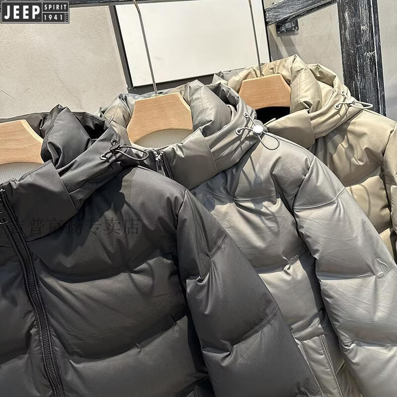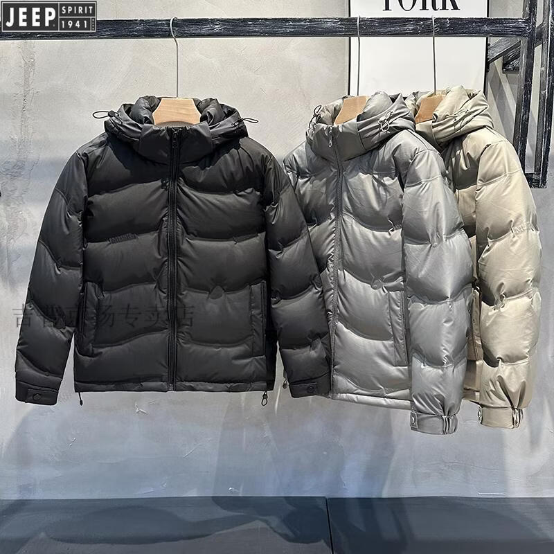 JEEP吉普国际品牌冬季鸭绒羽绒服2025新款保暖加厚连帽可拆卸短款外套 黑色 L 115斤以下